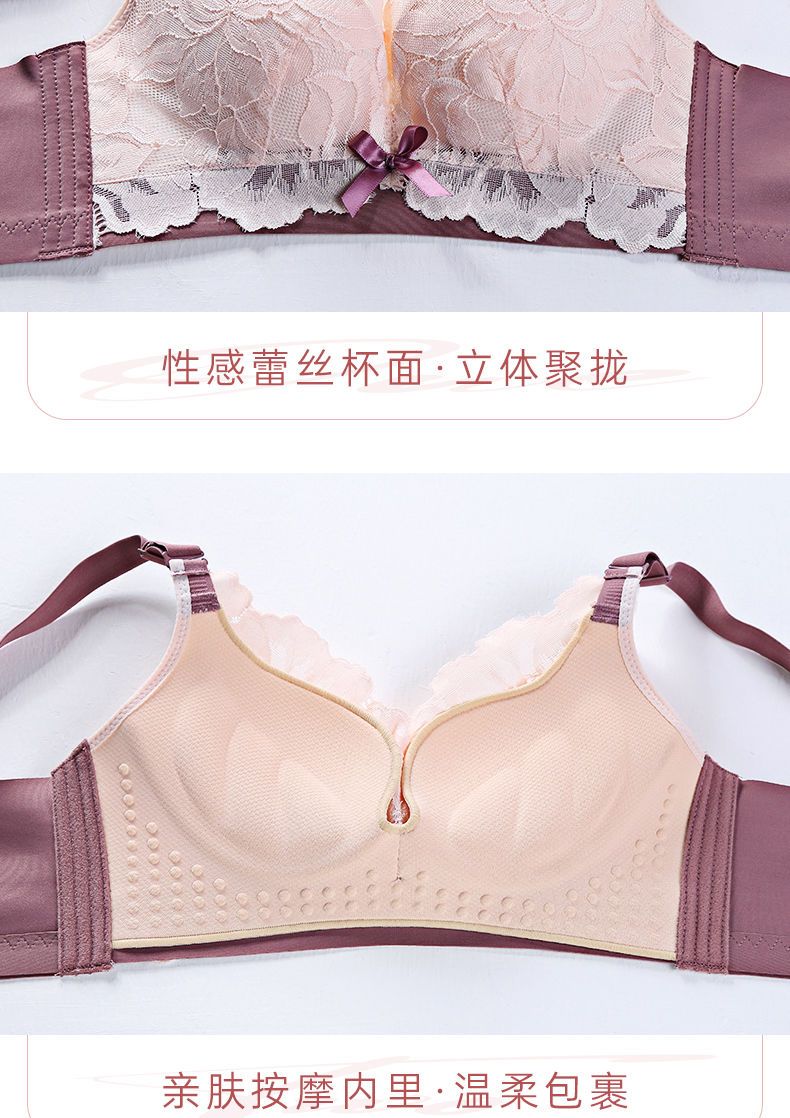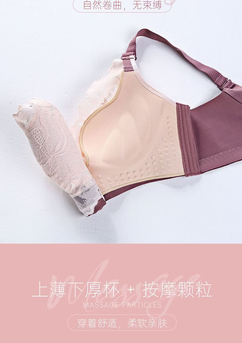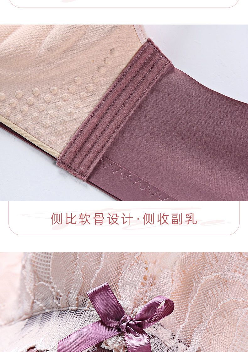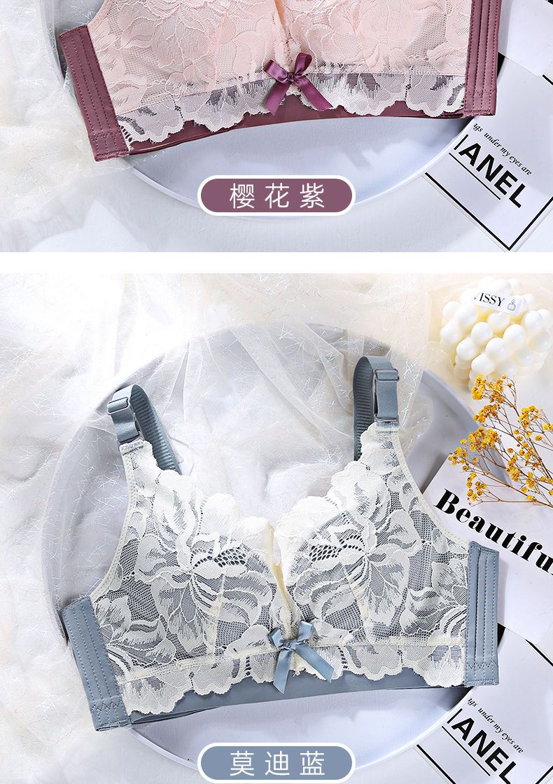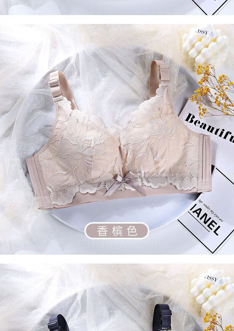LangSha Light luxury high-end wire-free underwear for women with big breasts, push-up adjustment, secondary breast support, anti-sagging latex bra, Modi blue + champagne color 70B 32
