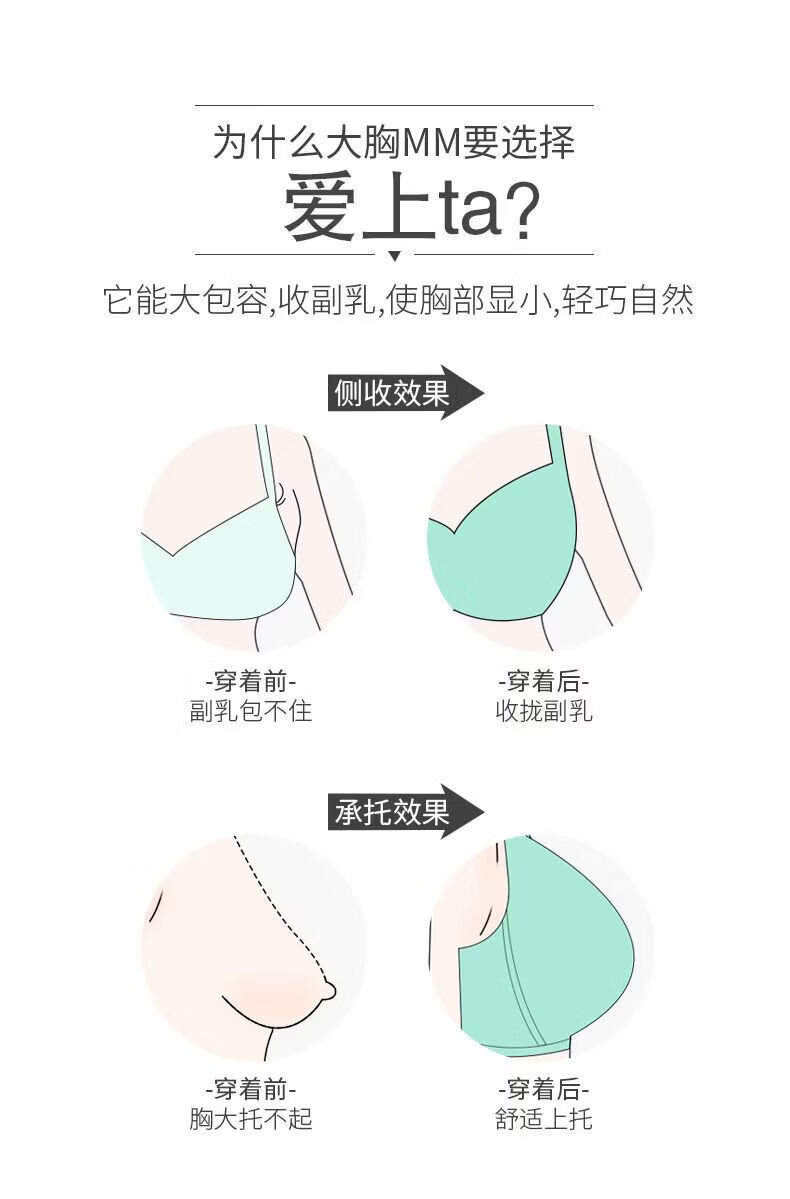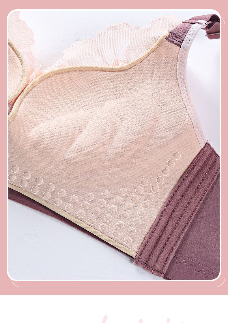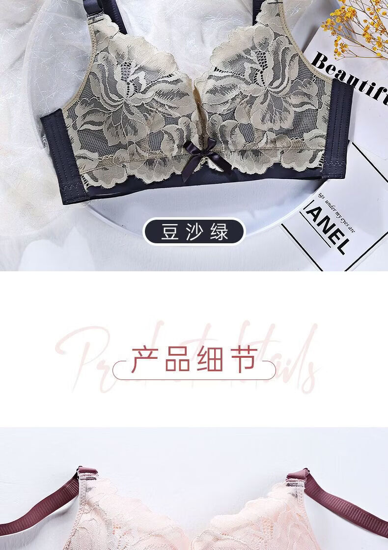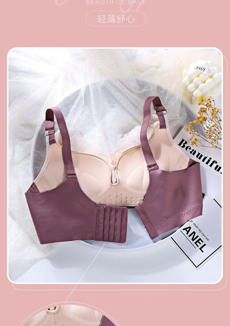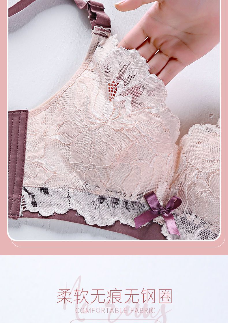 LangSha Light luxury high-end wire-free underwear for women with big breasts, push-up adjustment, secondary breast support, anti-sagging latex bra, Modi blue + champagne color 70B 32