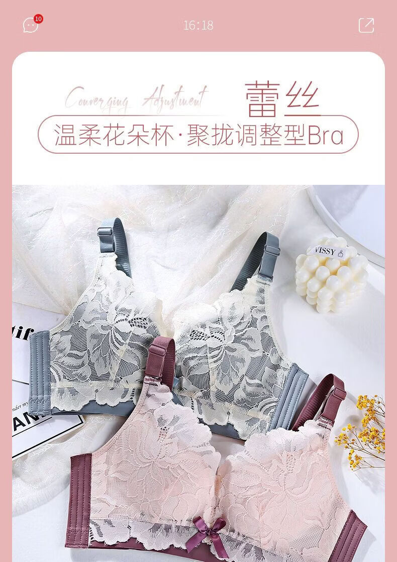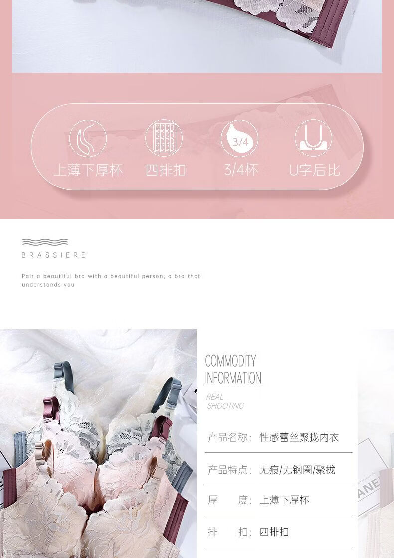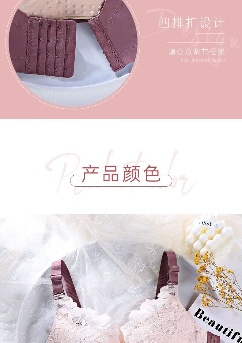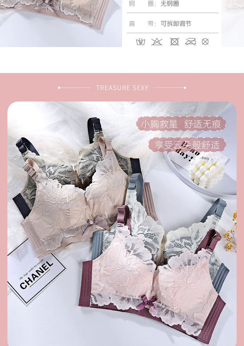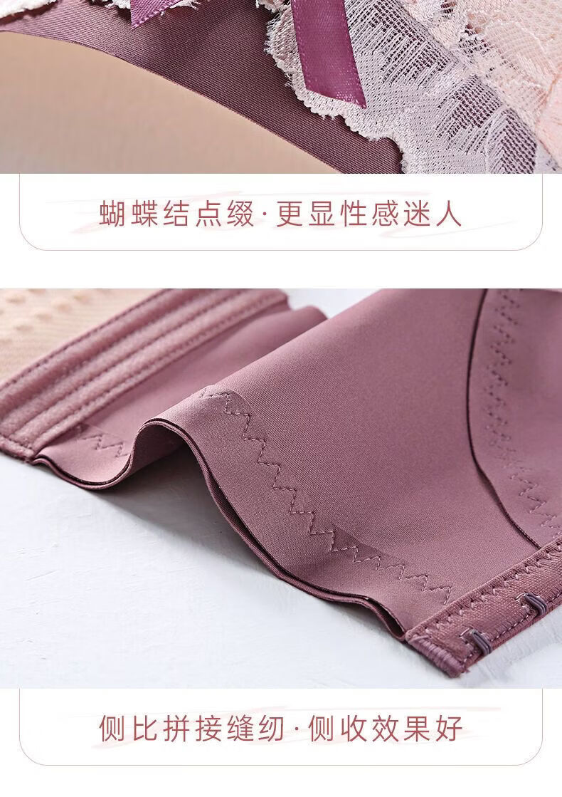 LangSha Light luxury high-end wire-free underwear for women with big breasts, push-up adjustment, secondary breast support, anti-sagging latex bra, Modi blue + champagne color 70B 32
