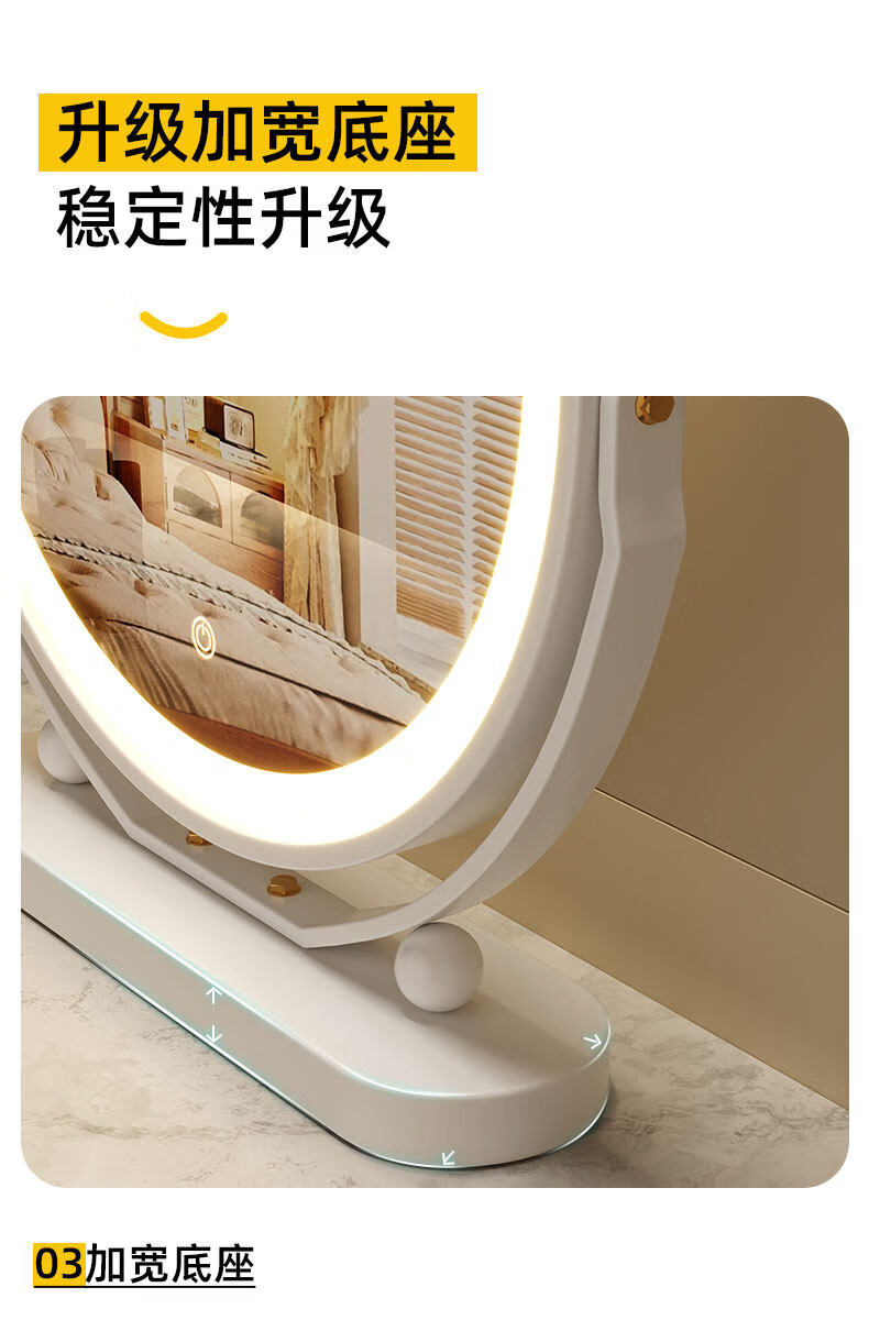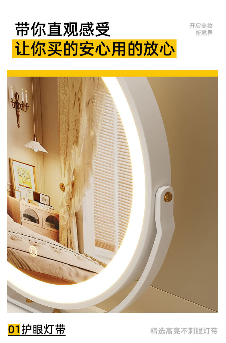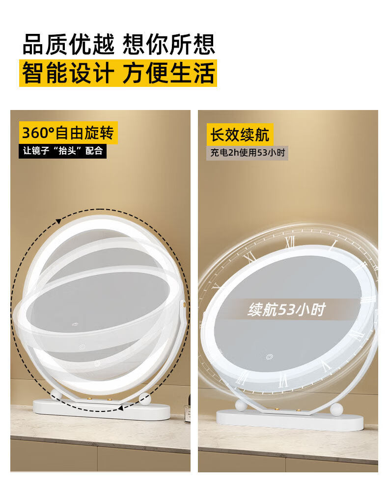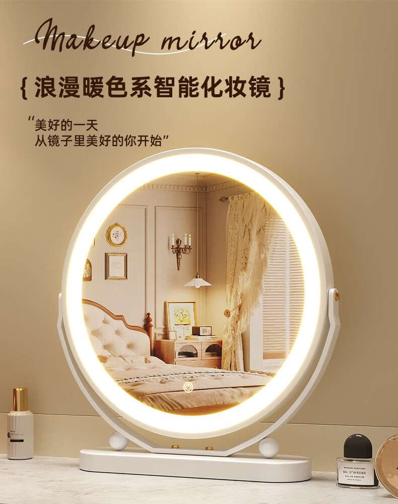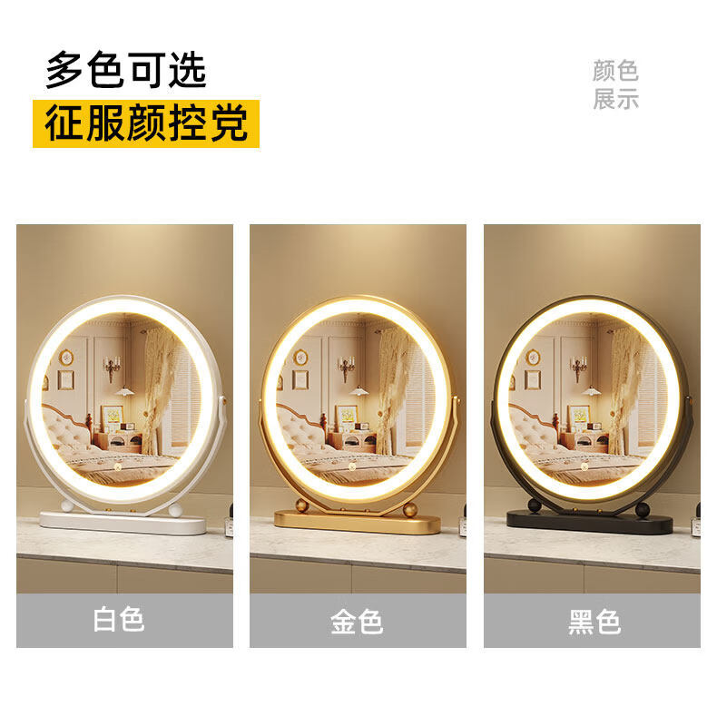 Smart LED light makeup mirror desktop student dormitory light makeup mirror home bedroom rotatable beauty mirror ins rotatable lightless model 30CM (white) environmentally friendly iron