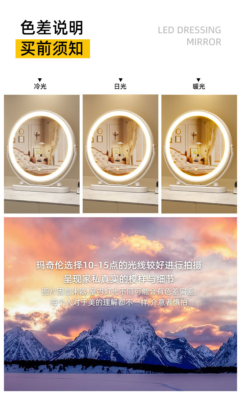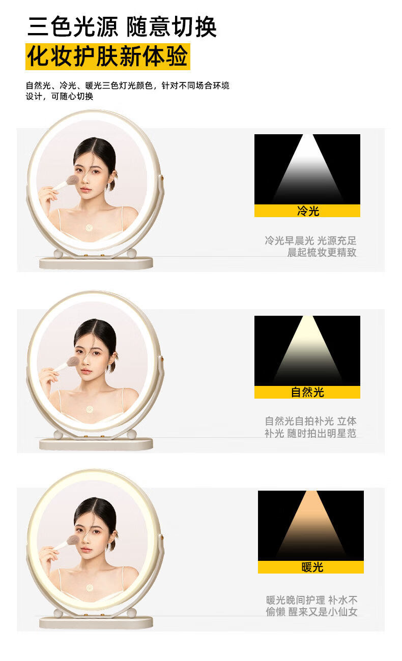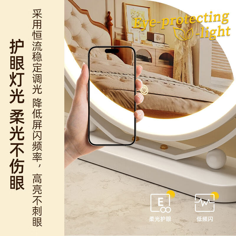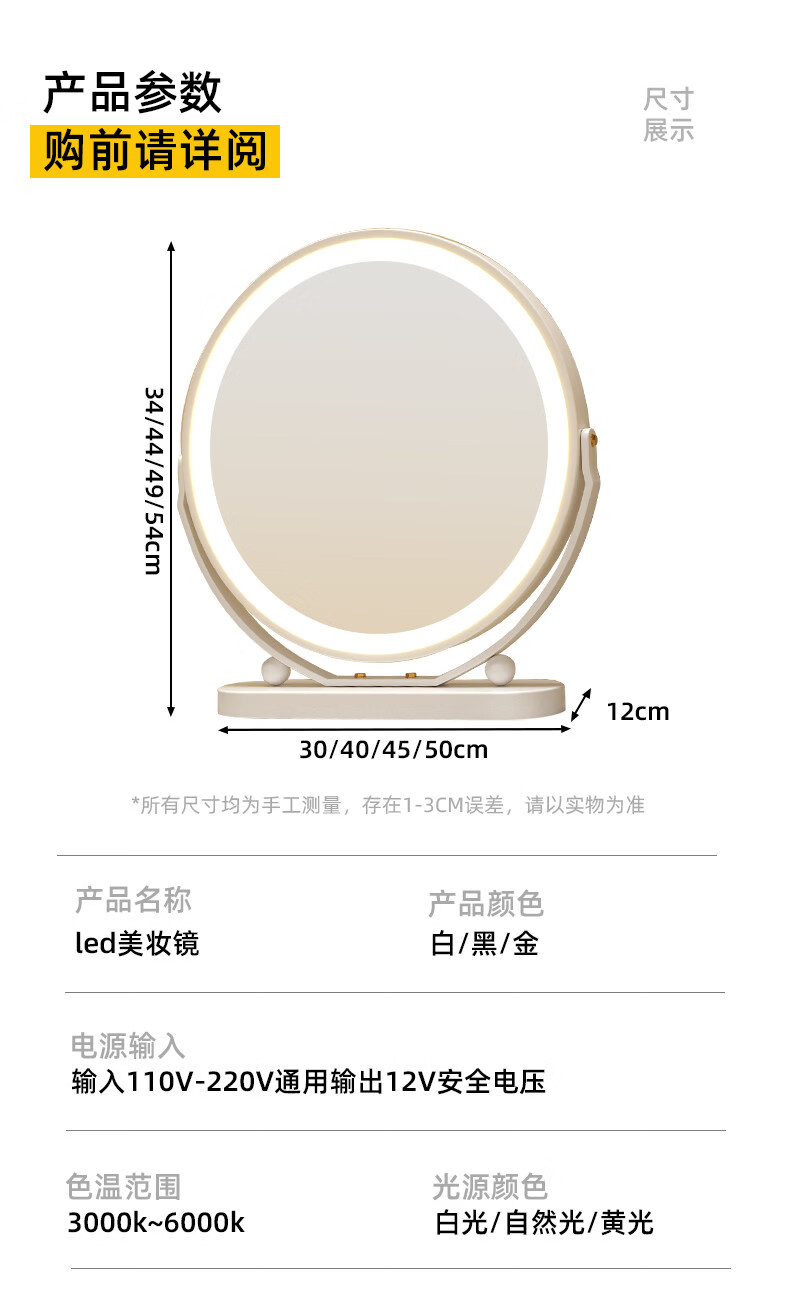 Smart LED light makeup mirror desktop student dormitory light makeup mirror home bedroom rotatable beauty mirror ins rotatable lightless model 30CM (white) environmentally friendly iron