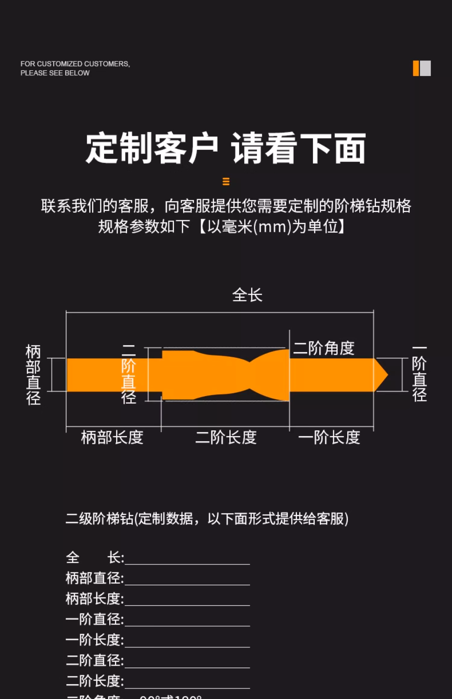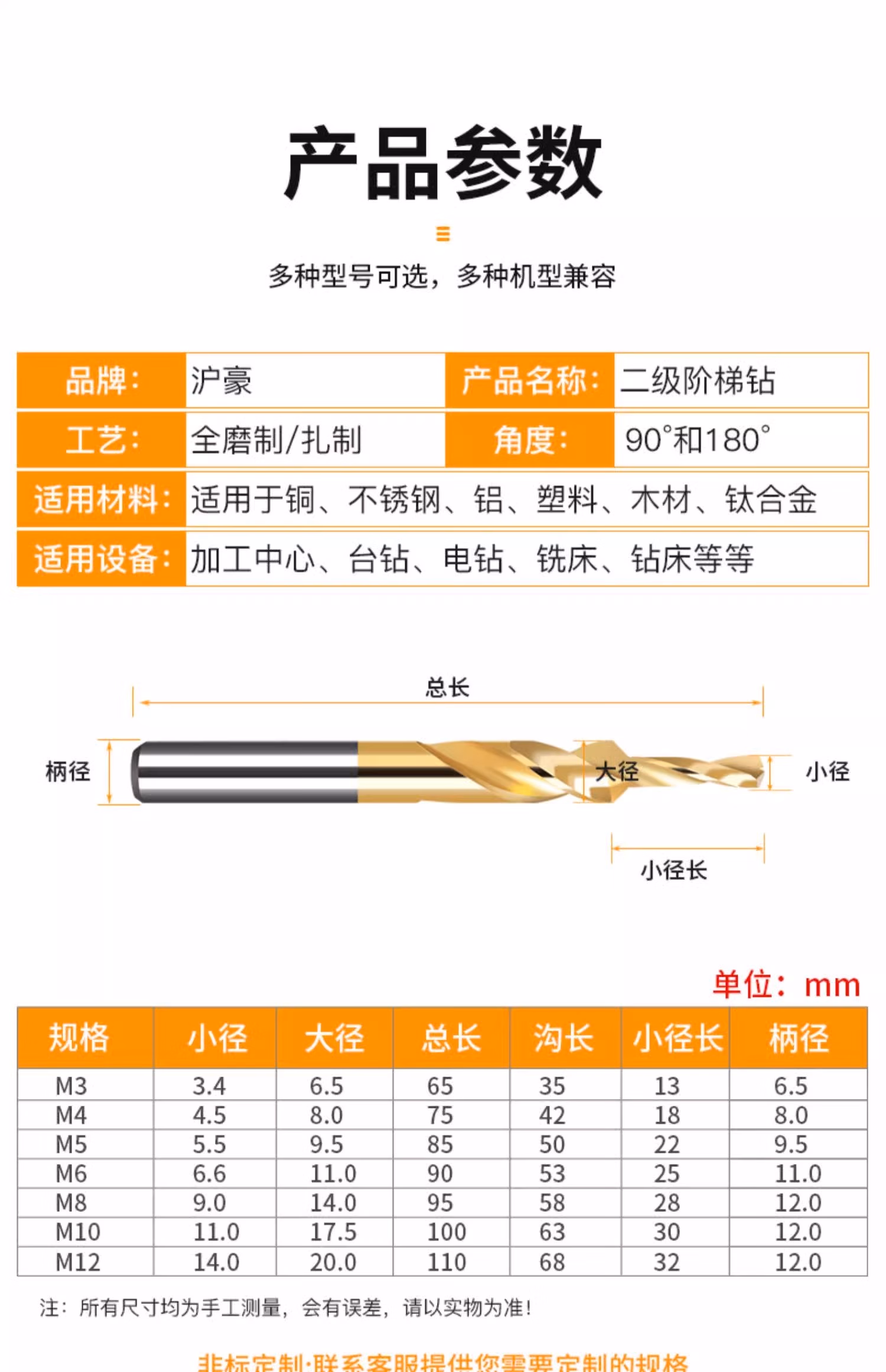 Secondary step drill bit step drill customized stainless steel variable diameter countersunk head countersunk hole expansion sub-drill bit twist drill bit nitrided M3 (3.4-6.5) 90 shank diameter 6.5mm