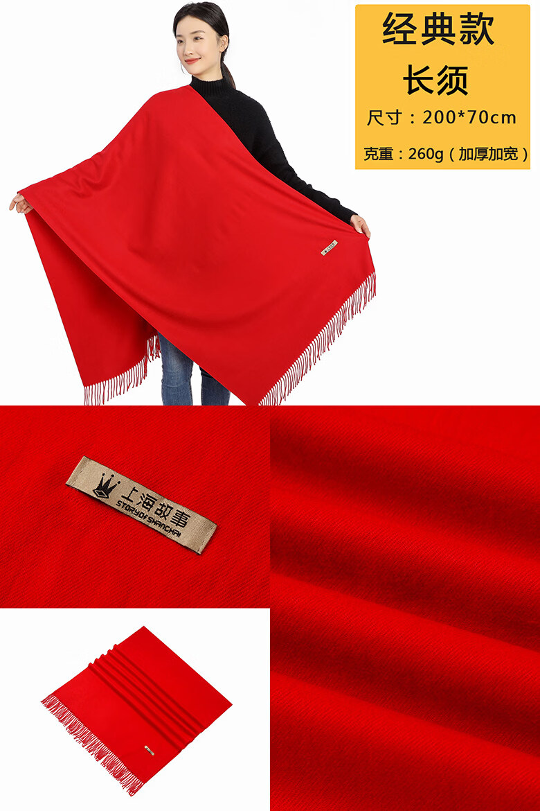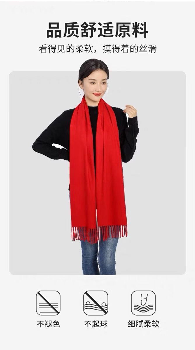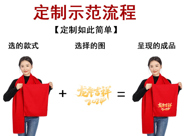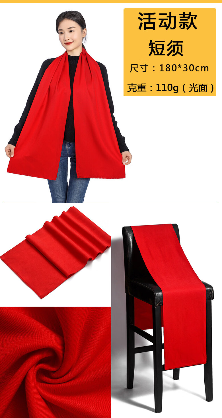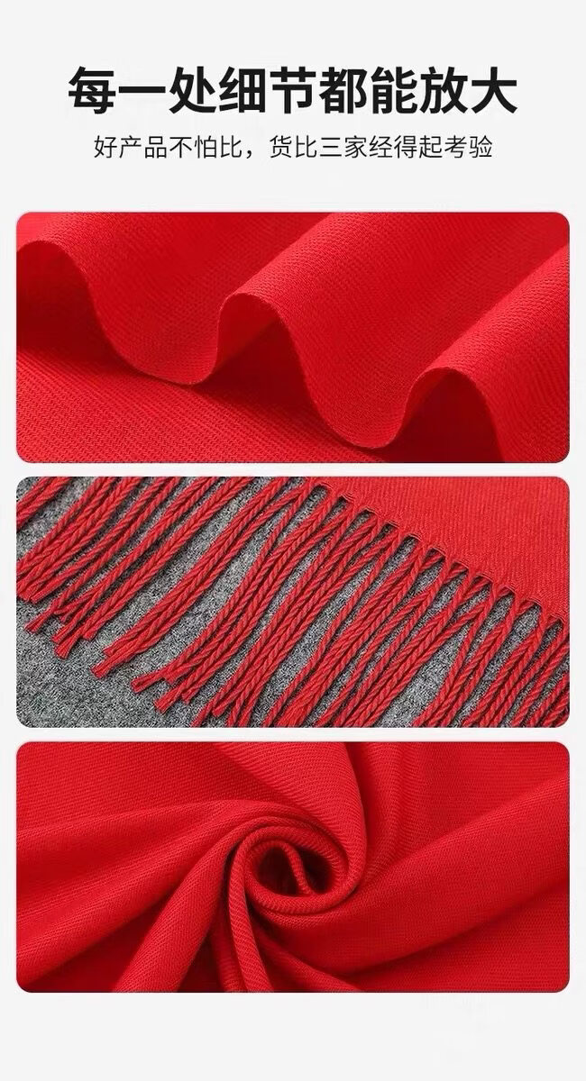 Hengyuanxiang China red scarf custom logo company annual meeting opening celebration event class reunion scarf printed picture embroidery A2 upgraded model long beard 190*32cm