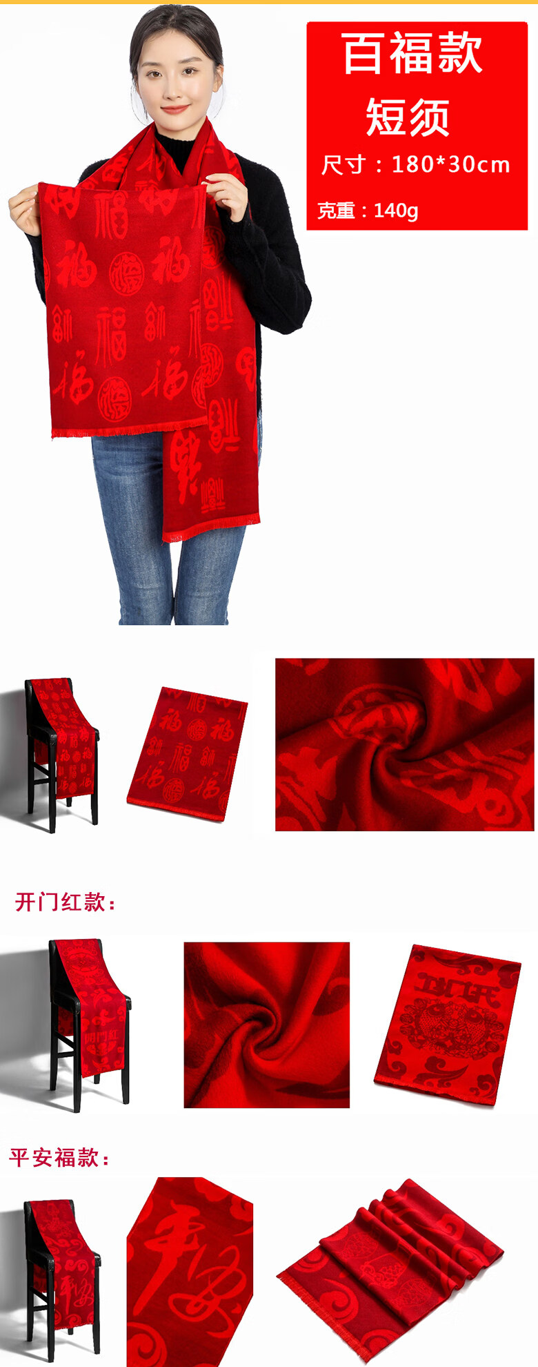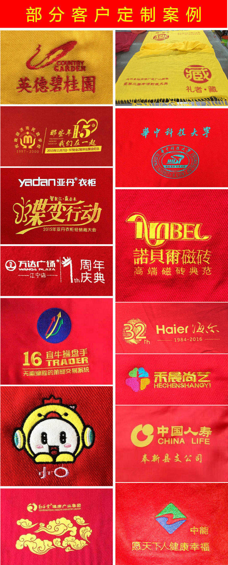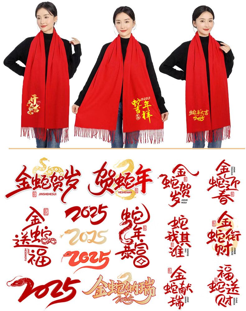 Hengyuanxiang China red scarf custom logo company annual meeting opening celebration event class reunion scarf printed picture embroidery A2 upgraded model long beard 190*32cm