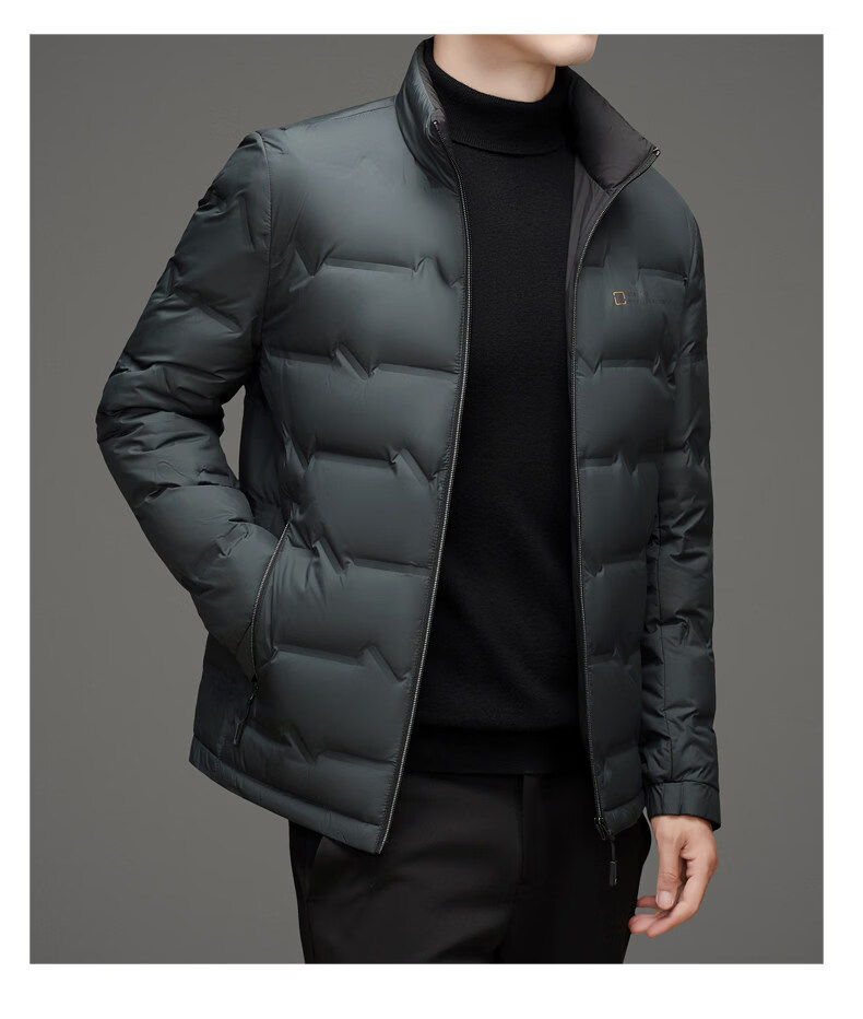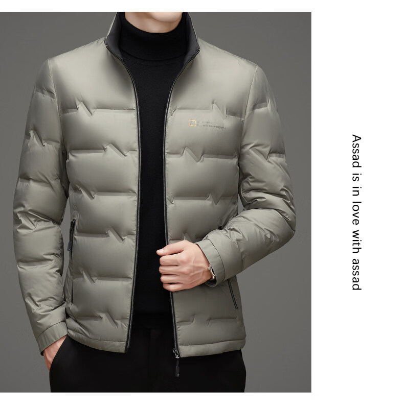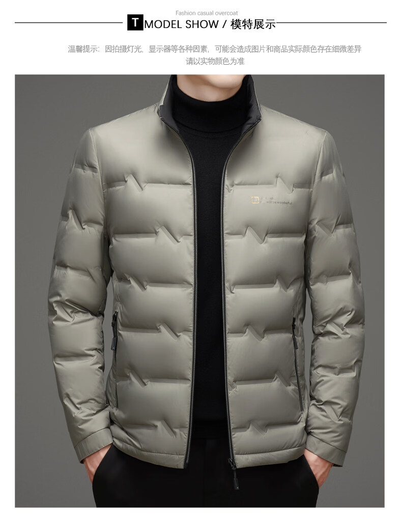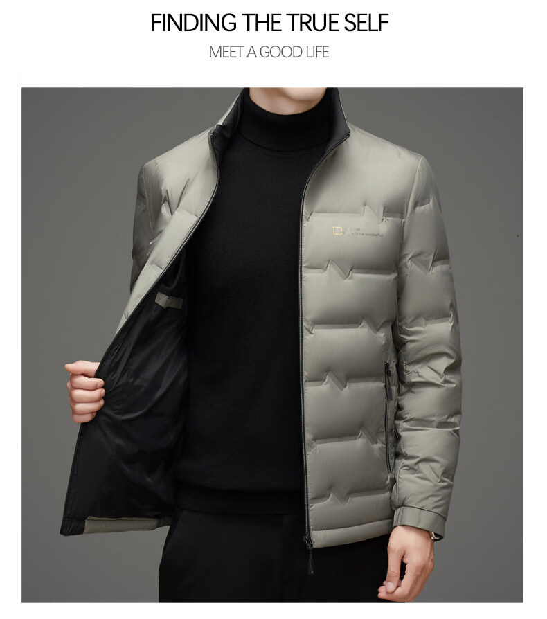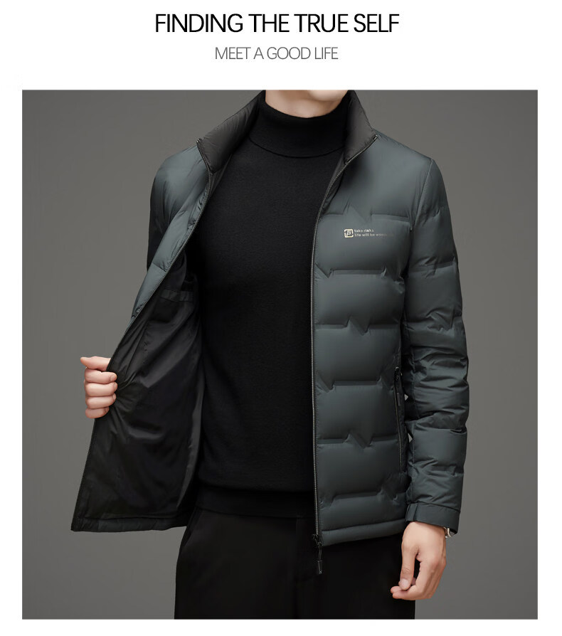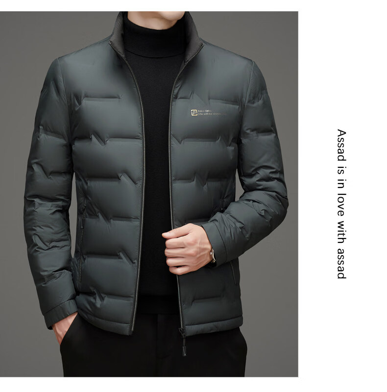 JEEP SPIRIT Men's Short Down Jacket Winter New Thin Goose Down Jacket Warm Thickened Men's Jacket Gray Green M 170