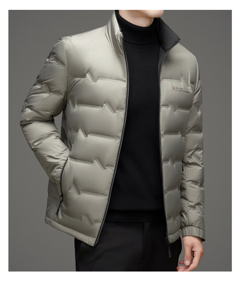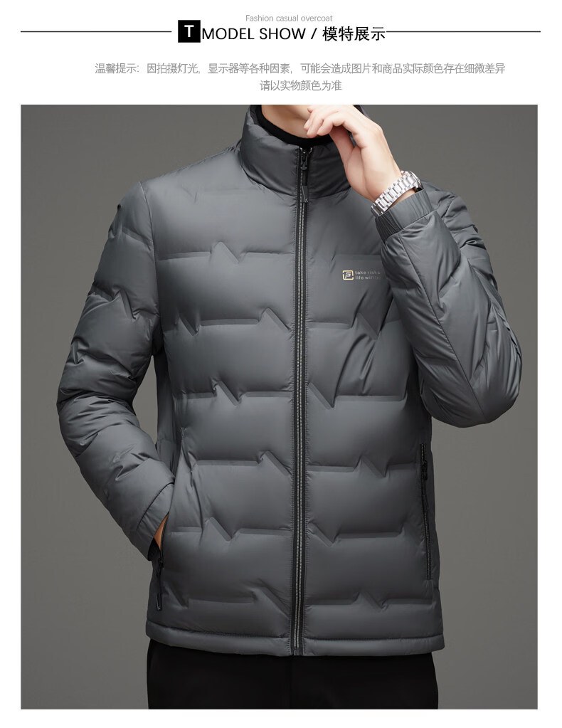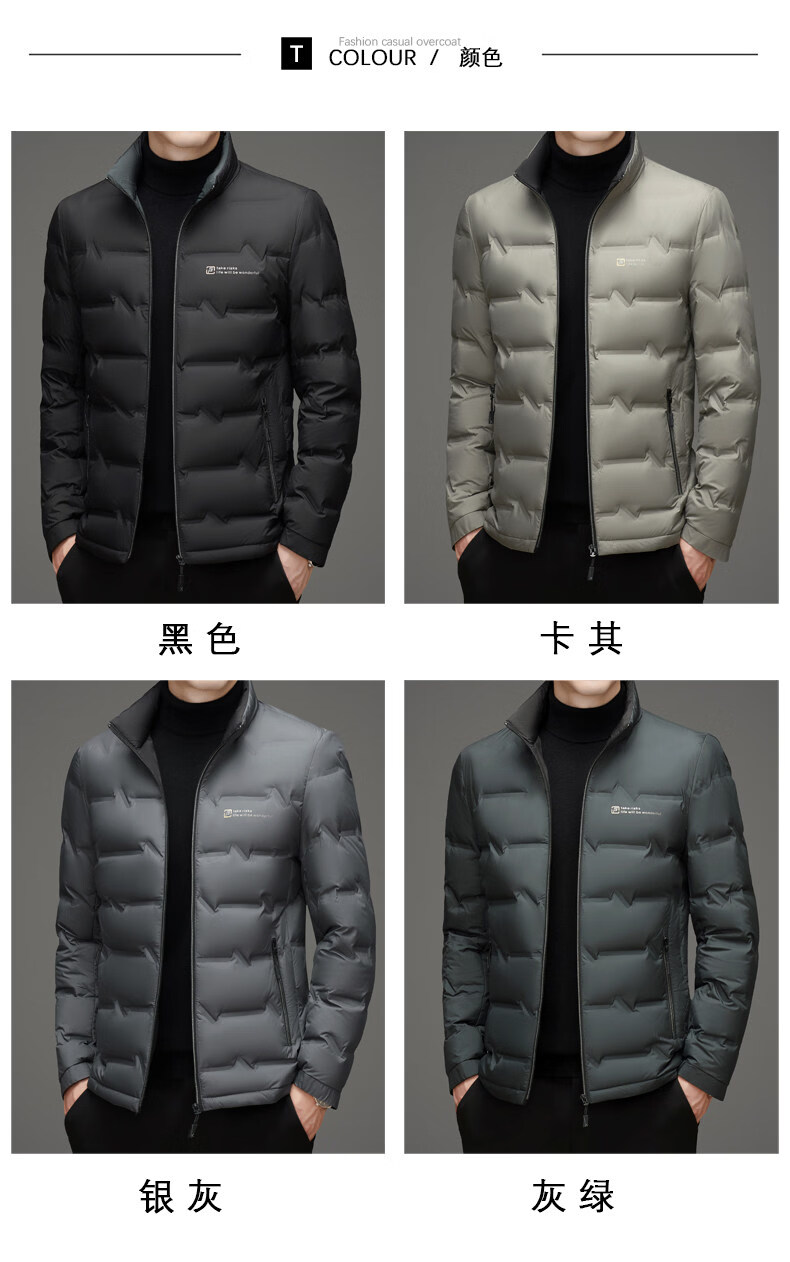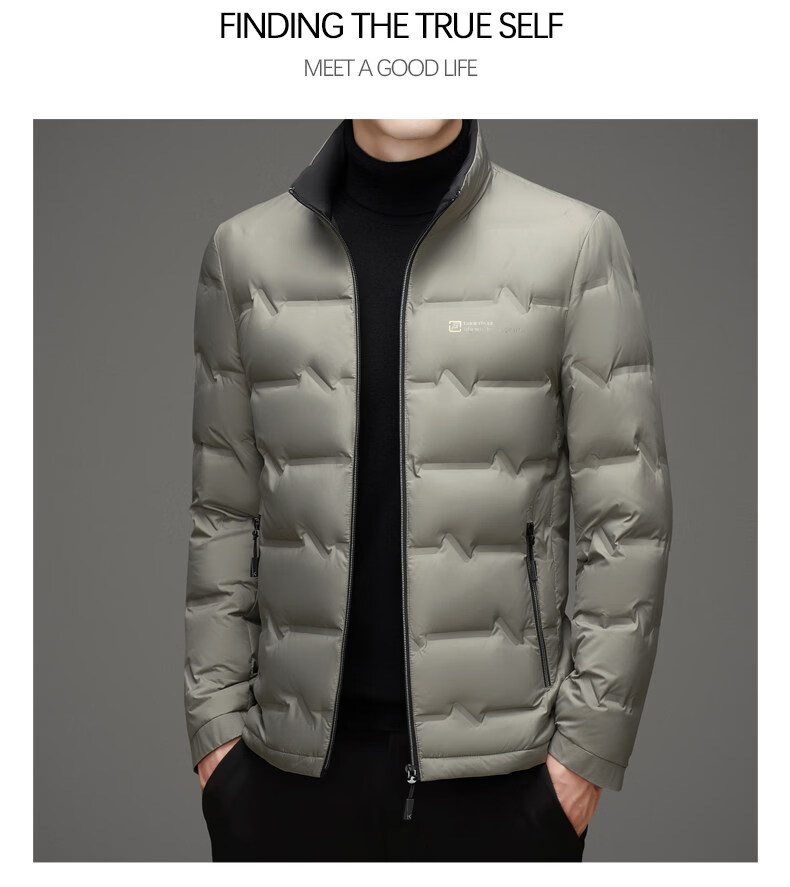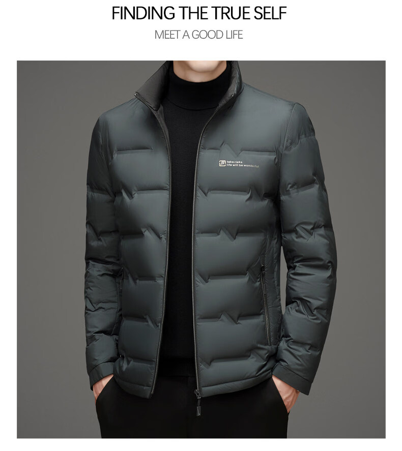 JEEP SPIRIT Men's Short Down Jacket Winter New Thin Goose Down Jacket Warm Thickened Men's Jacket Gray Green M 170