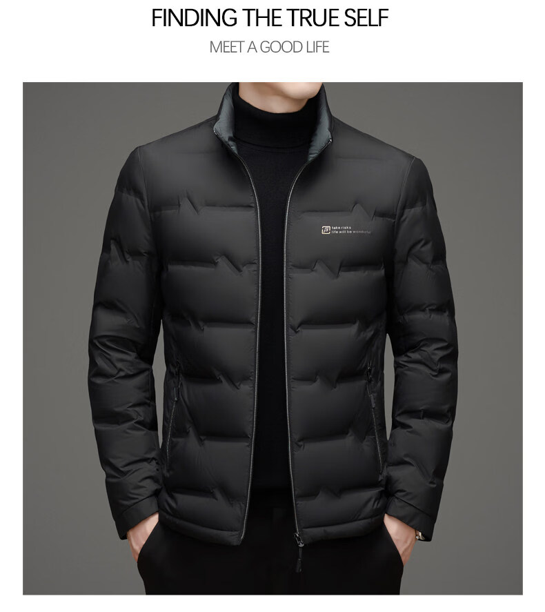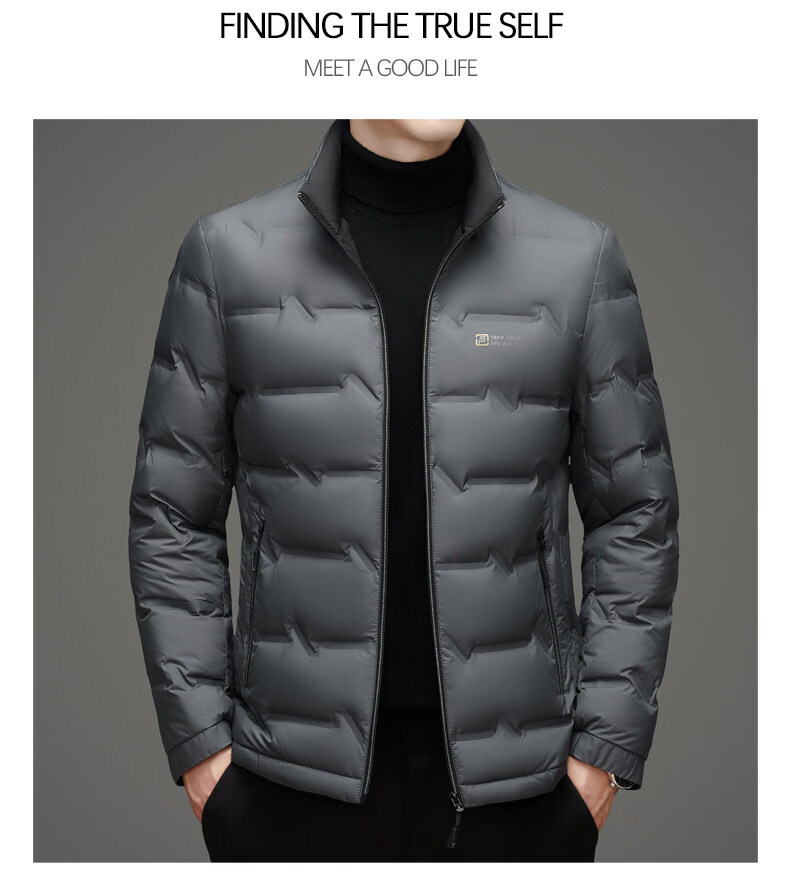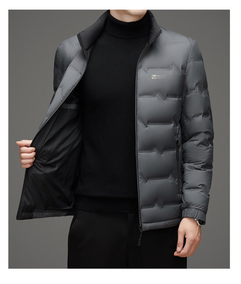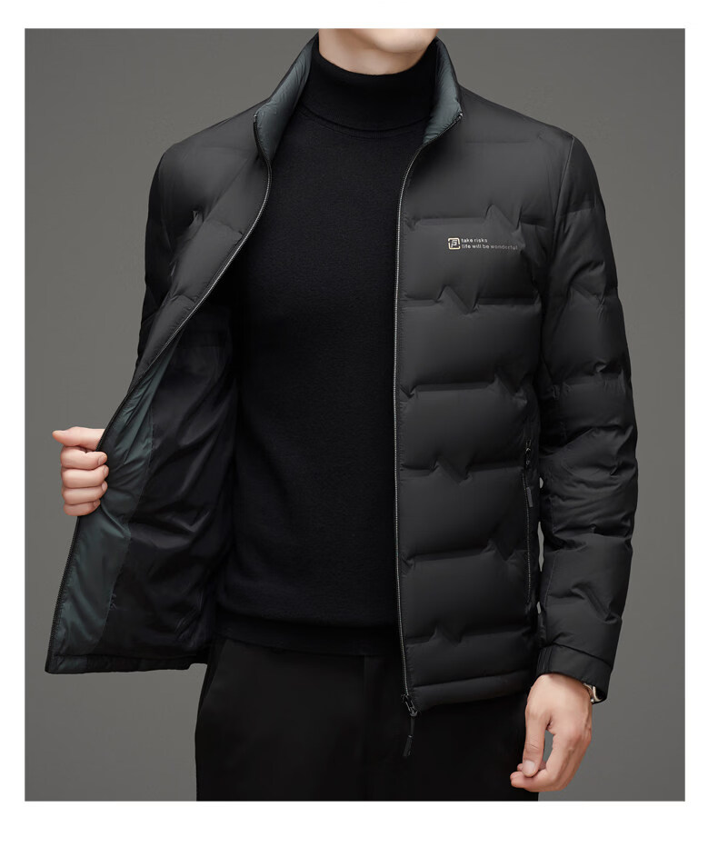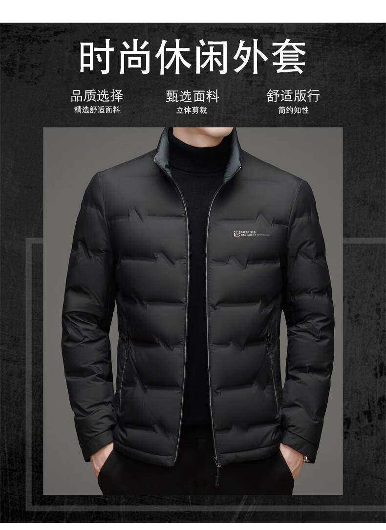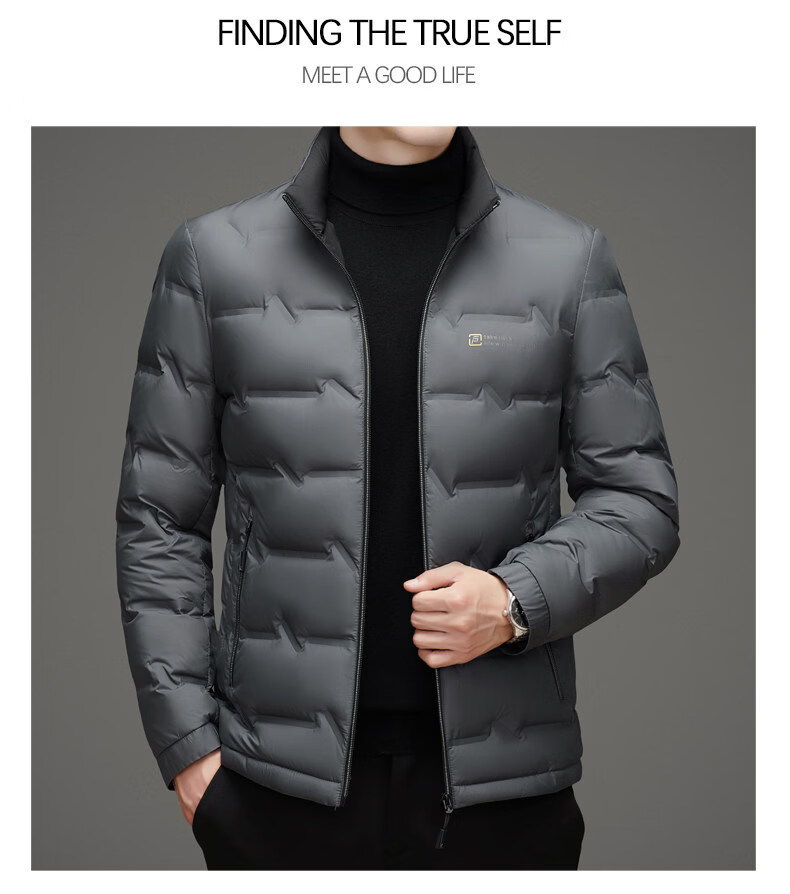 JEEP SPIRIT Men's Short Down Jacket Winter New Thin Goose Down Jacket Warm Thickened Men's Jacket Gray Green M 170