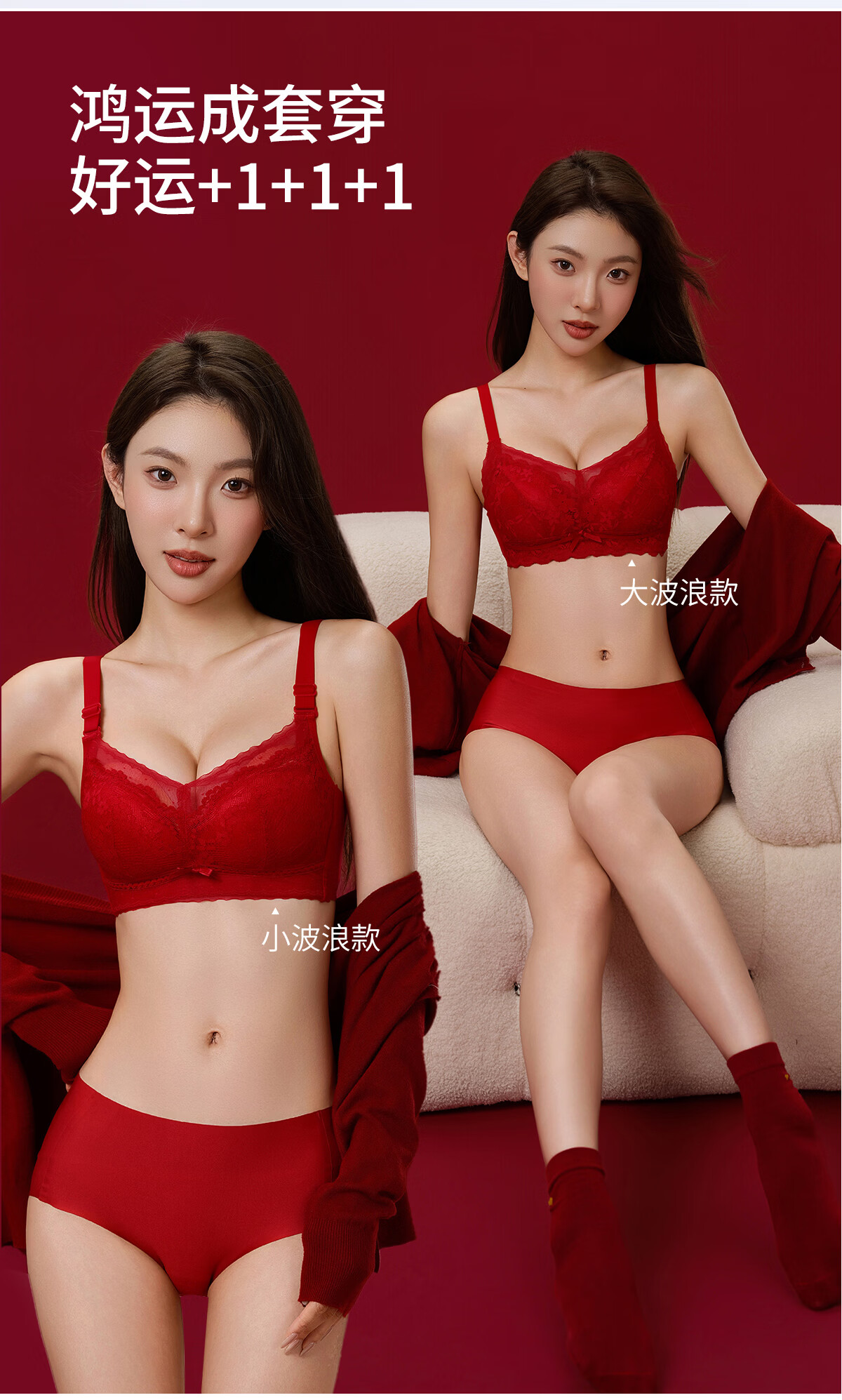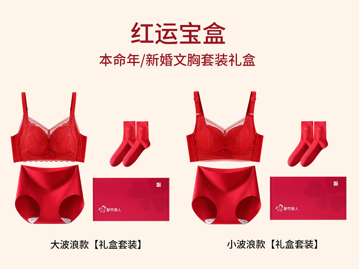 Urban Beauty Ben Ming Nian Red Underwear Set Women's Sexy Lace Small Breast Push Up Wedding Bride Bra Big Red ZHS4711 M 34/75 95-105Jin Jin is equal to 0.5 kg