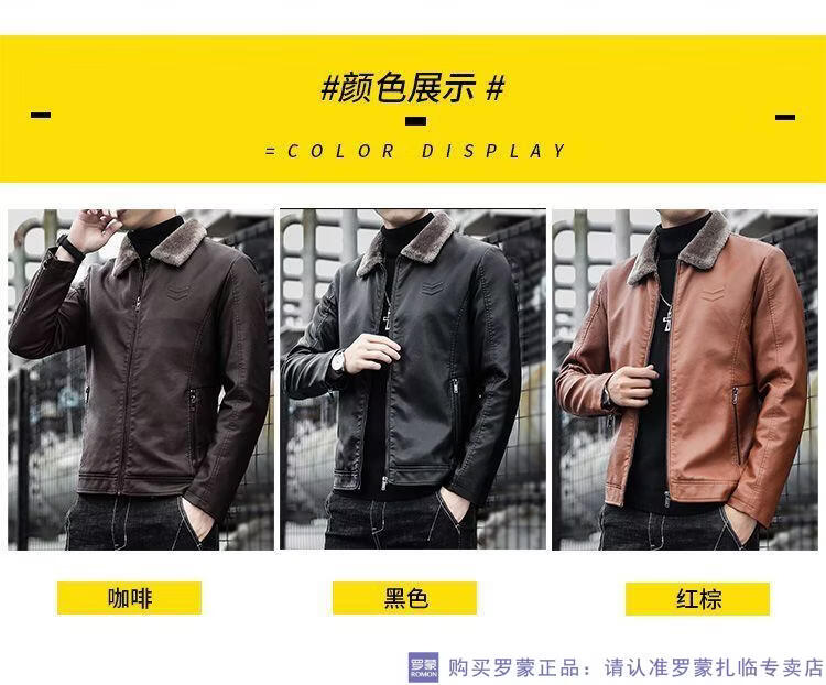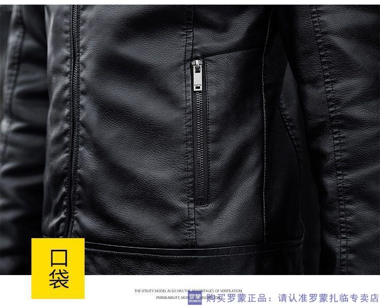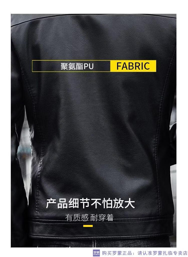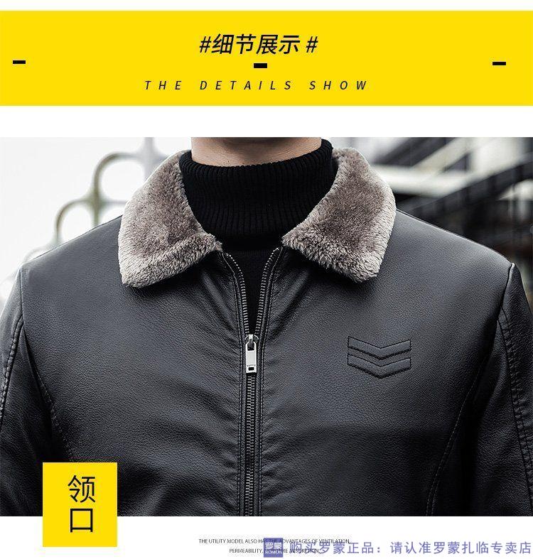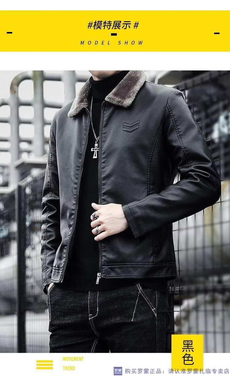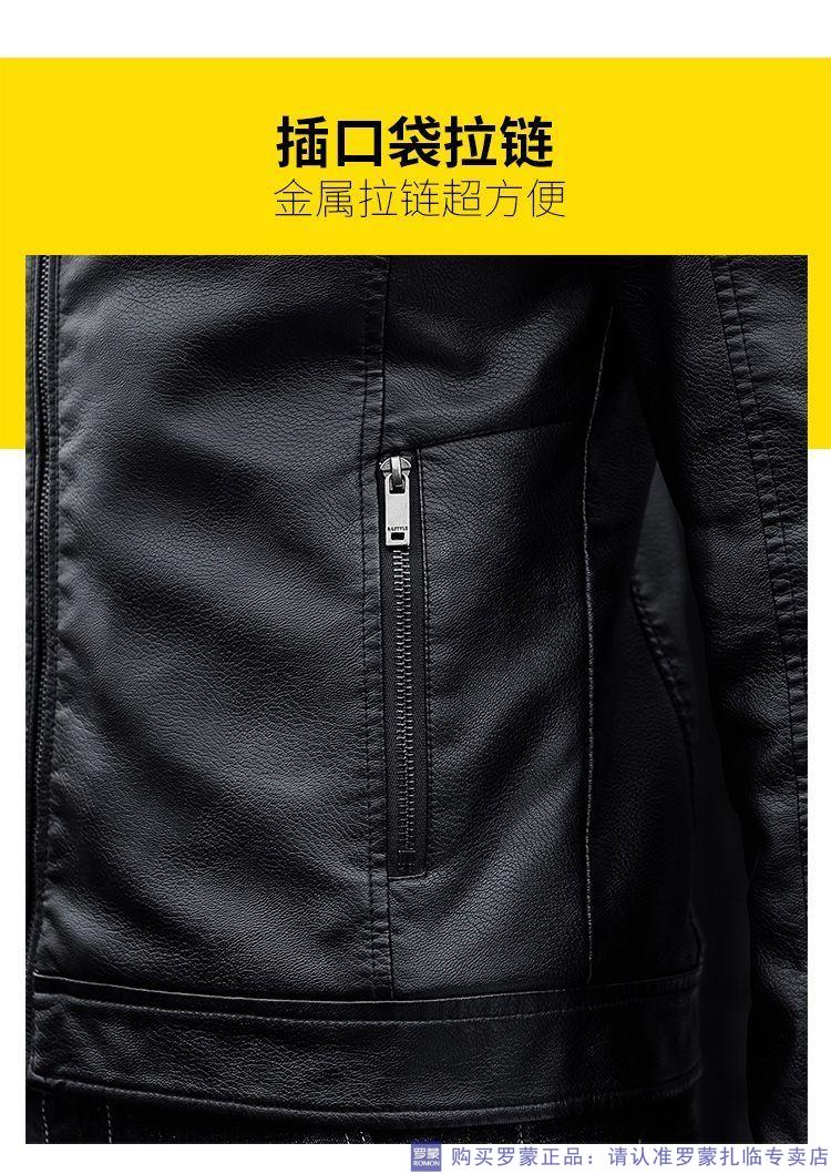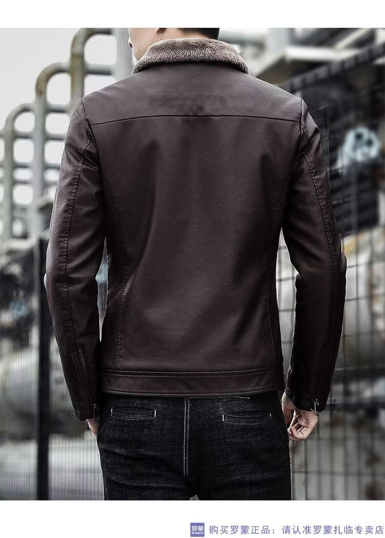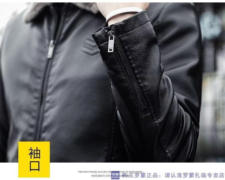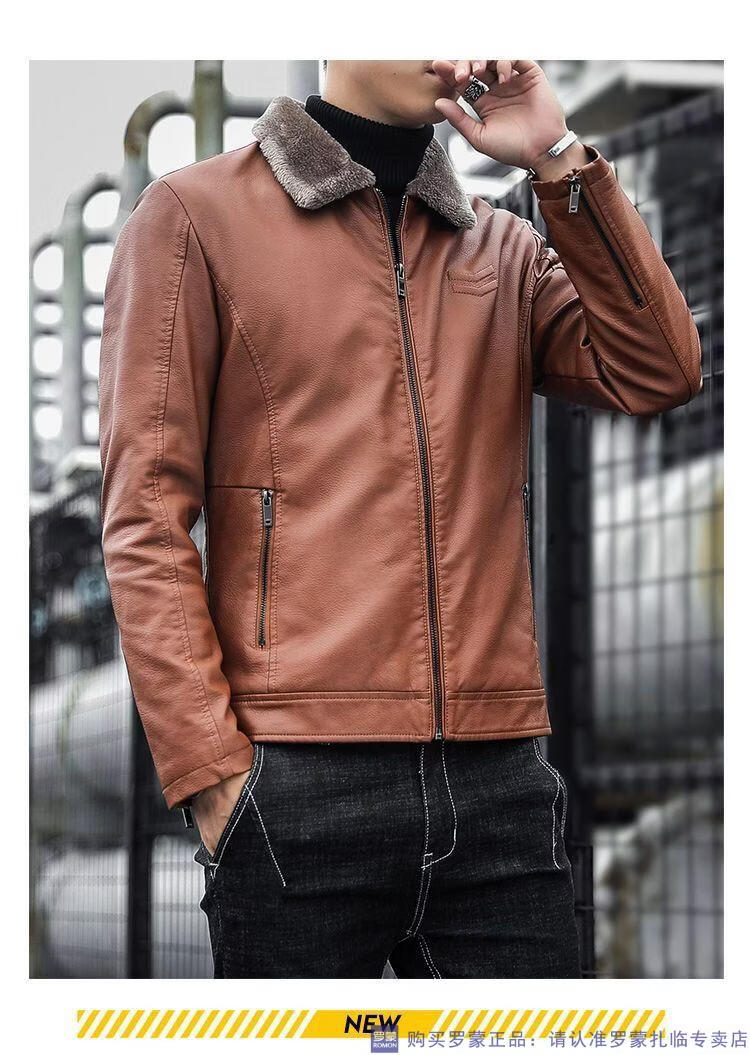 ROMON autumn and winter men's leather jacket new style lapel leather jacket trendy slim motorcycle casual Korean style plush leather jacket black plush plus thick style M recommended 90-110Jin Jin equals 0.5 kg