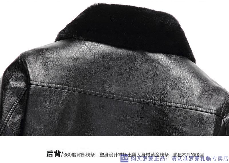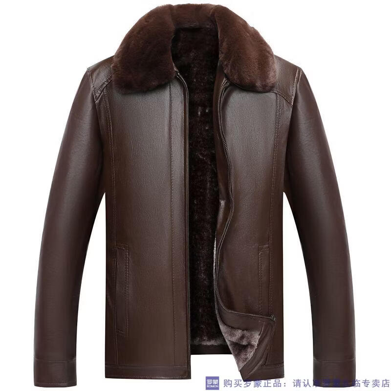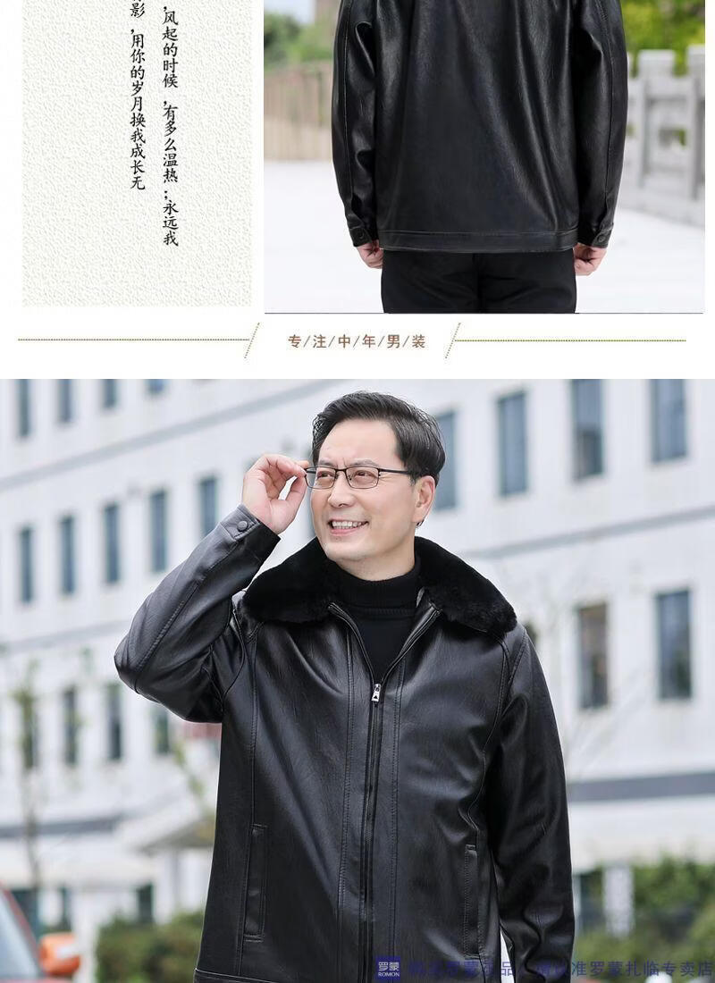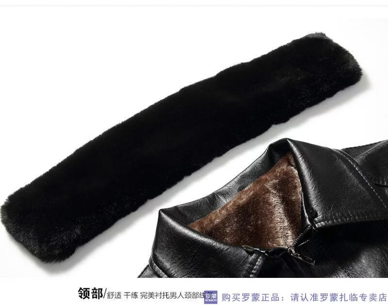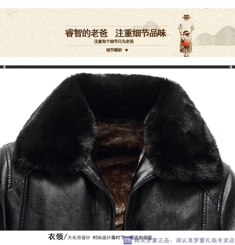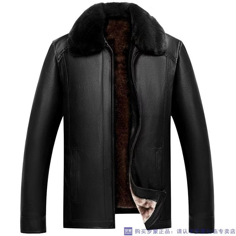 Мужская кожаная куртка ROMON среднего возраста плюс бархатная утолщенная куртка из искусственной кожи, мужская свободная повседневная одежда для папы, осеннее и зимнее пальто среднего и пожилого возраста, съемное плюс бархатное черное утолщенное пальто M 52 (105-120Jin Jin соответствует 0,5 кг)