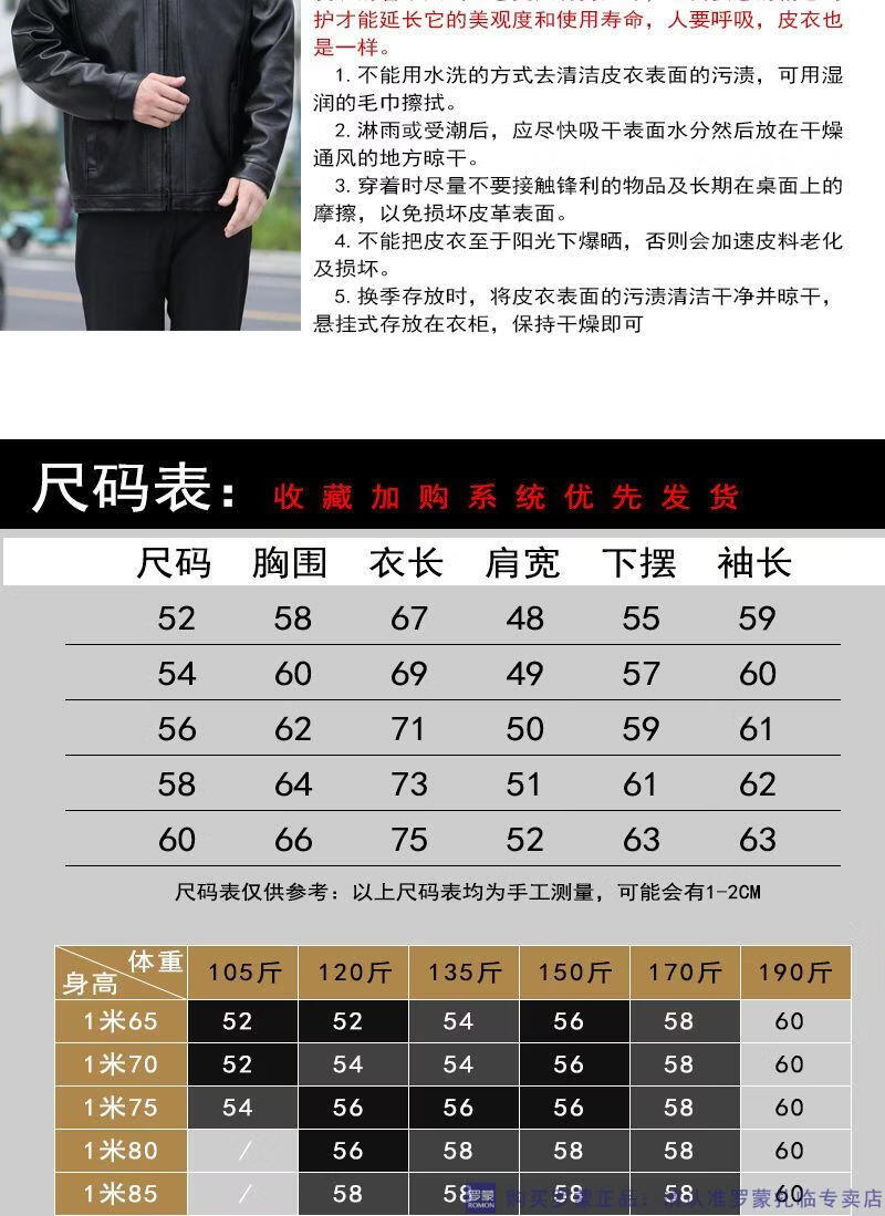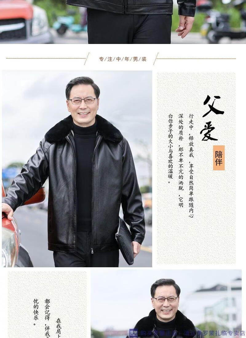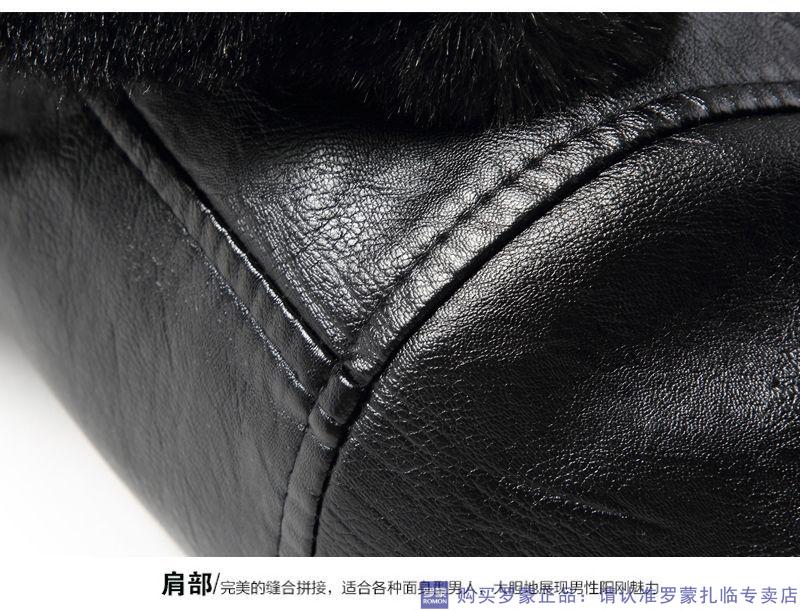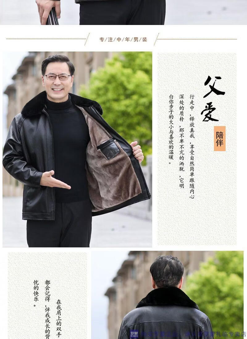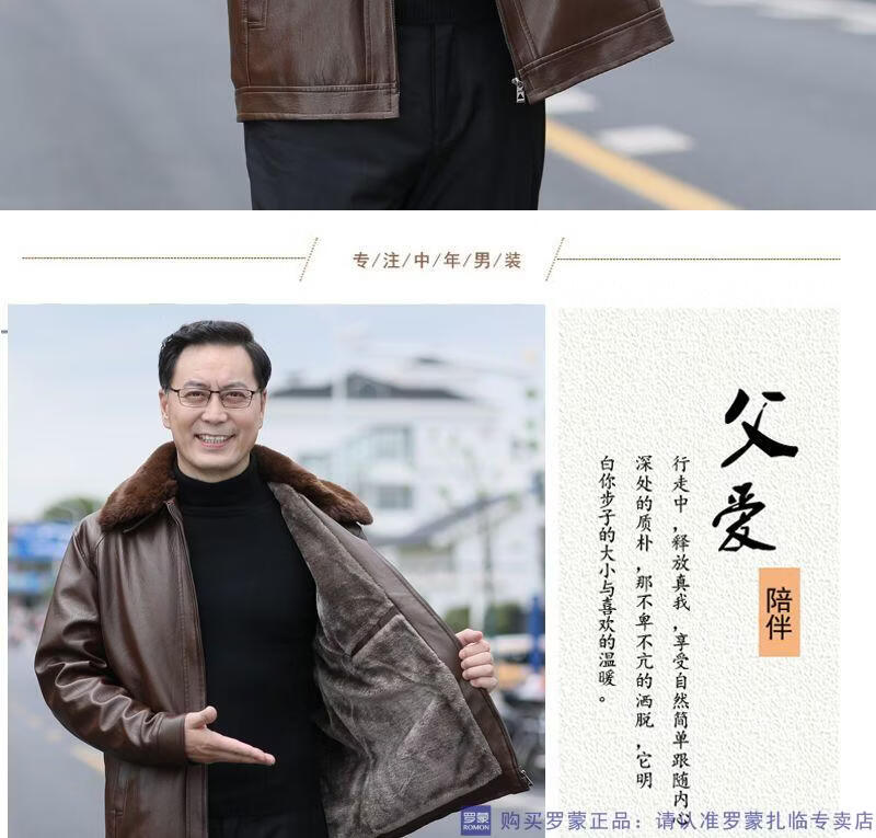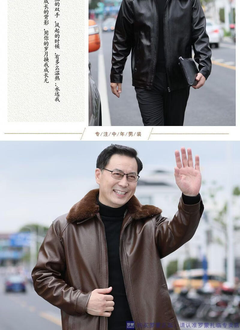 Мужская кожаная куртка ROMON среднего возраста плюс бархатная утолщенная куртка из искусственной кожи, мужская свободная повседневная одежда для папы, осеннее и зимнее пальто среднего и пожилого возраста, съемное плюс бархатное черное утолщенное пальто M 52 (105-120Jin Jin соответствует 0,5 кг)