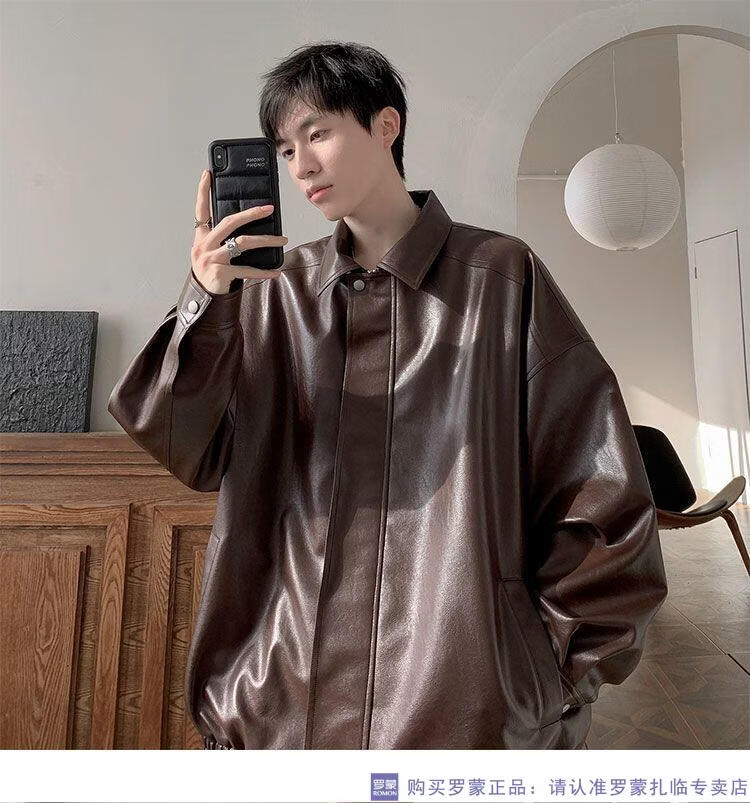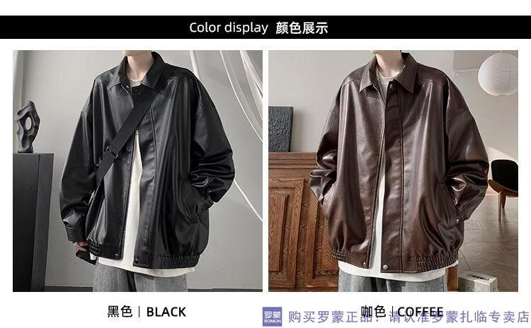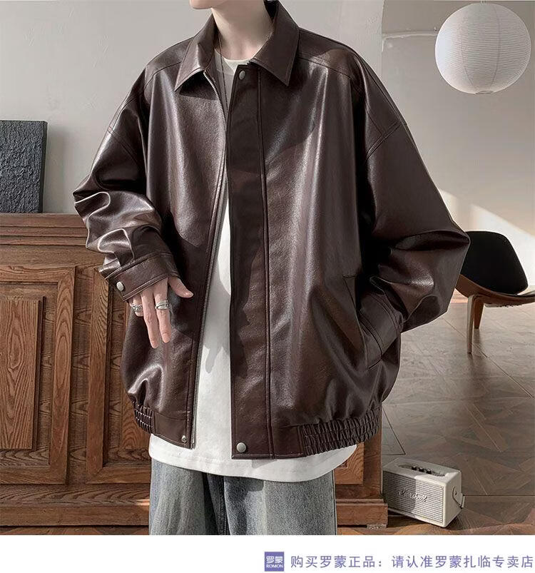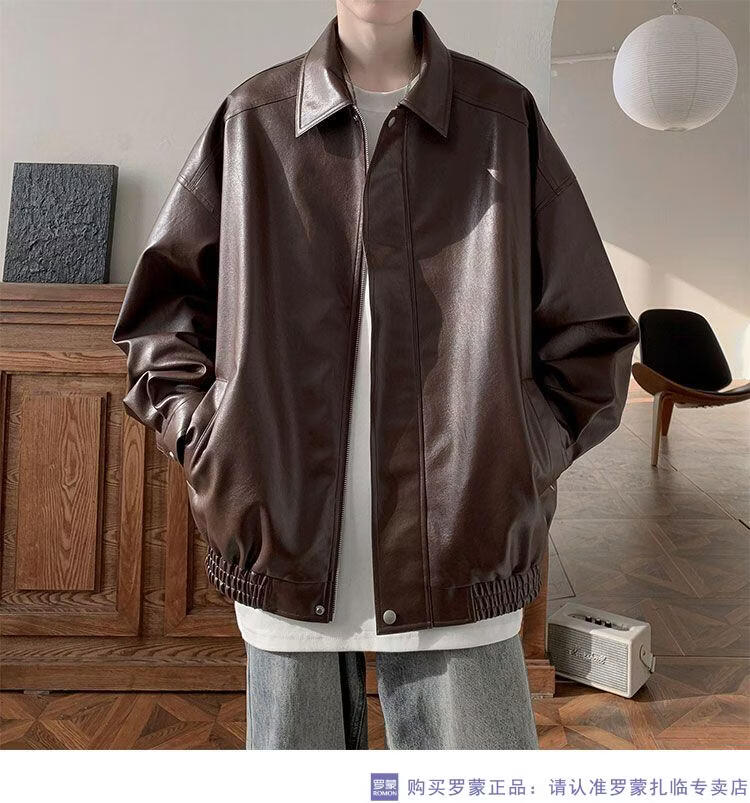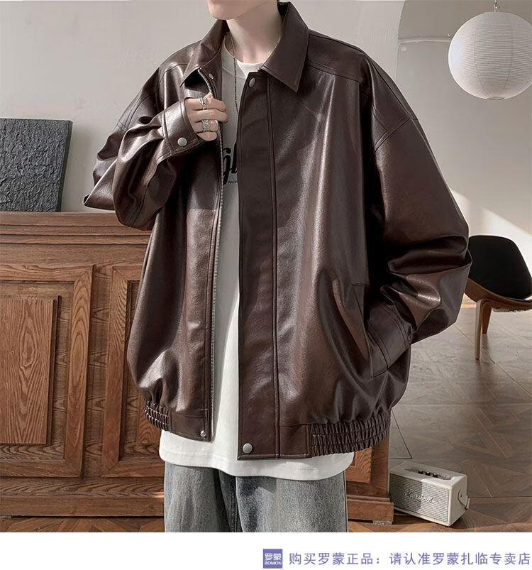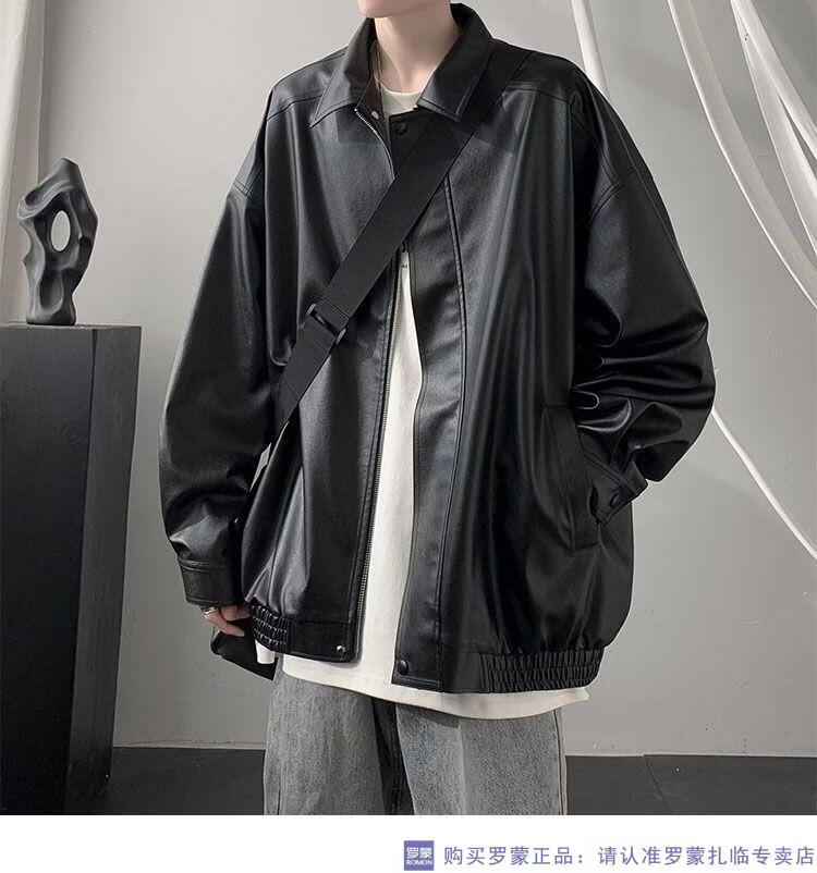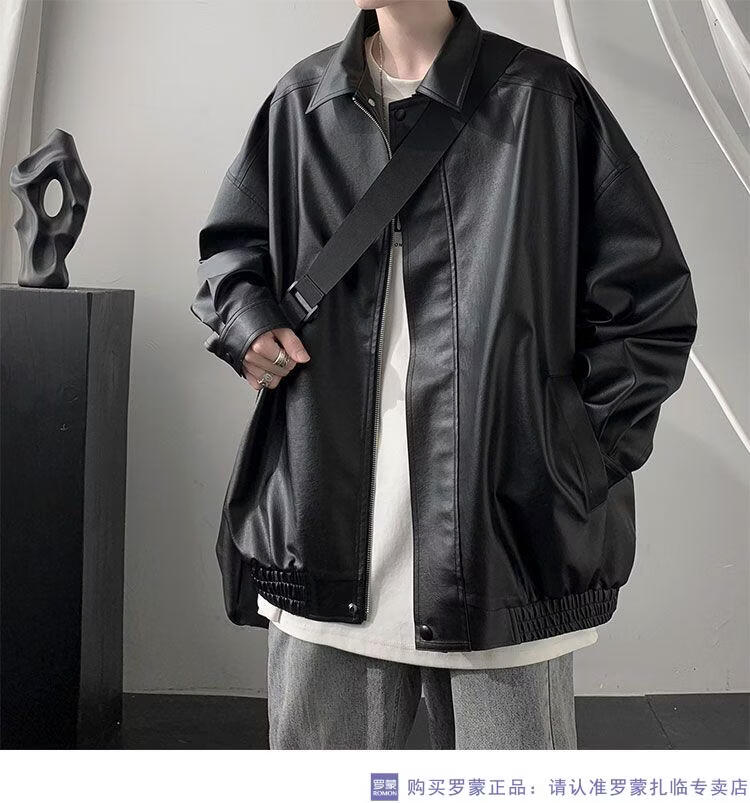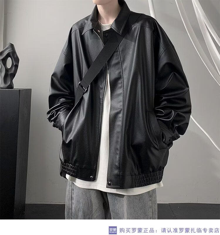 ROMON winter leather jacket men's velvet thickened American high street motorcycle jacket handsome loose casual pu leather top with black German velvet lining M The quality is higher than that of its peers