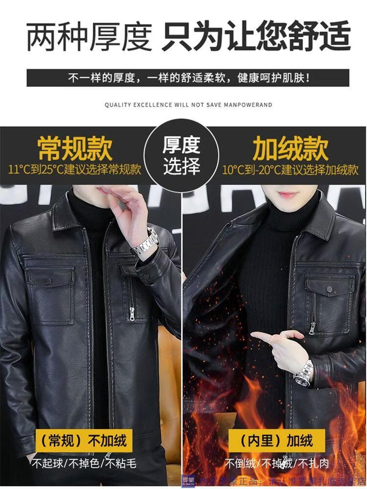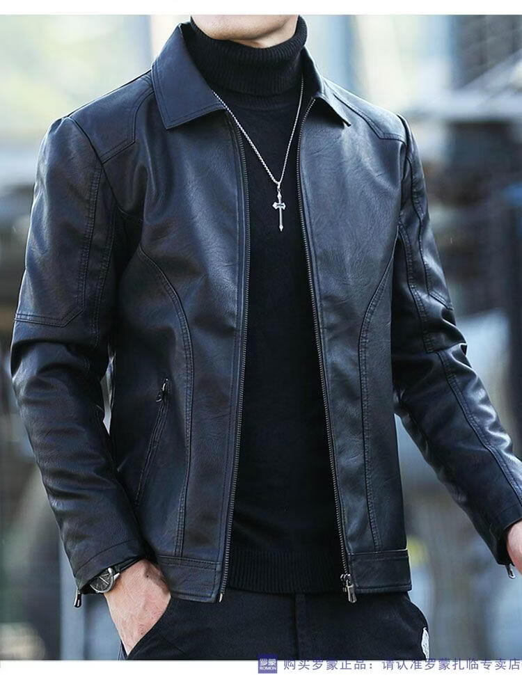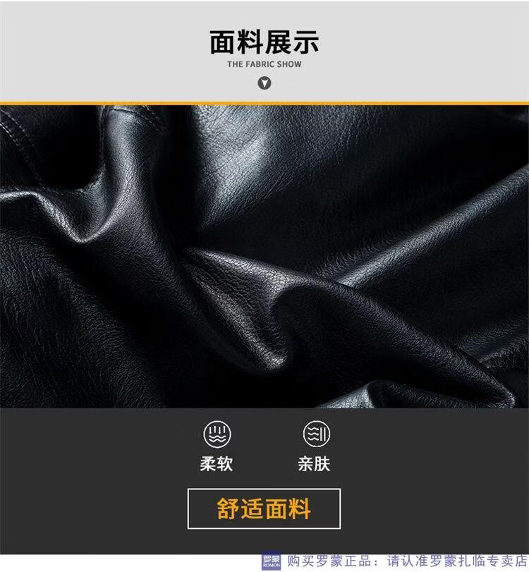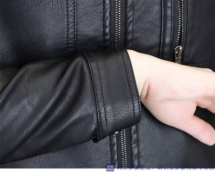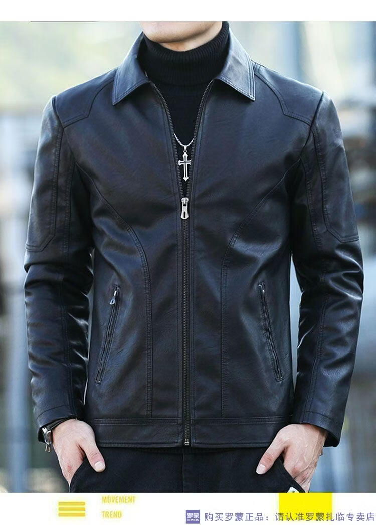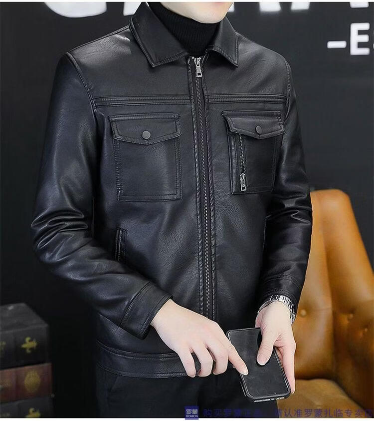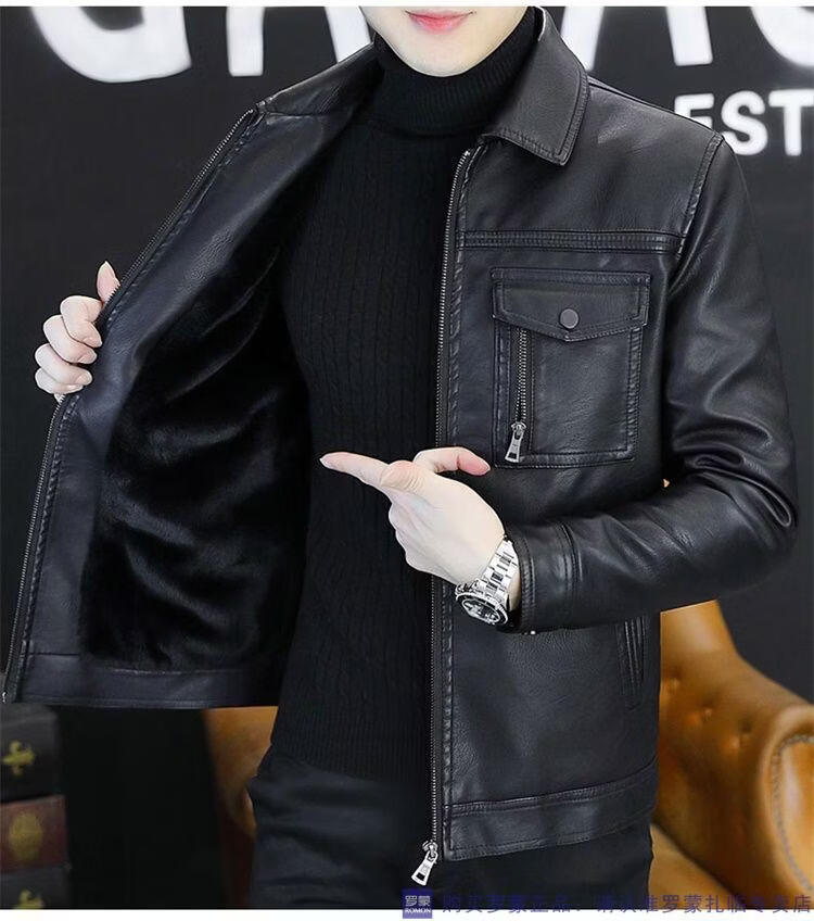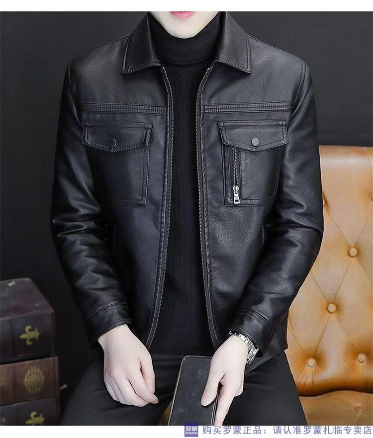 ROMON Leather Men's Jacket Haining Motorcycle Lapel Plus Velvet Warm Autumn and Winter Young and Middle-aged Men's Slim Leather Jacket Pocket Style Black Single Jacket M Recommended 90-115 Jin Jin equals 0.5 kg