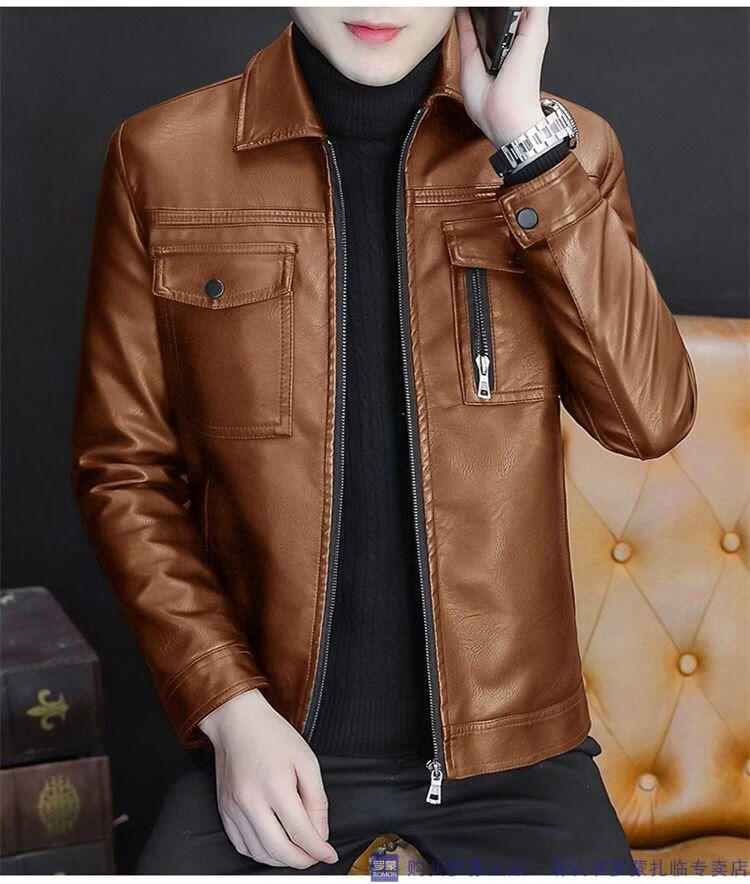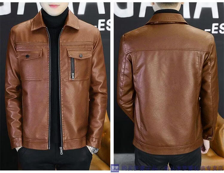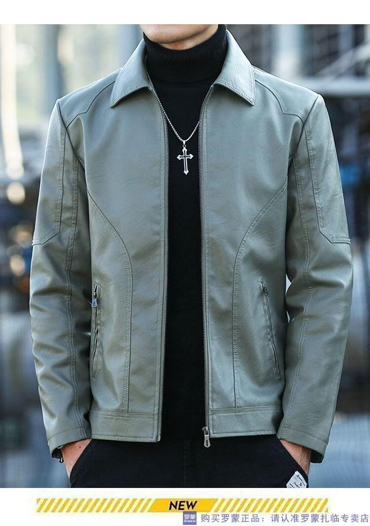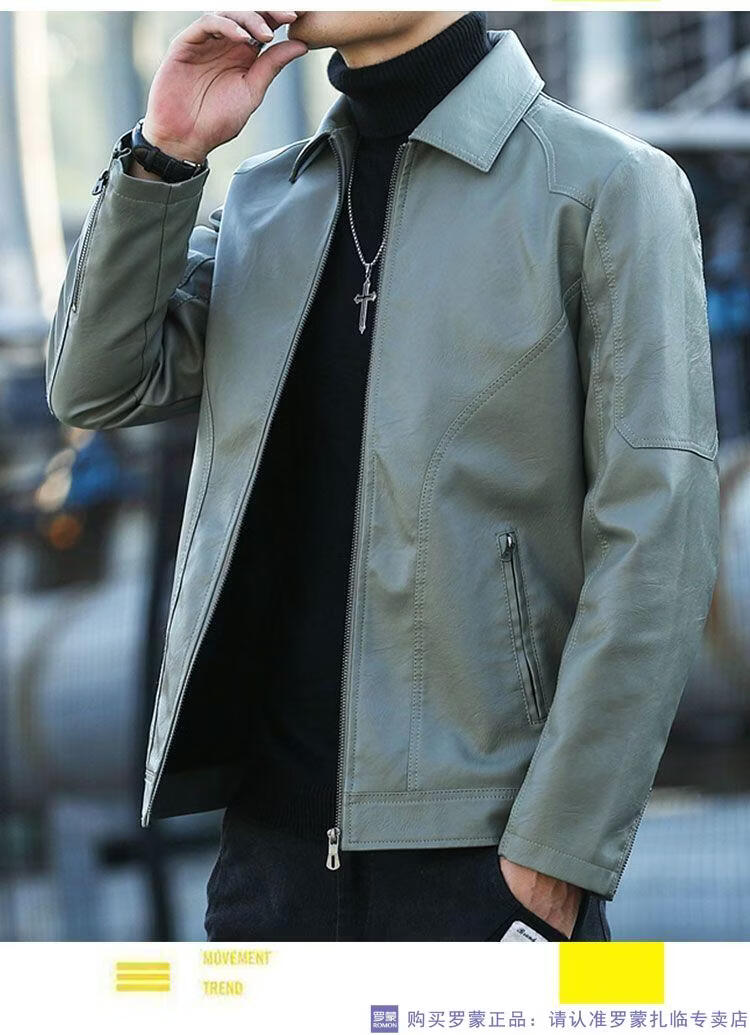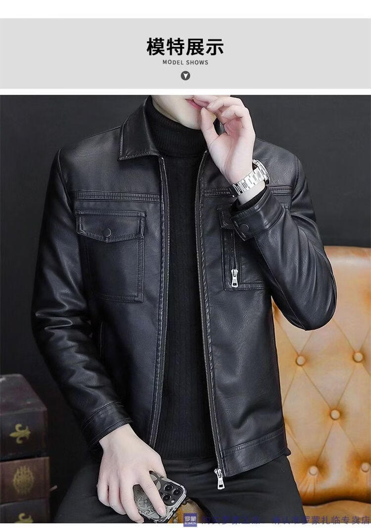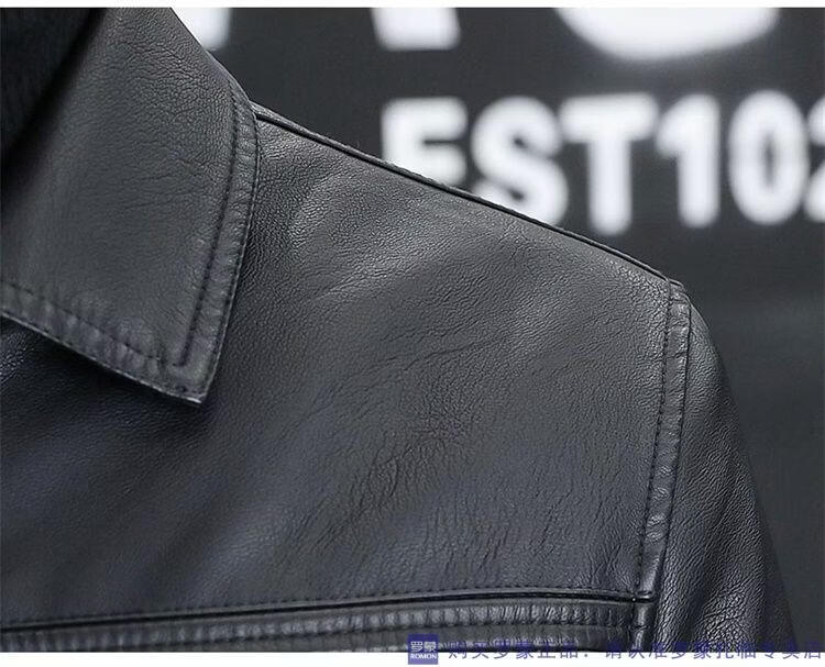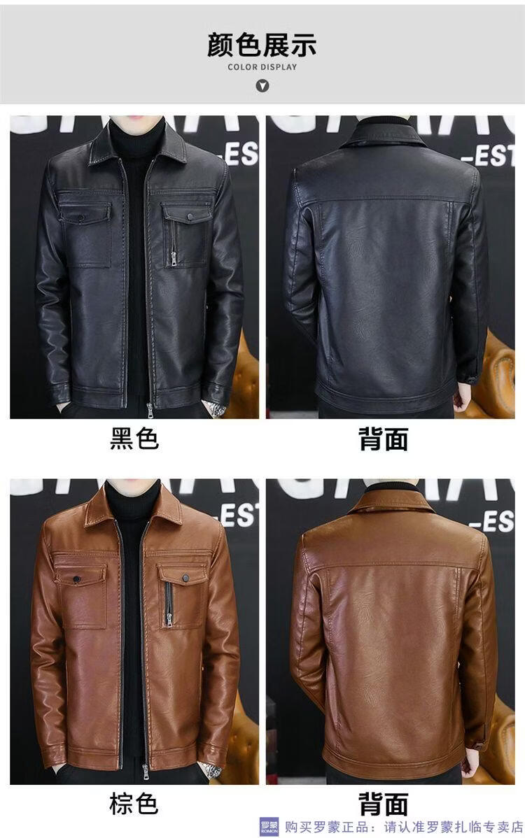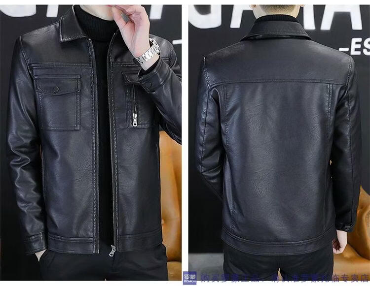 ROMON Leather Men's Jacket Haining Motorcycle Lapel Plus Velvet Warm Autumn and Winter Young and Middle-aged Men's Slim Leather Jacket Pocket Style Black Single Jacket M Recommended 90-115 Jin Jin equals 0.5 kg