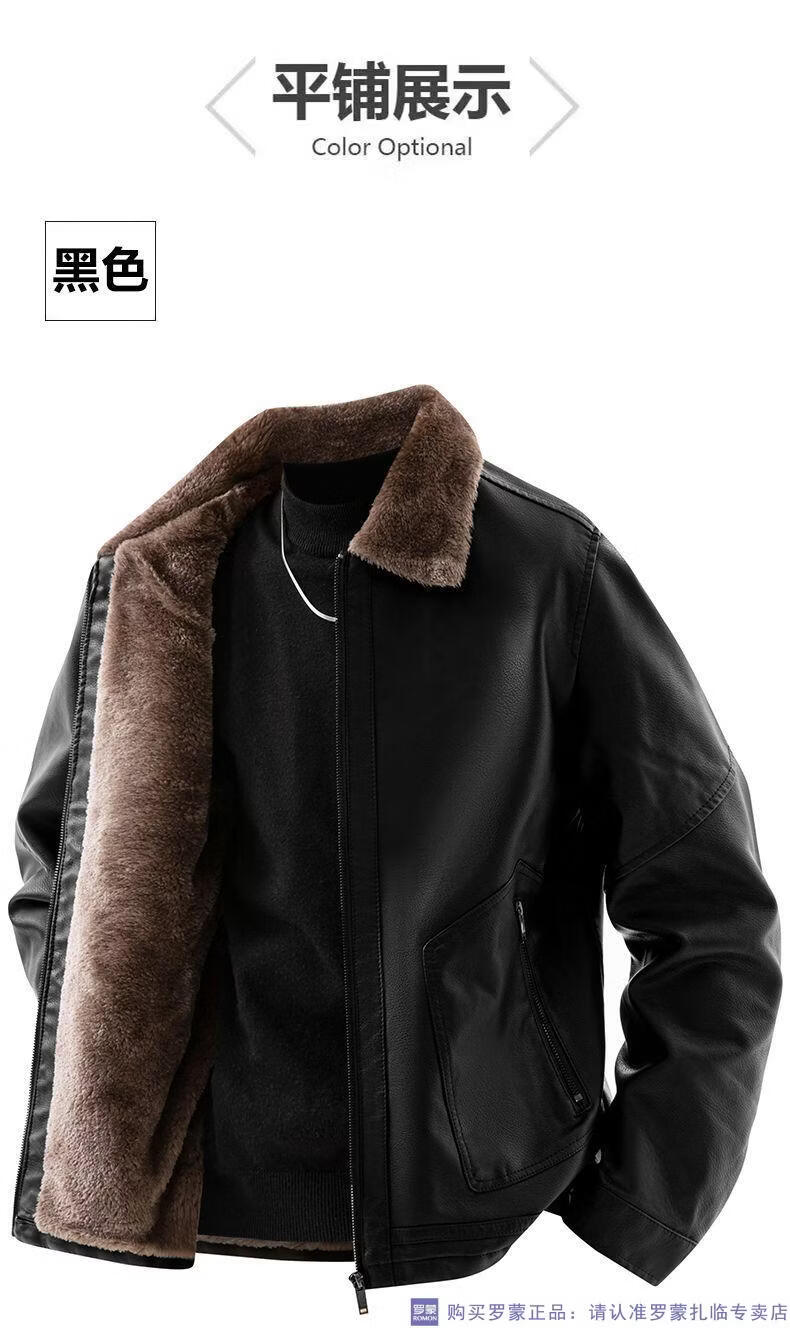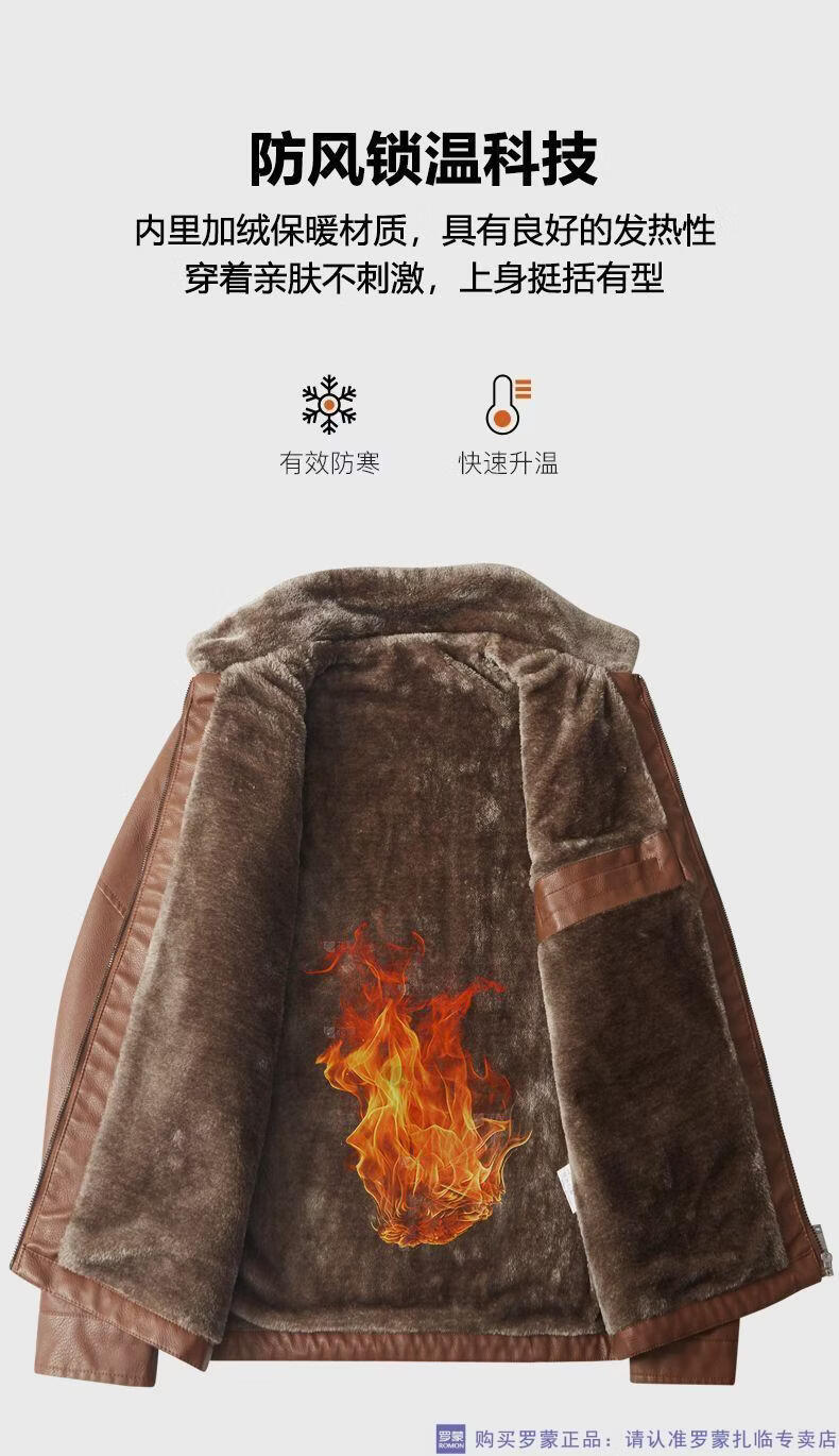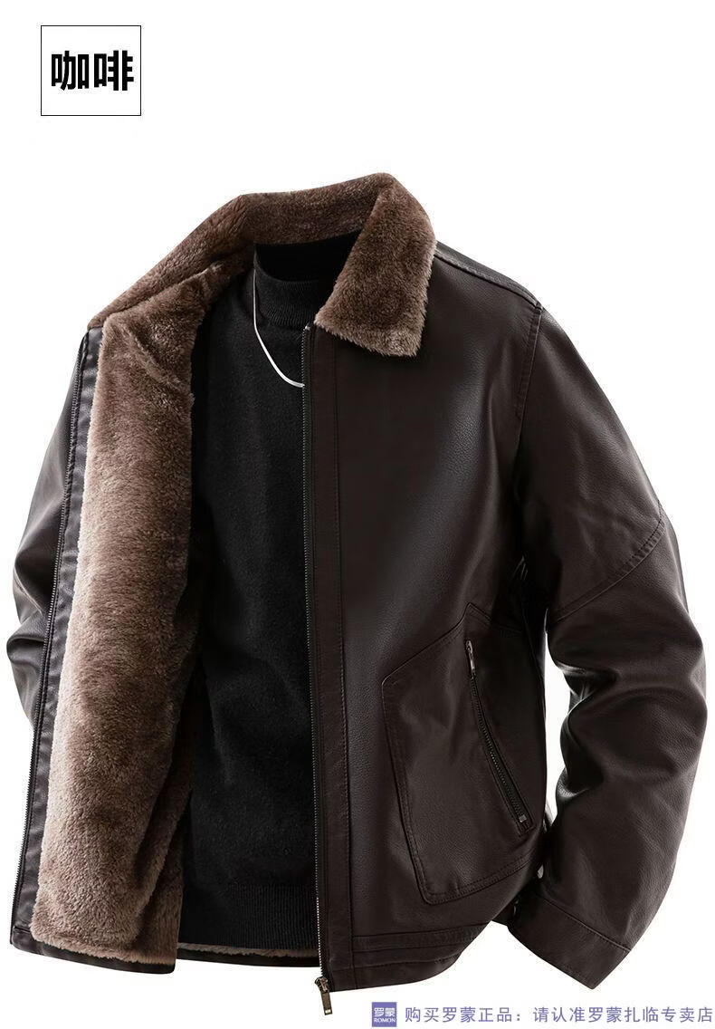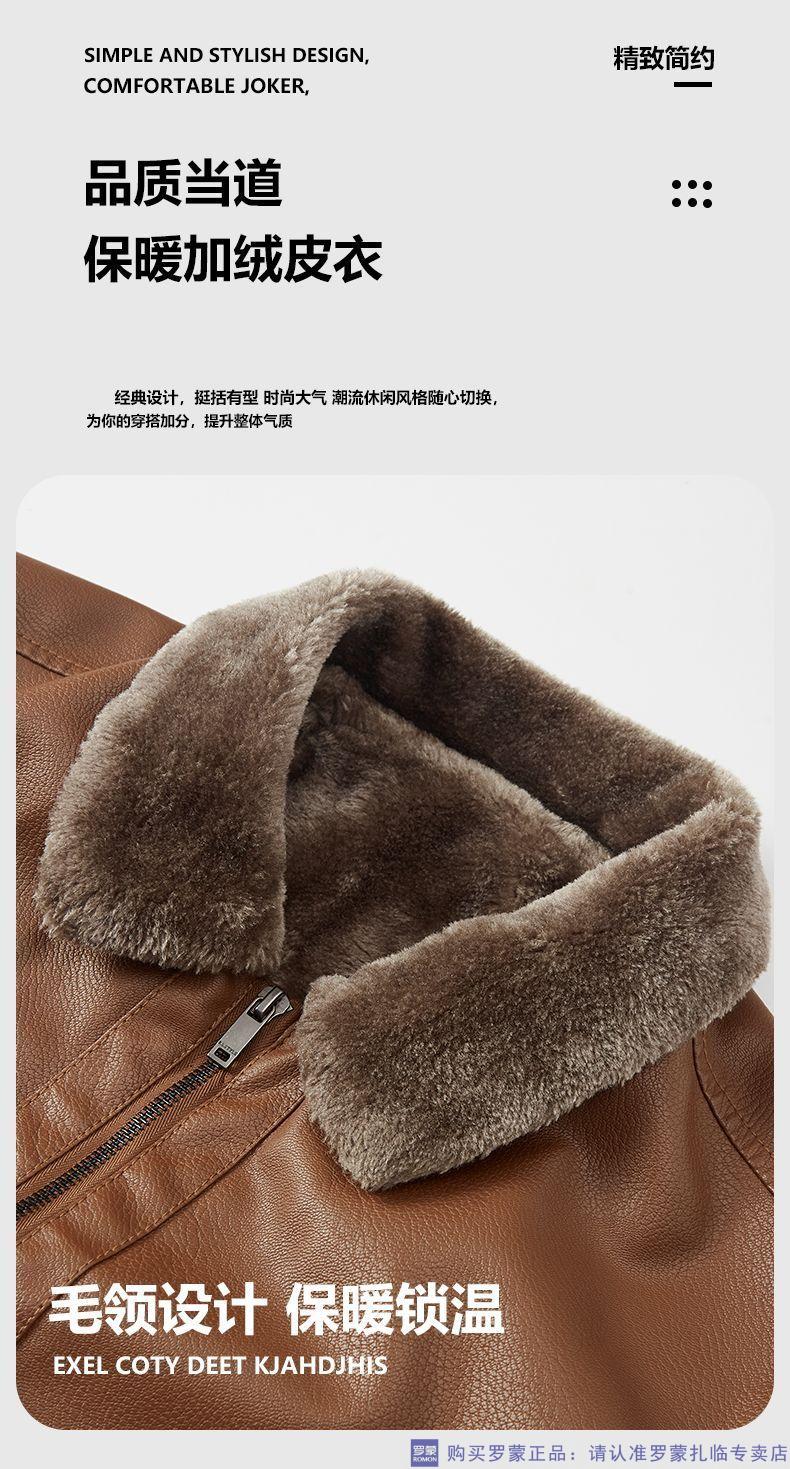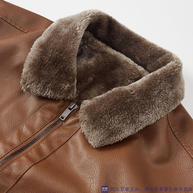 ROMON leather jacket for men in autumn and winter plus velvet and thickened warm fur collar coat, simple high-end windproof and cold-proof lapel leather jacket for men, black warm and heat-containing velvet L recommended 115-130 Jin Jin equals 0.5 kg