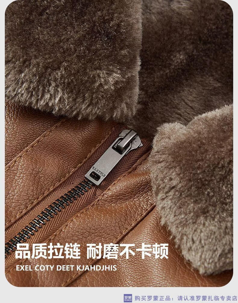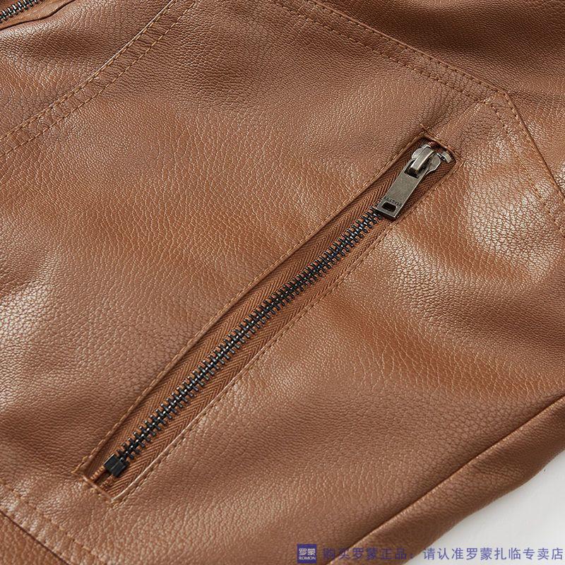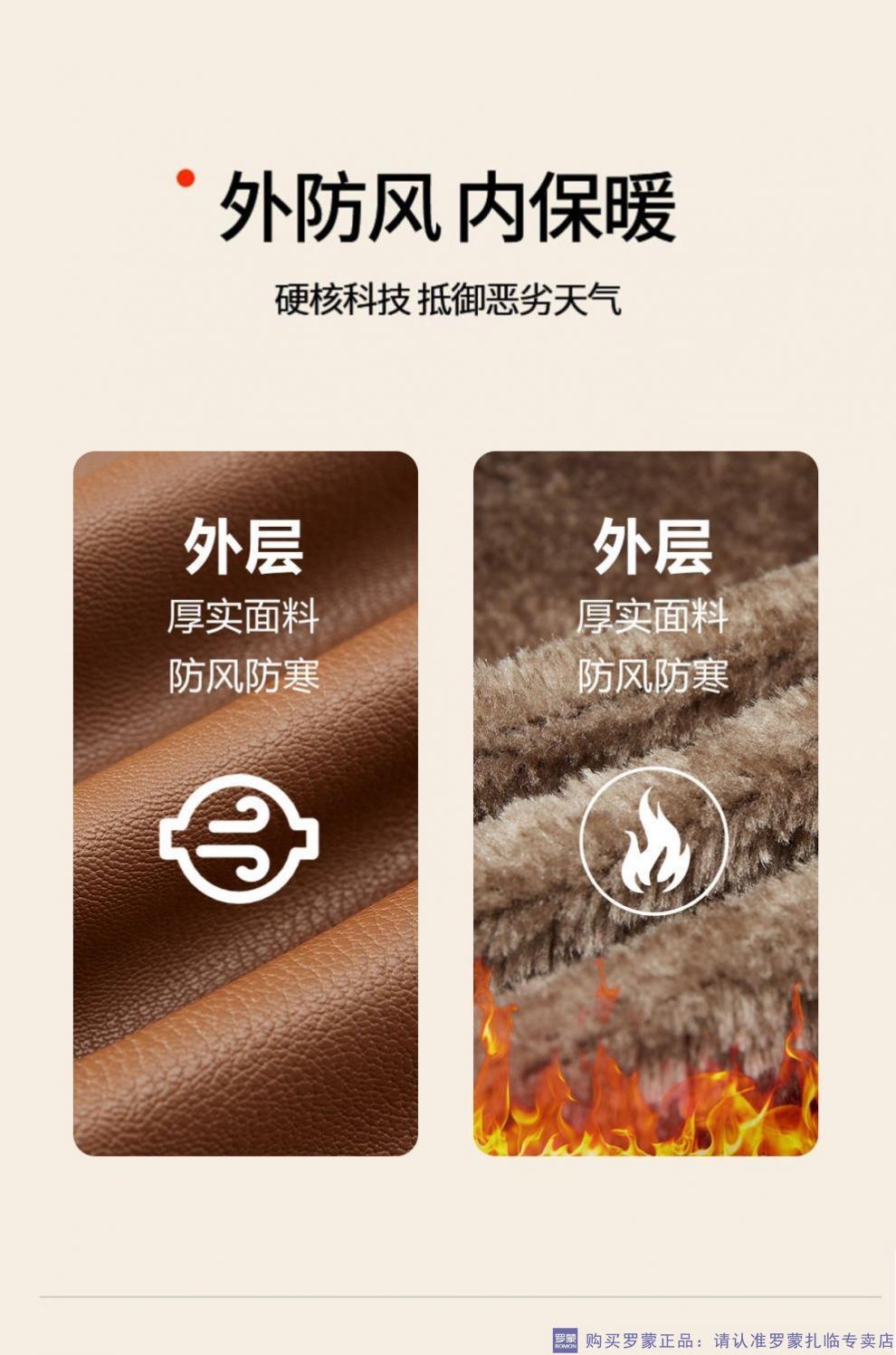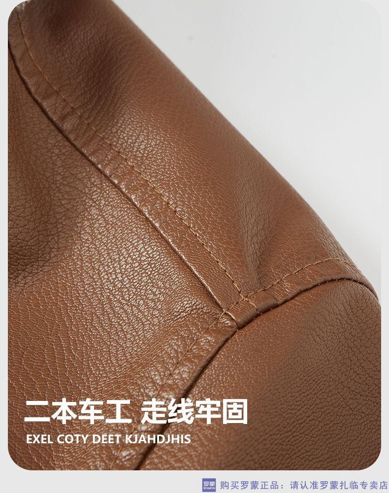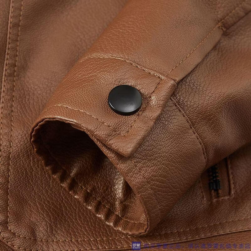 ROMON leather jacket for men in autumn and winter plus velvet and thickened warm fur collar coat, simple high-end windproof and cold-proof lapel leather jacket for men, black warm and heat-containing velvet L recommended 115-130 Jin Jin equals 0.5 kg
