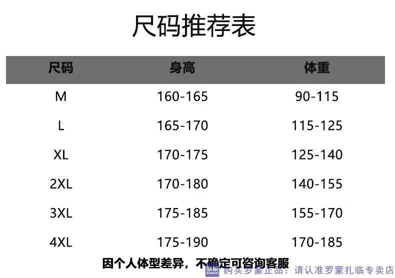 China (cm) 165 / 88-90 170 / 96-98 175 / 108-110 180 / 118-122 185 / 126-130