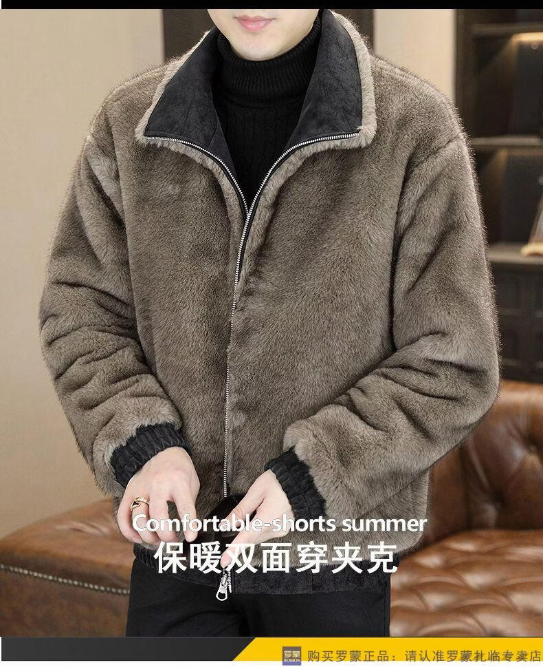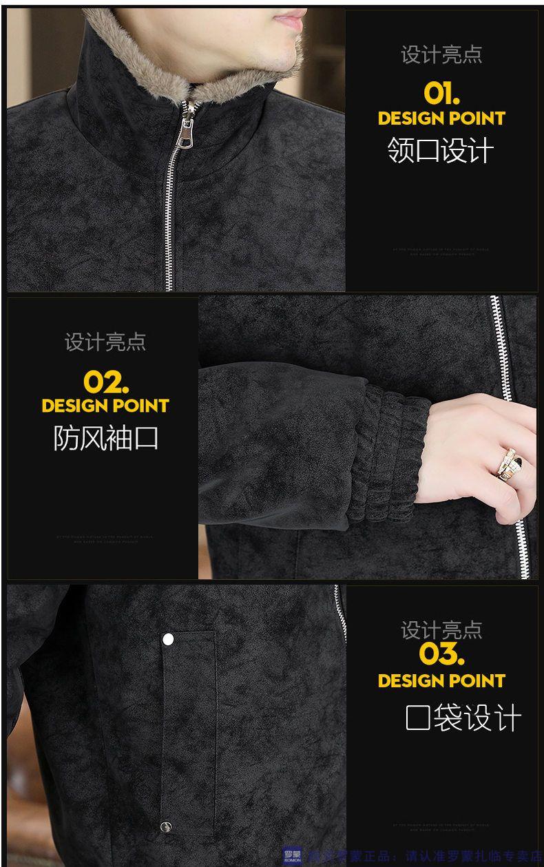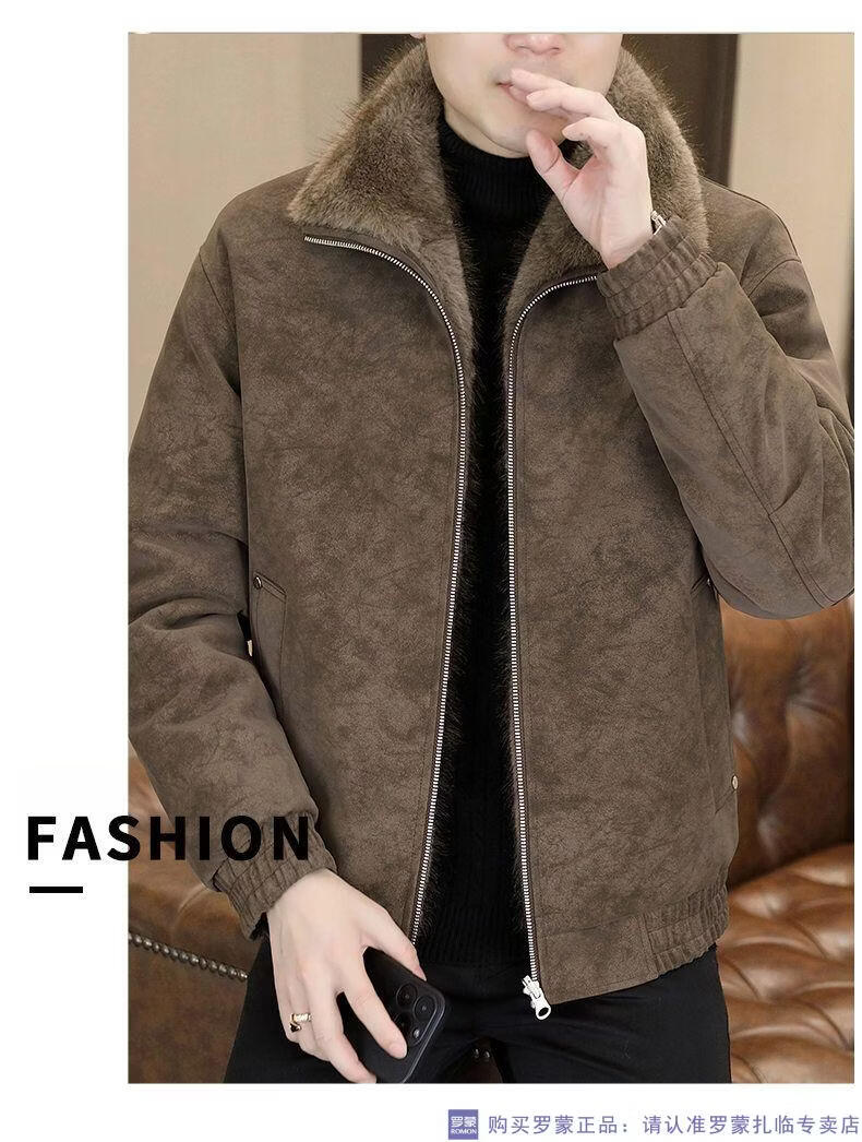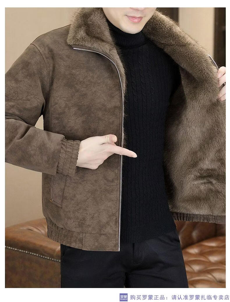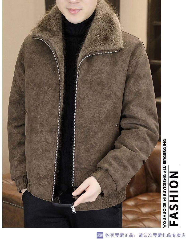 ROMON winter deerskin velvet jacket men's double-sided fur integrated velvet thickened windproof and warm leather jacket motorcycle jacket brown (velvet) double-sided thickened L (90-110Jin Jin is equal to 0.5 kg)