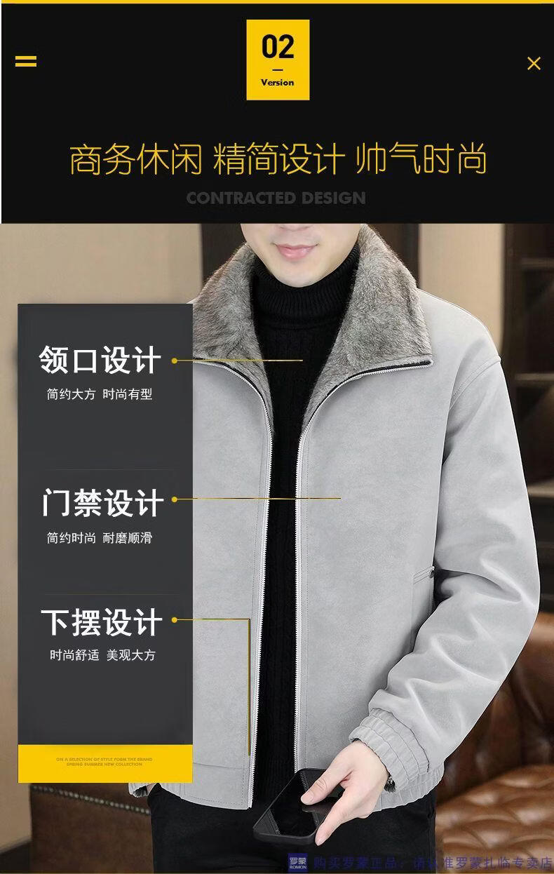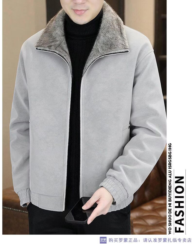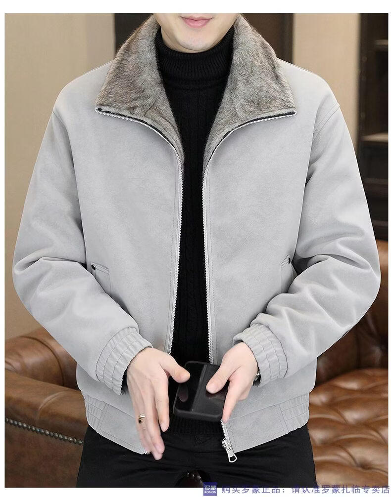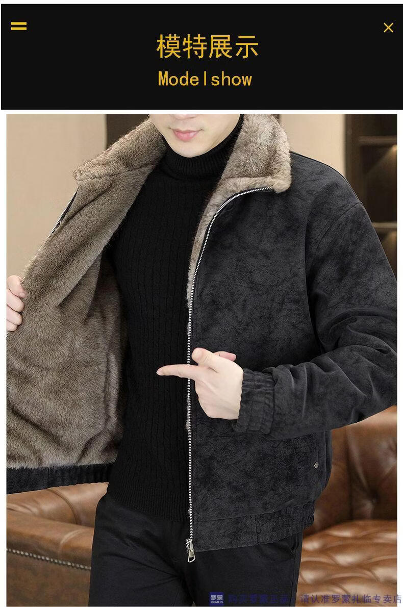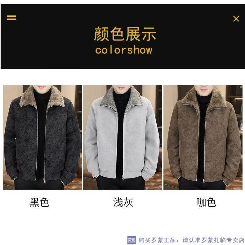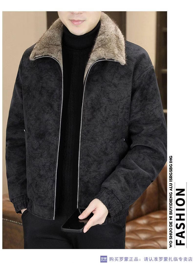 ROMON winter deerskin velvet jacket men's double-sided fur integrated velvet thickened windproof and warm leather jacket motorcycle jacket brown (velvet) double-sided thickened L (90-110Jin Jin is equal to 0.5 kg)