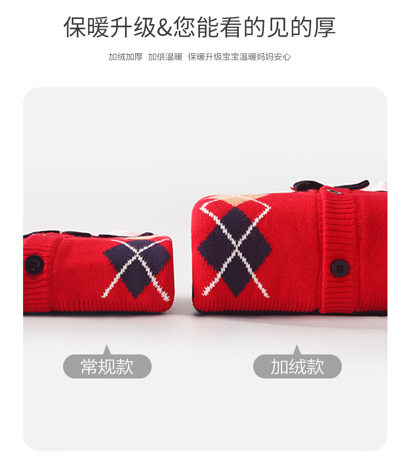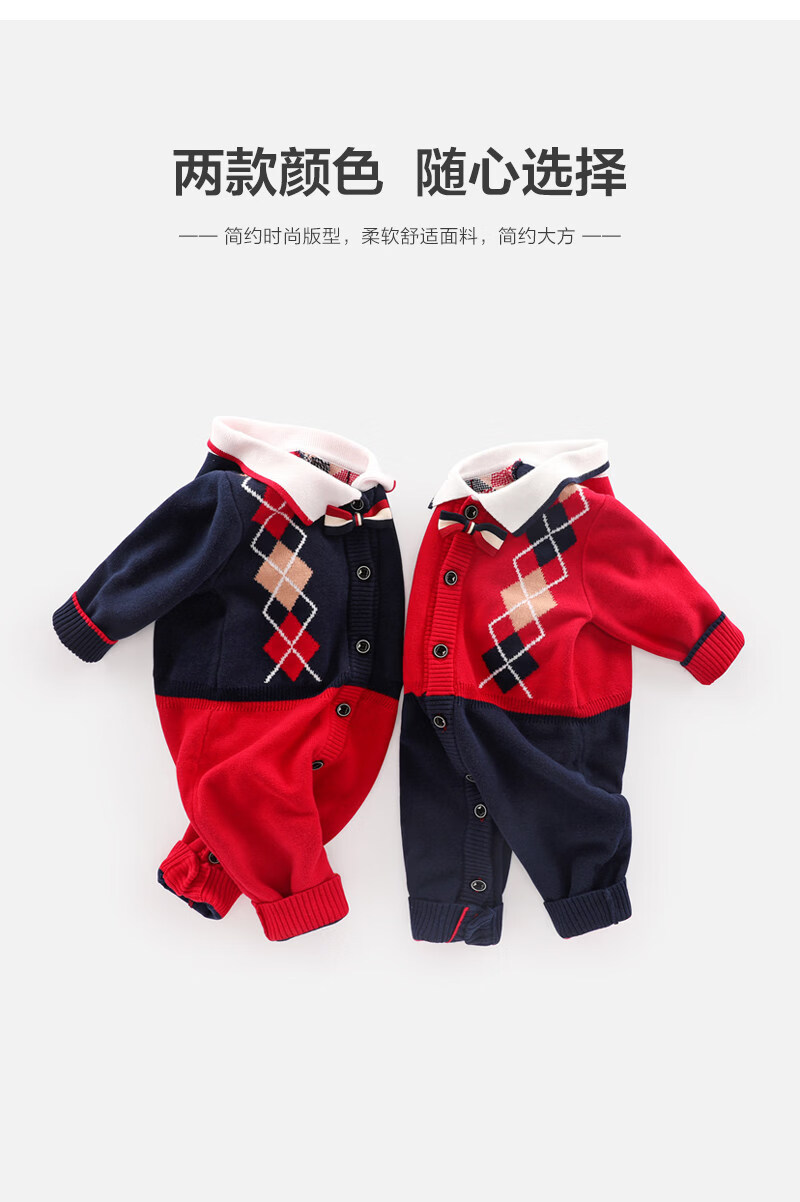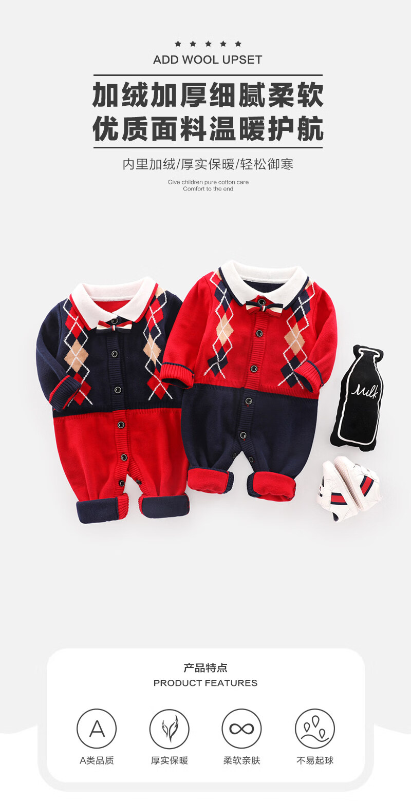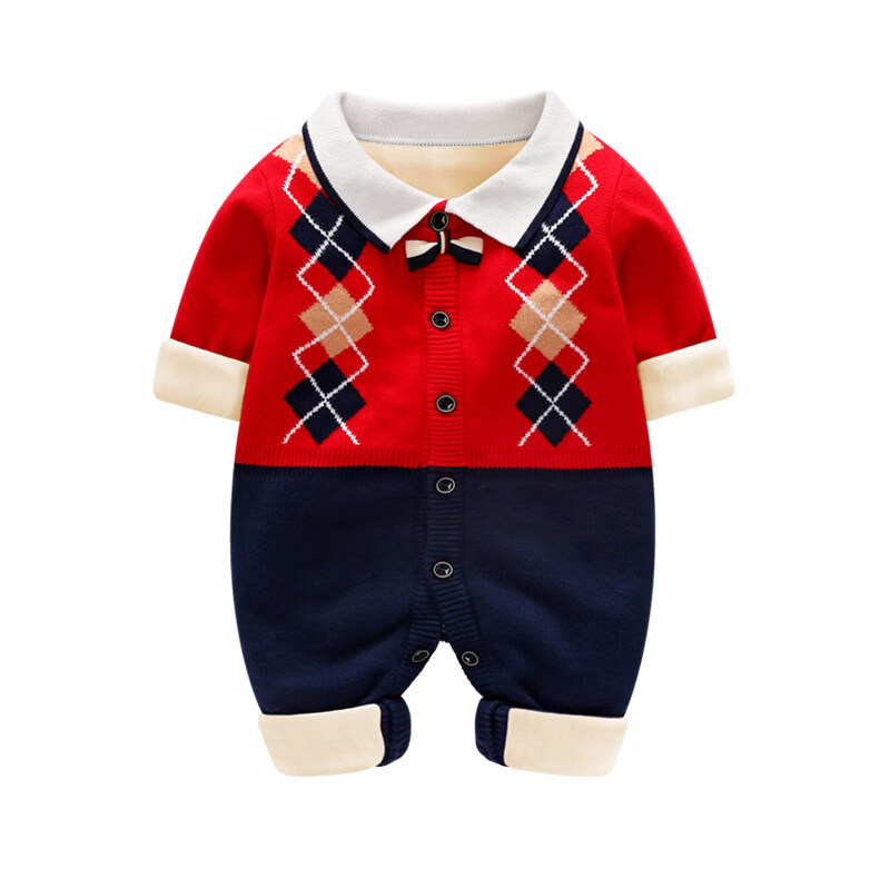 BORBOON B baby winter jumpsuit red festive one-year-old New Year's greetings suit for baby boy plus velvet thickened autumn and winter romper plus velvet 7223 hayi 66cm