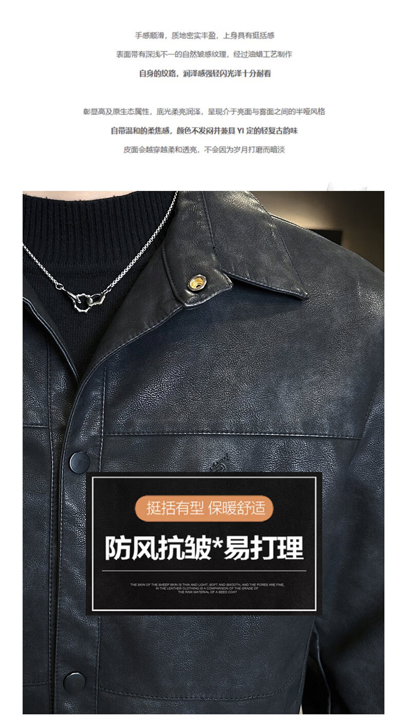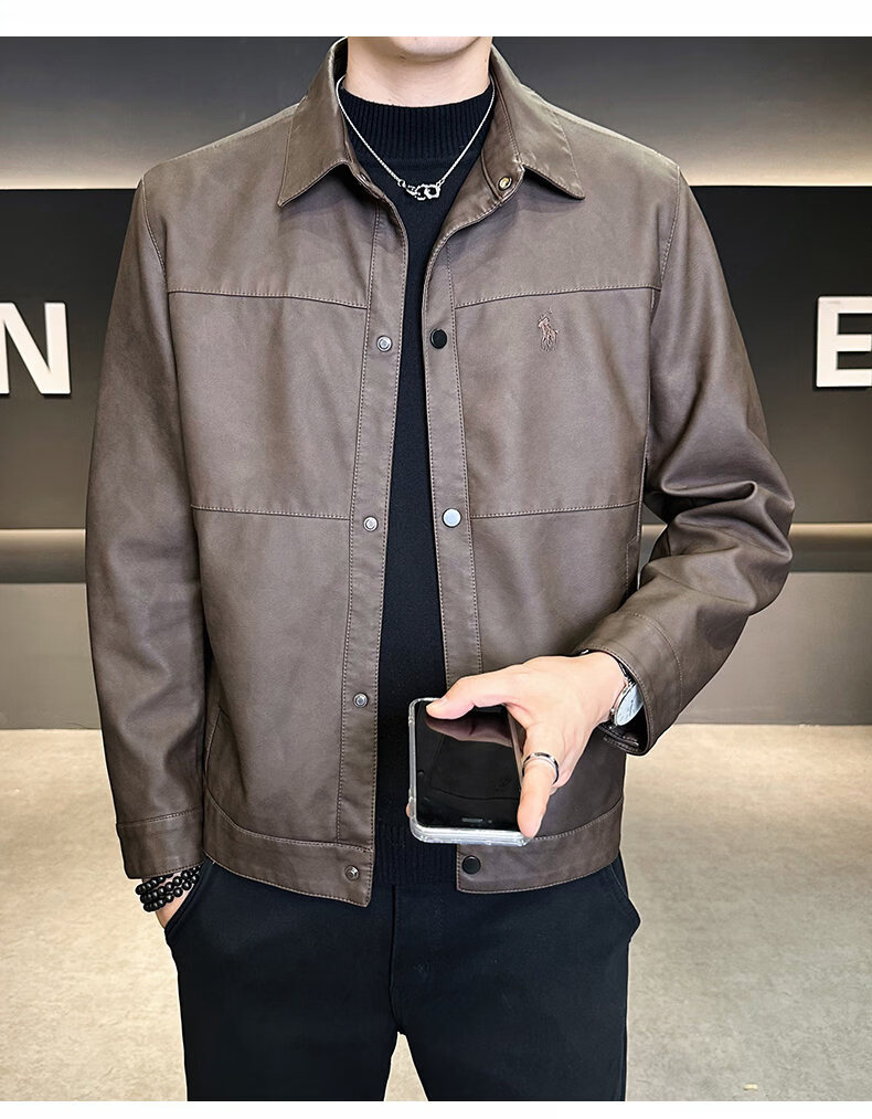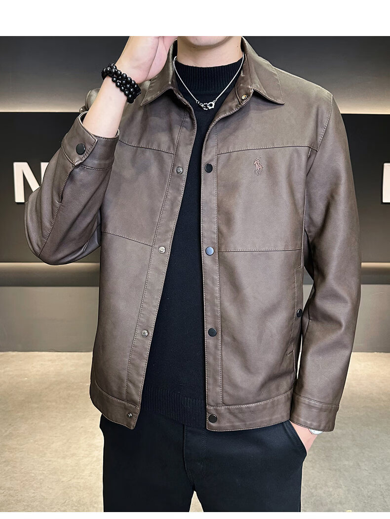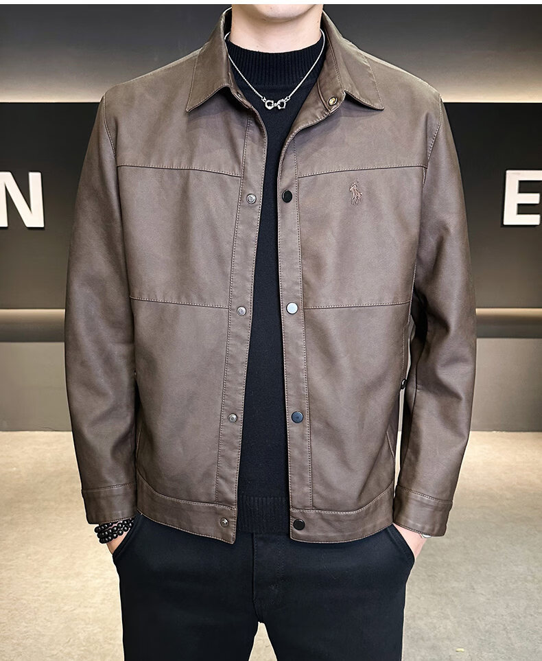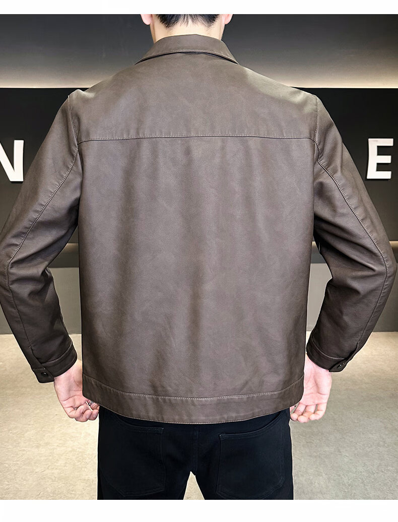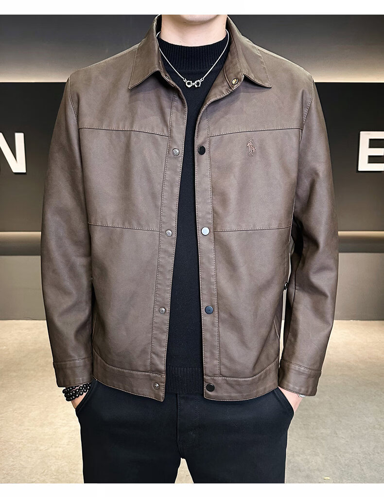 ROMON leather jacket for men in winter plus velvet to keep warm and cold-proof, light business casual outdoor functional wind workwear leather jacket for men, brown XL recommended 130-145Jin Jin equals 0.5 kg