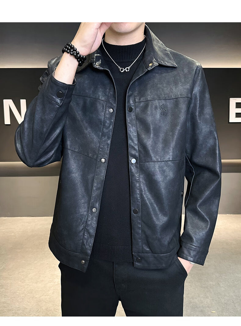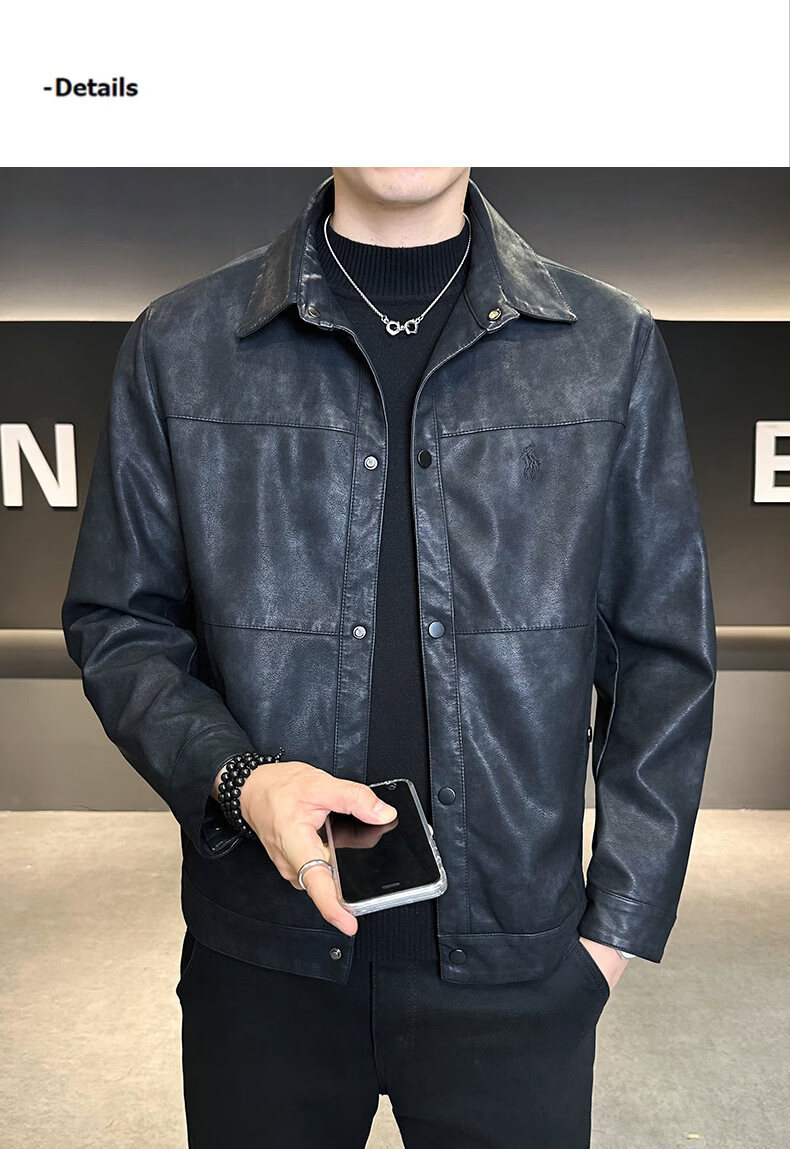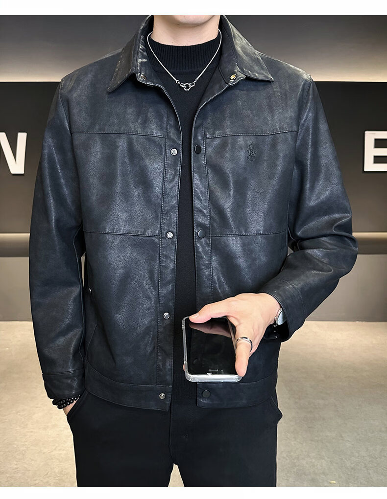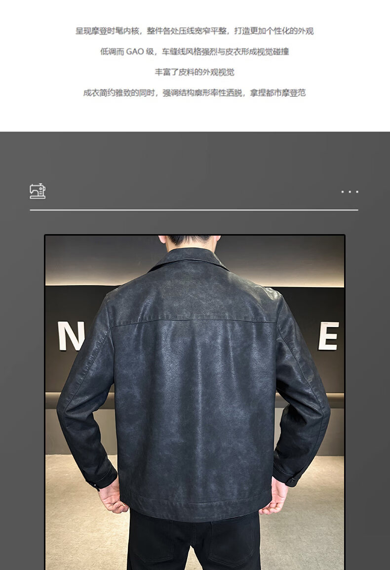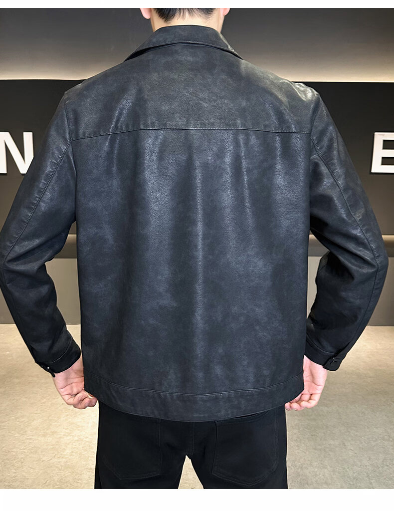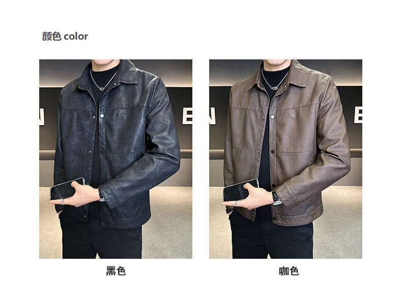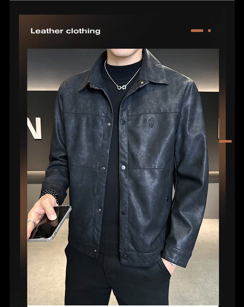 ROMON leather jacket for men in winter plus velvet to keep warm and cold-proof, light business casual outdoor functional wind workwear leather jacket for men, brown XL recommended 130-145Jin Jin equals 0.5 kg