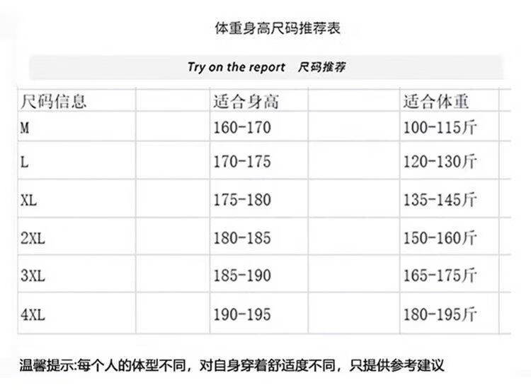 China (cm) 165 / 88-90 170 / 96-98 175 / 108-110 180 / 118-122 185 / 126-130