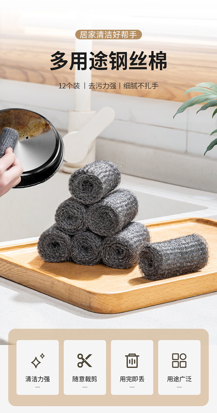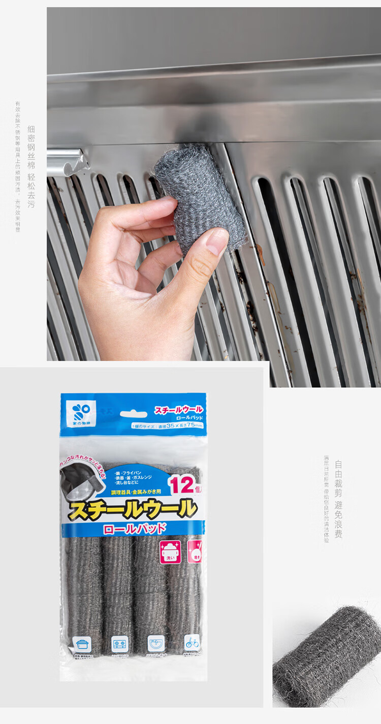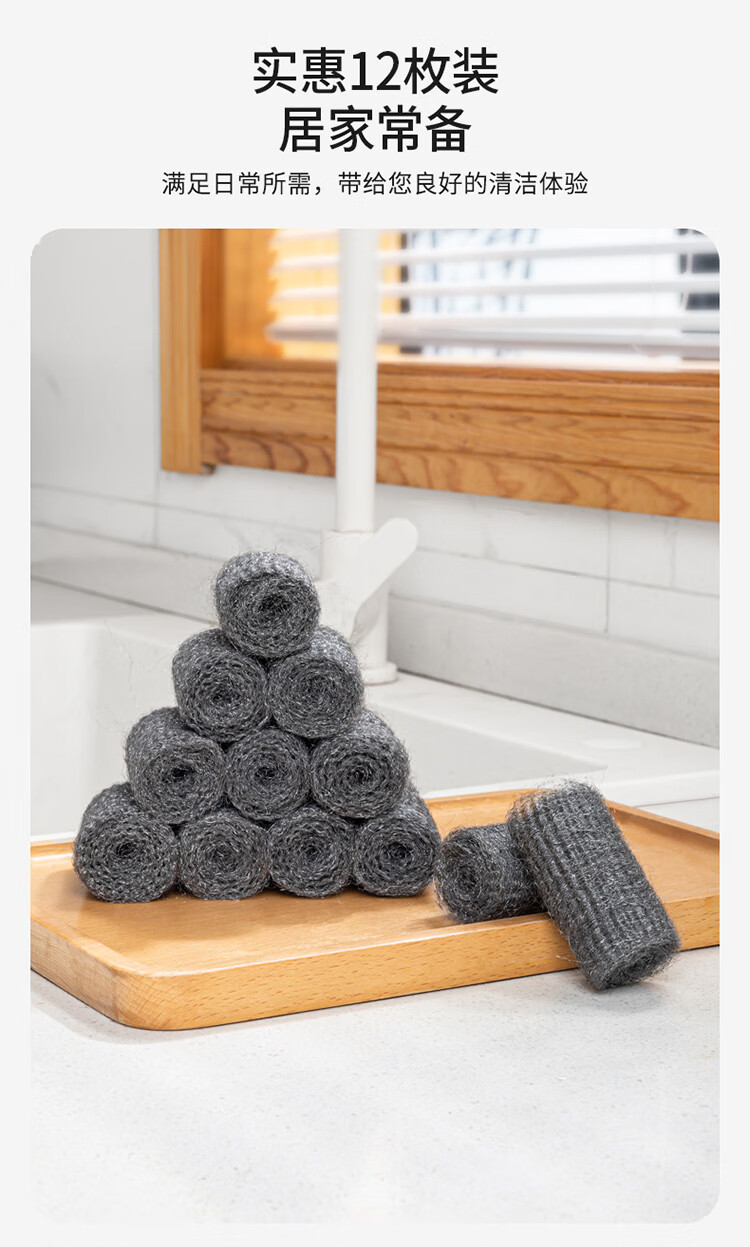 Sungsa Japanese kitchen brush stainless steel wire ultra-fine steel wool disposable pot washing bowl brush polishing cleaning ball 2 packs (12 pieces)