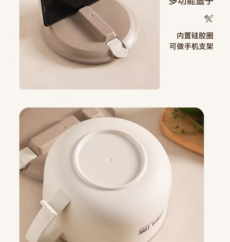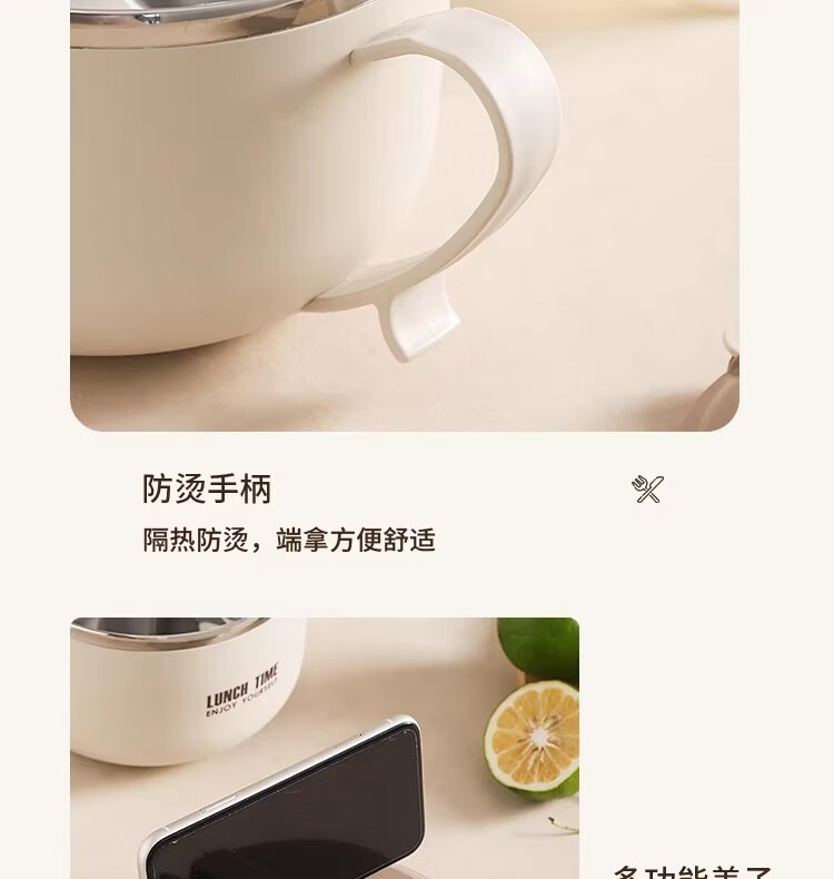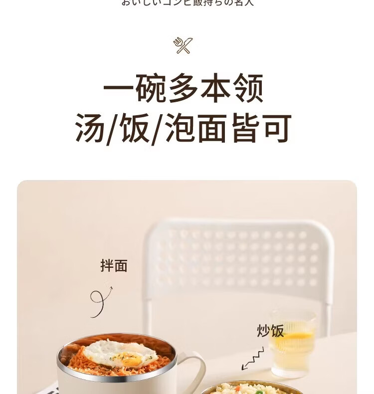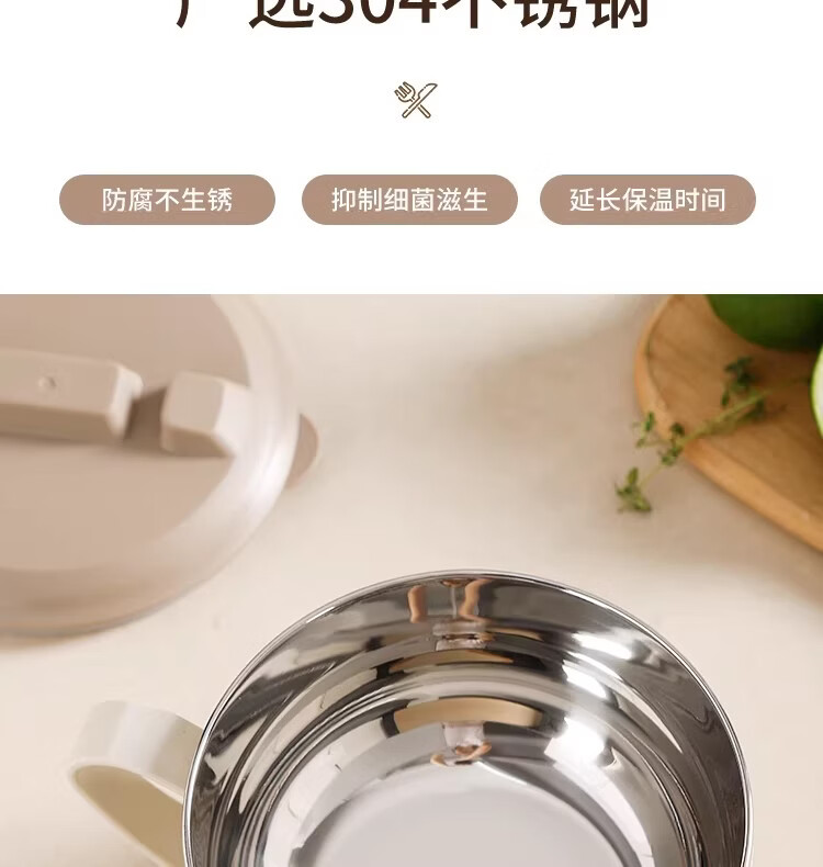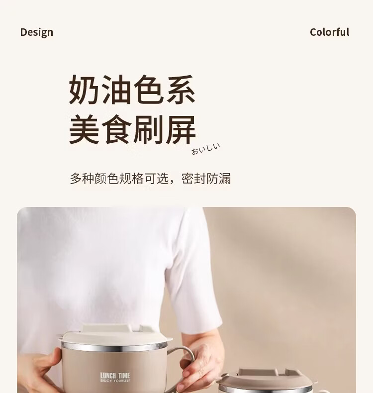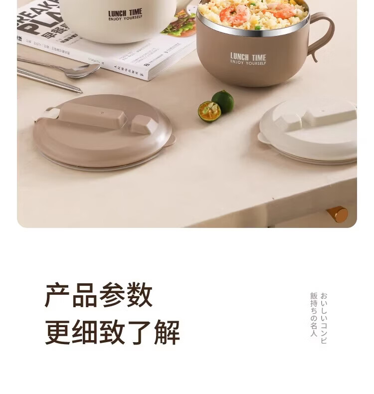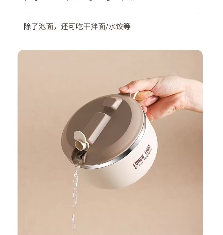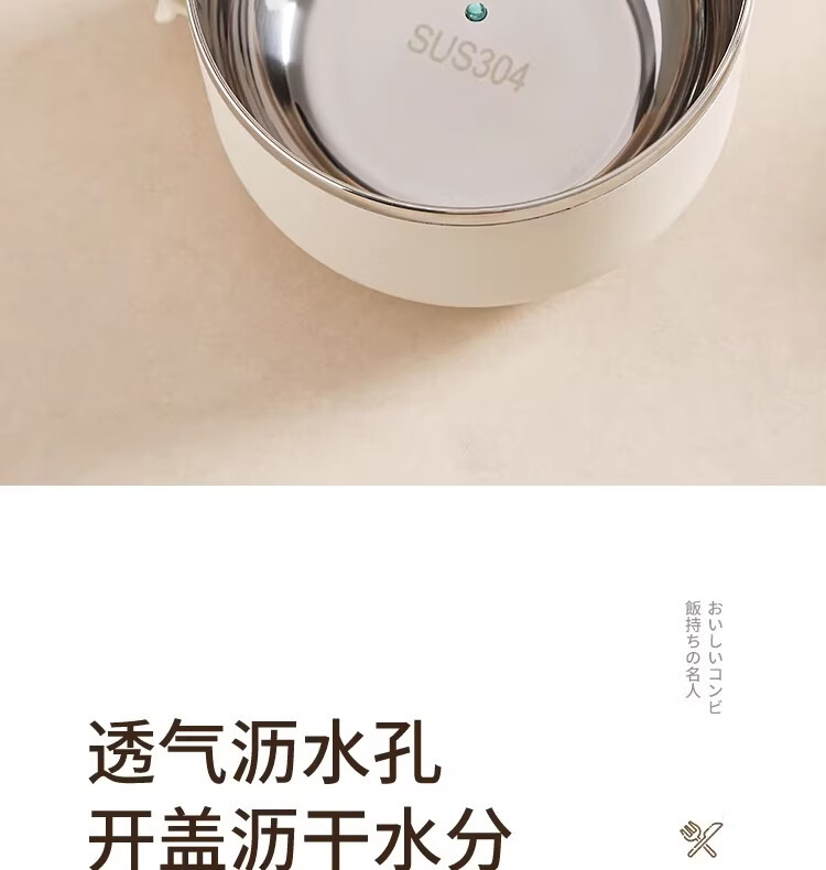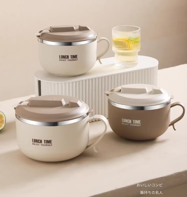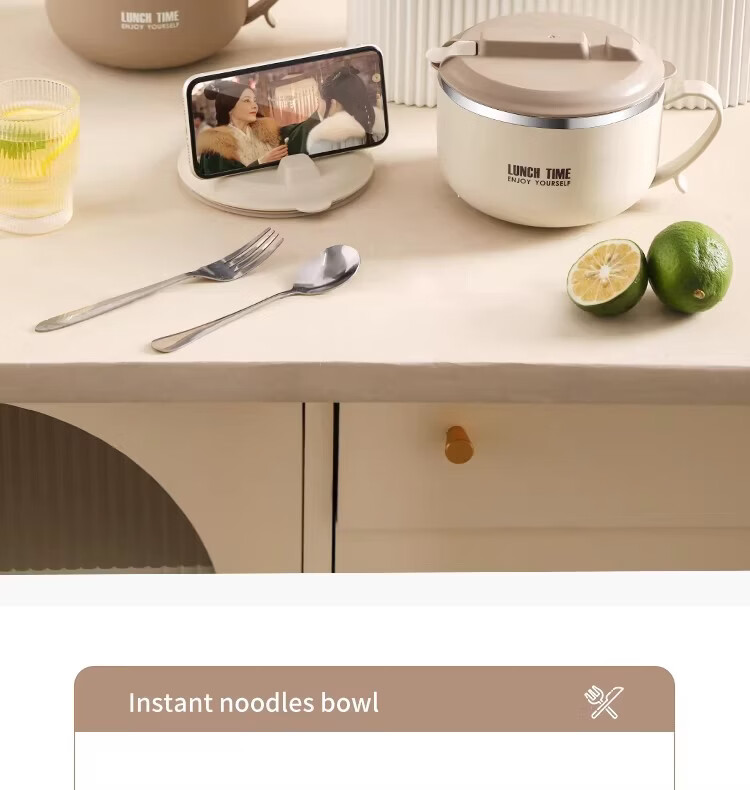 Hanxiao 304 stainless steel instant noodle bowl with lid for office workers and student dormitories for home use instant noodles drained heat insulation anti-scalding small drained instant noodles cup (off-white)