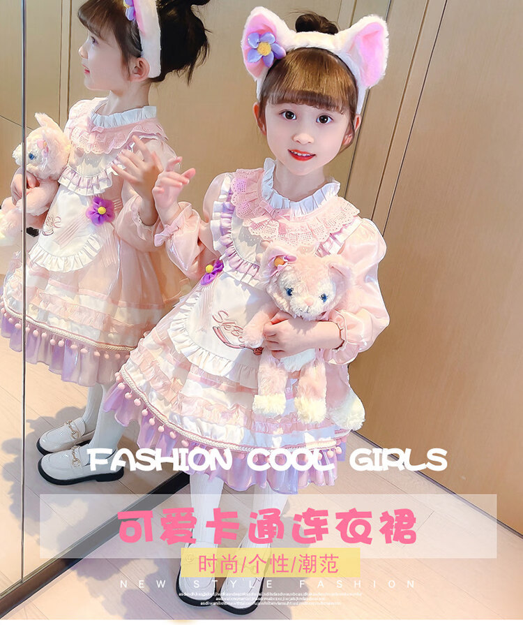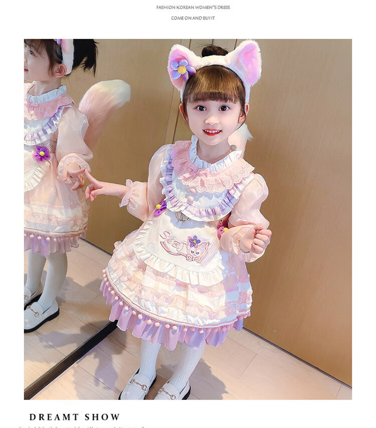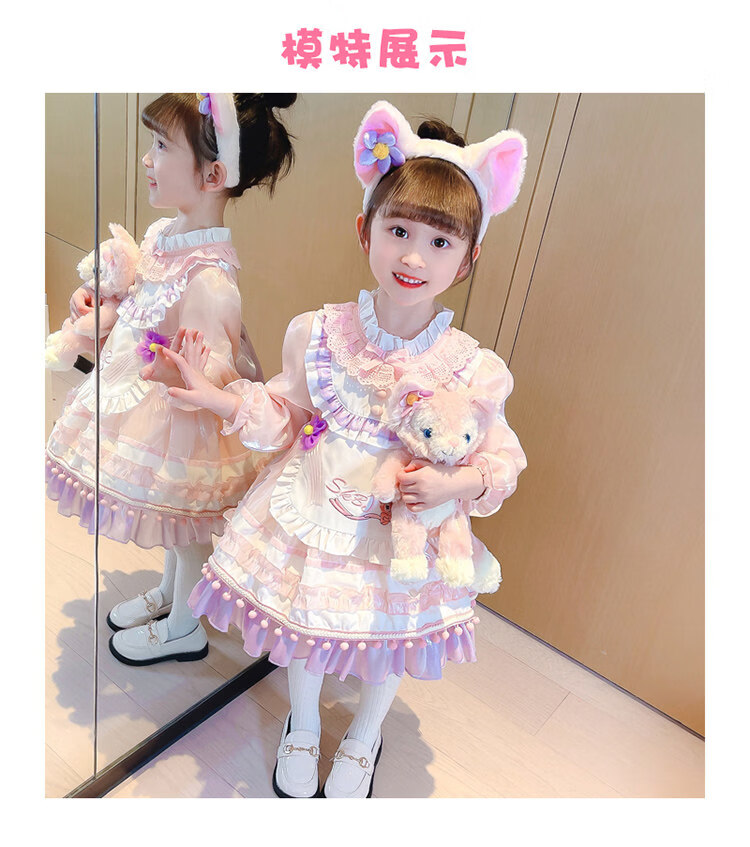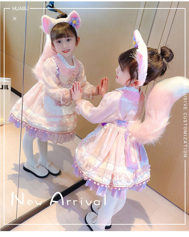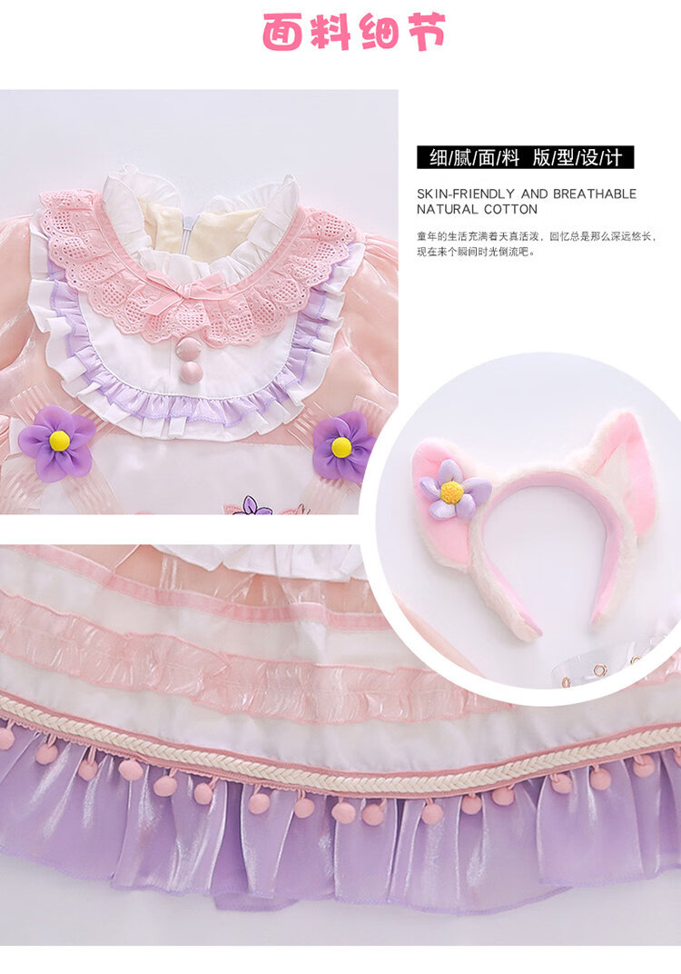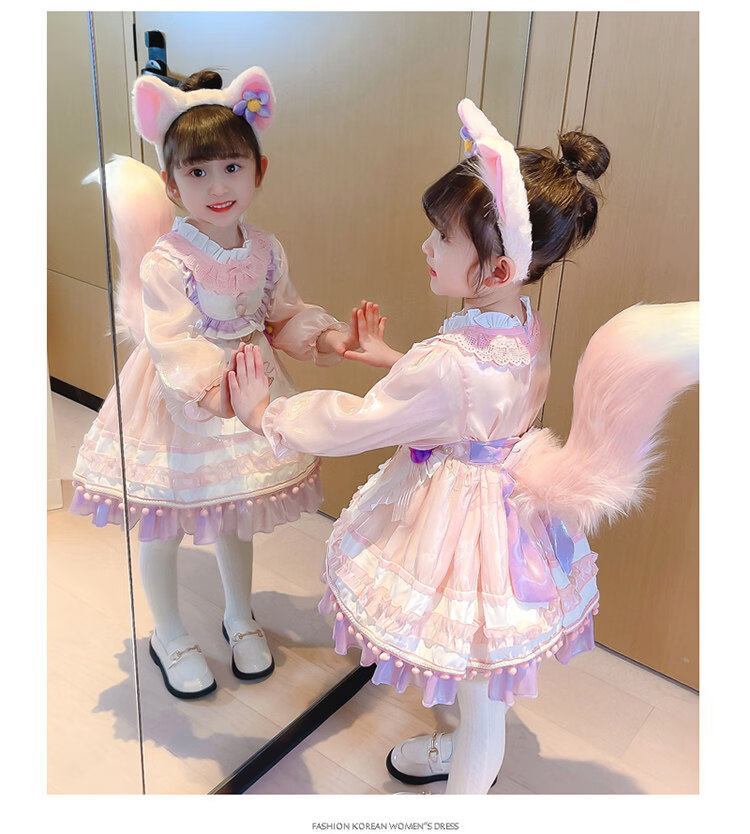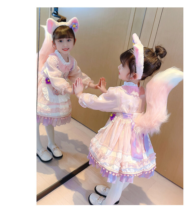 G.duck baby Stella Bunny dress autumn and winter with tail Lolita children's Disney Lina Belle princess dress Lina Belle skirt + tiara tail welfare + pannier 140 cm