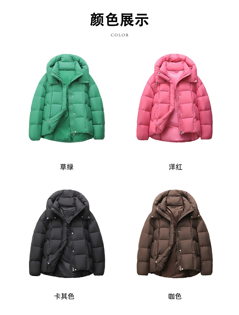 Yalu 2025 New Down Jacket Women's Winter Removable Hat Warmth Highly Filled Down Fashionable Windproof Commuting Trendy Color Thick Jacket Grass Green S Recommended 95-115Jin Jin equals 0.5kg
