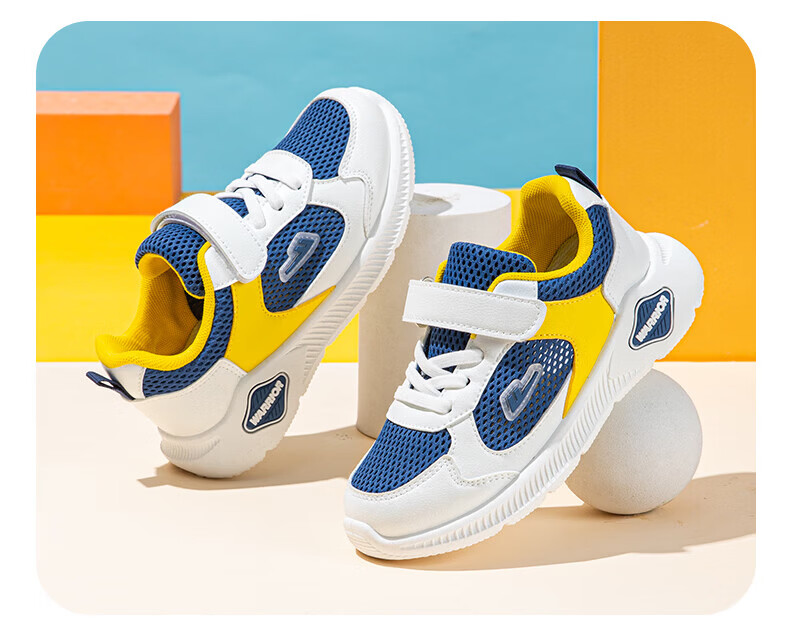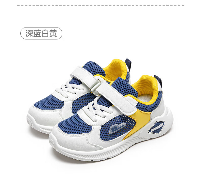Pull back children's shoes children's sports shoes 2026 summer new boys' mesh breathable shoes campus lightweight soft-soled casual shoes dark blue white yellow -2144 28