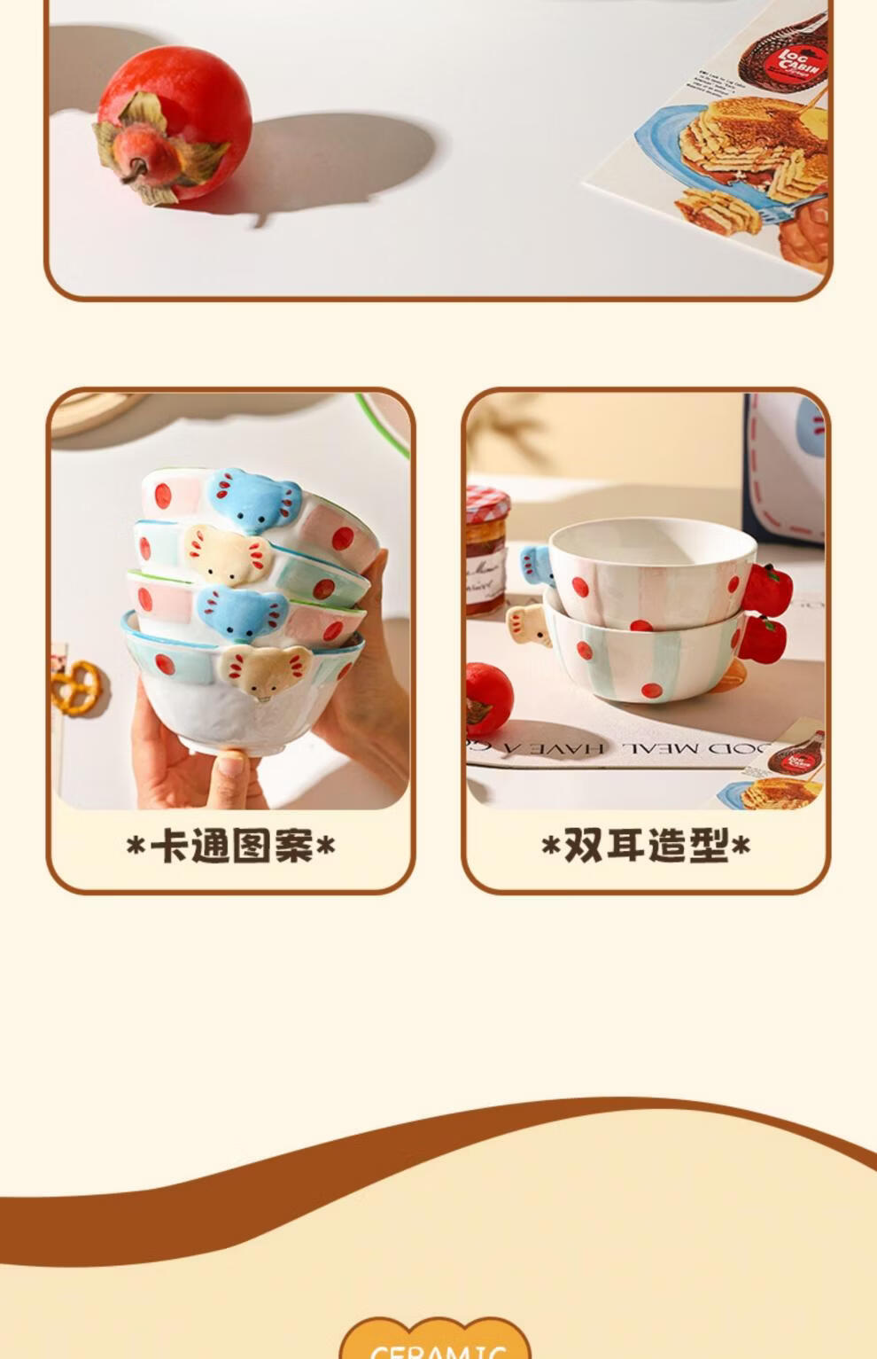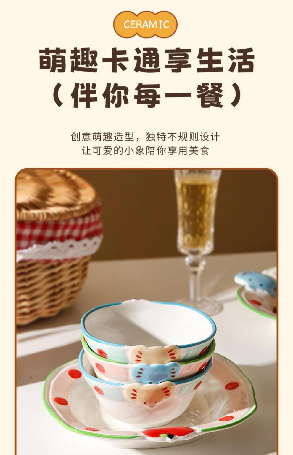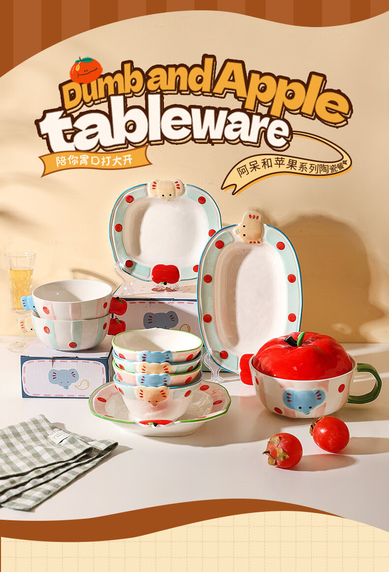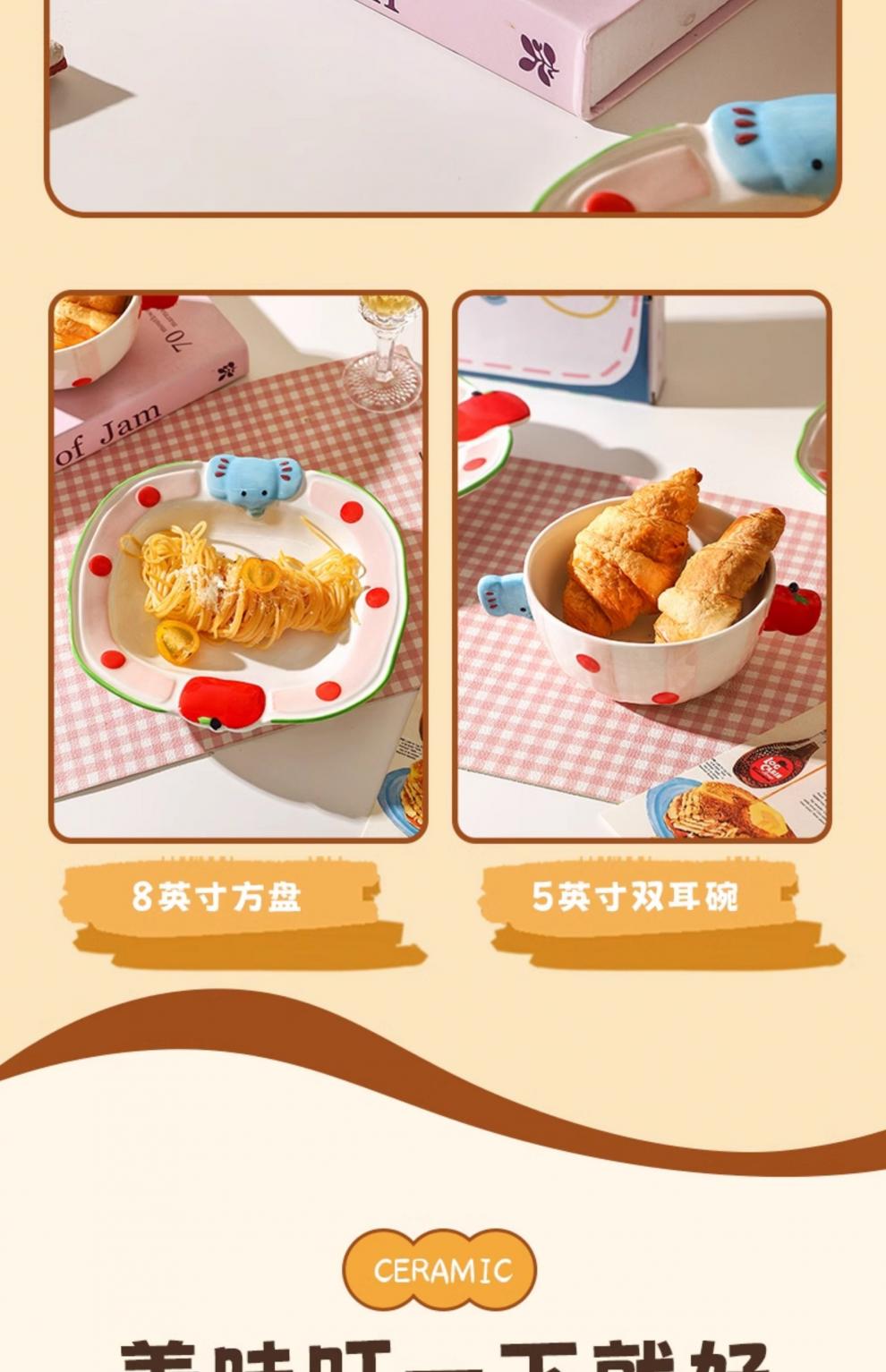 Sheli Christmas gift ceramic rice bowl household high-value tableware with lid instant noodle bowl yogurt bowl dish plate cartoon ten-piece set A (independent small color box) If you need a gift box, please contact customer service for 1 piece