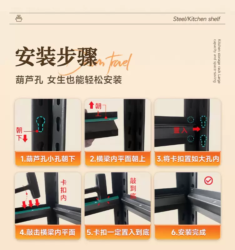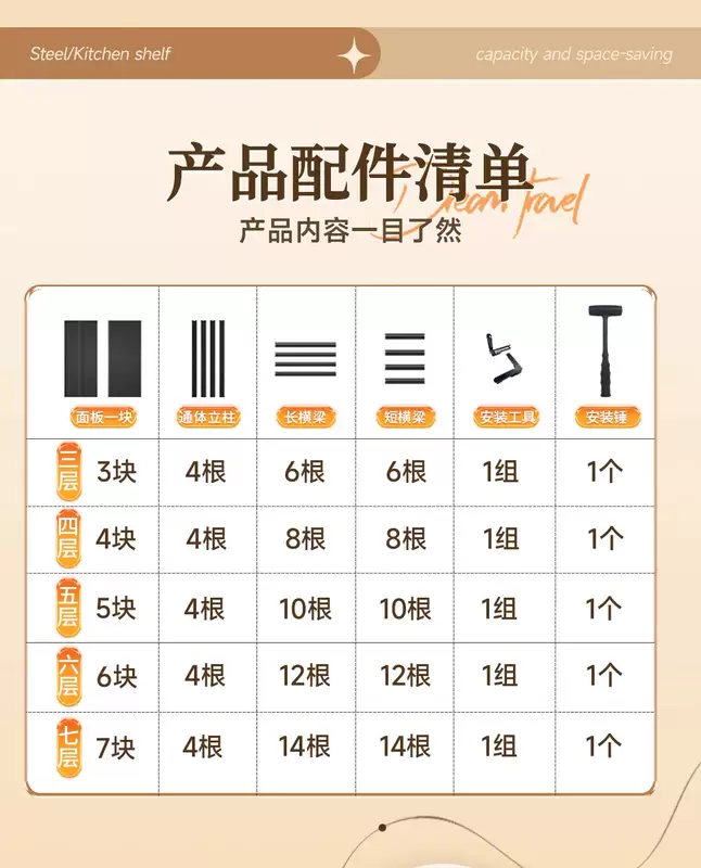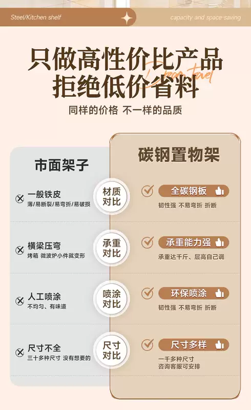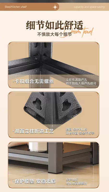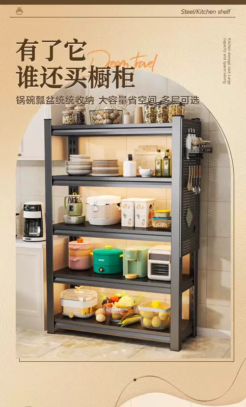 Yusenyi kitchen floor-standing storage rack household pot rack oven storage rack microwave oven multi-layer storage rack multi-function (black) four layers 160cm high length 150 width 50cm