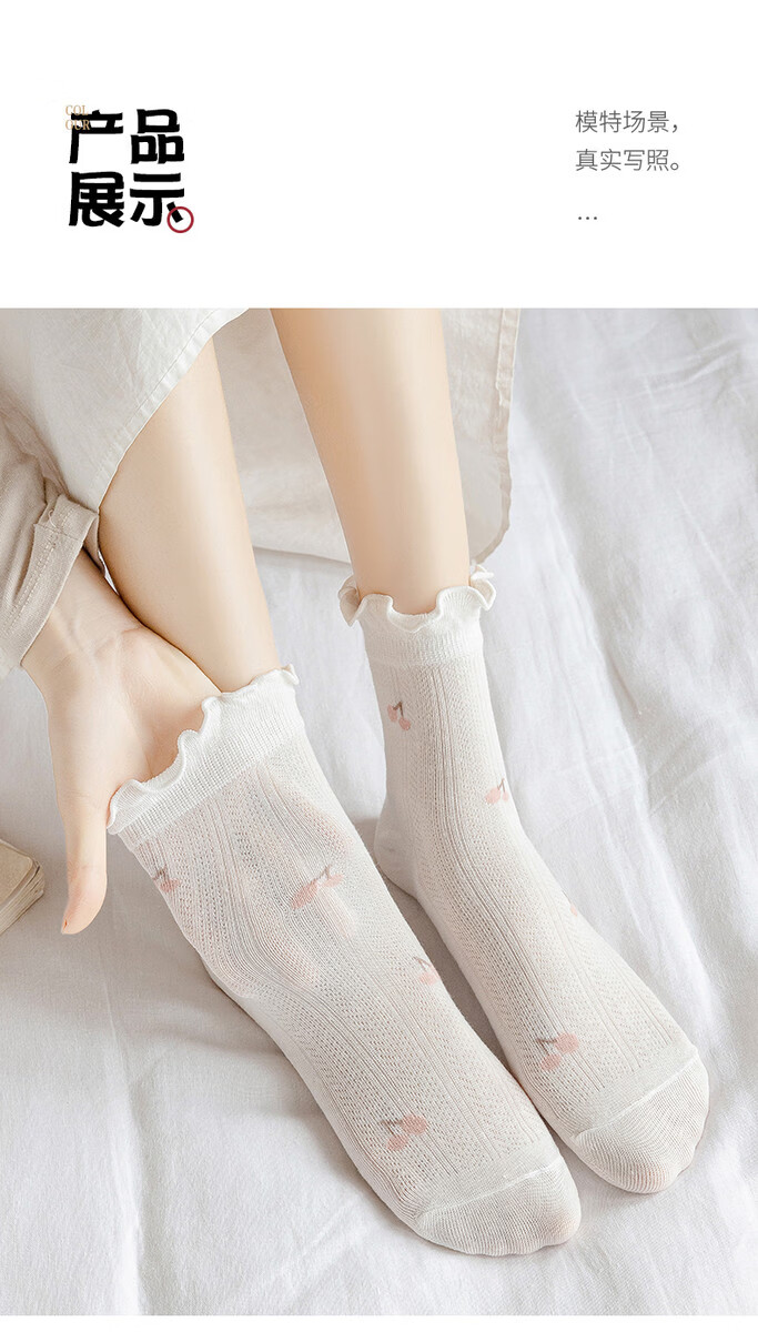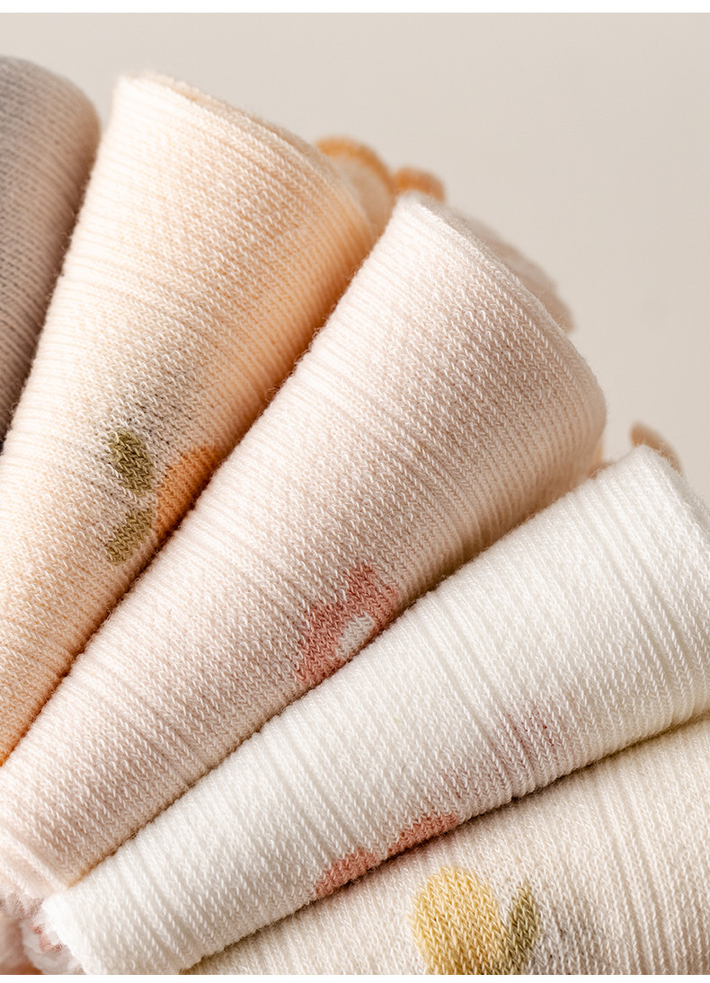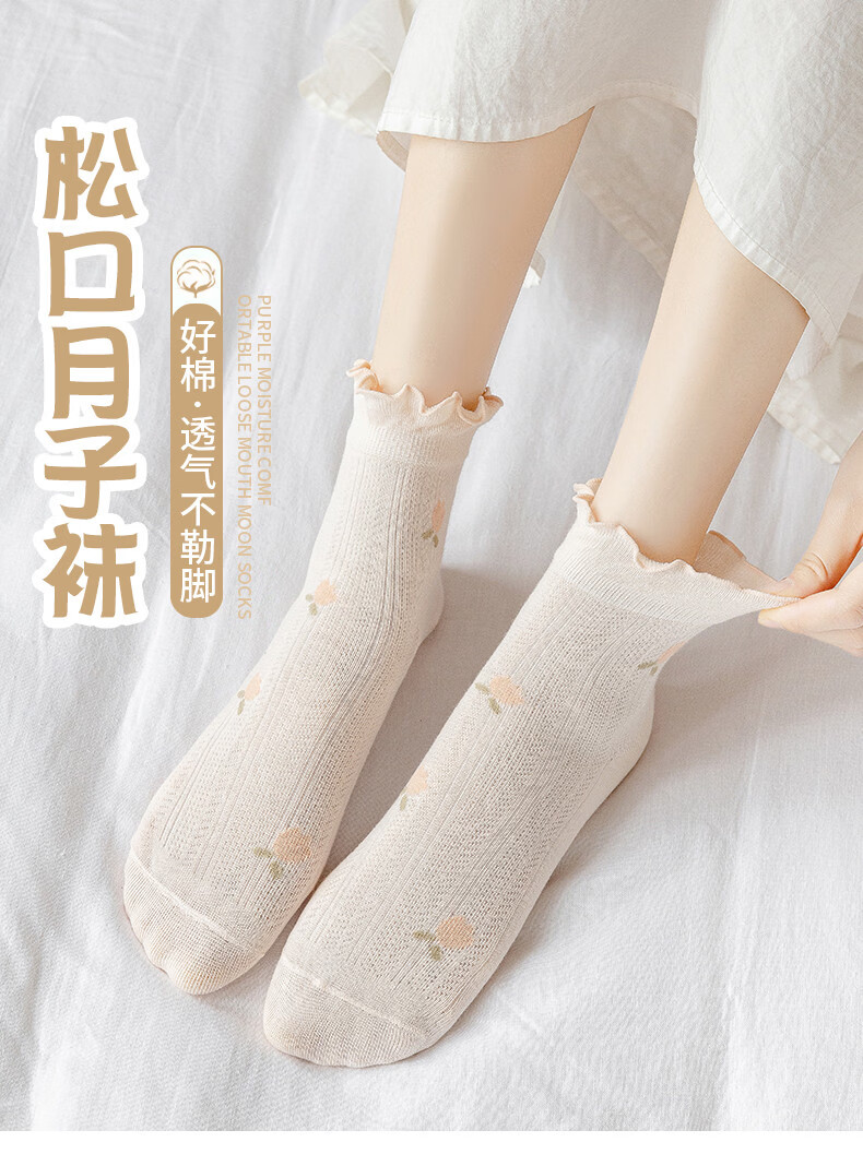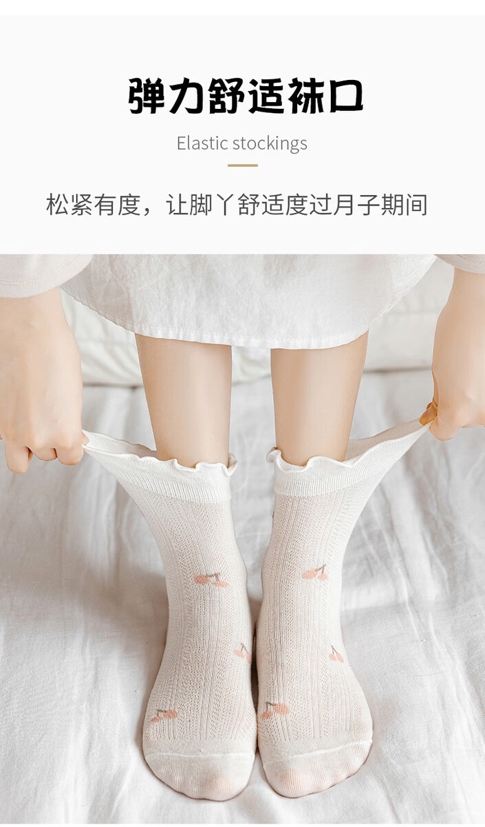 Pure cotton maternal confinement socks, postpartum spring and summer style maternity socks, loose mouth and non-constricting feet, long boneless sleep socks, four-season regular lotus leaf cherry socks, 5 pairs. One size fits all, skin-friendly pure cotton, loose mouth and non-constricting feet.
