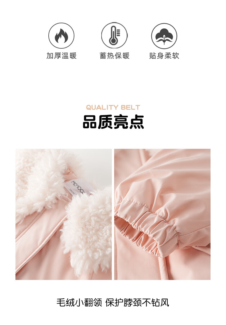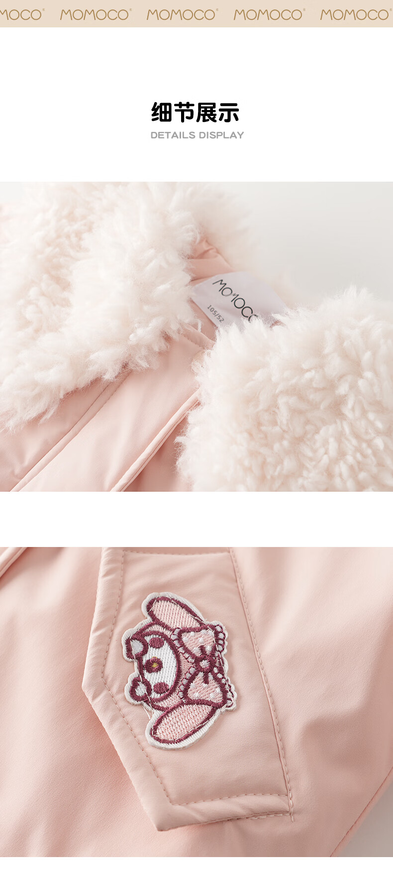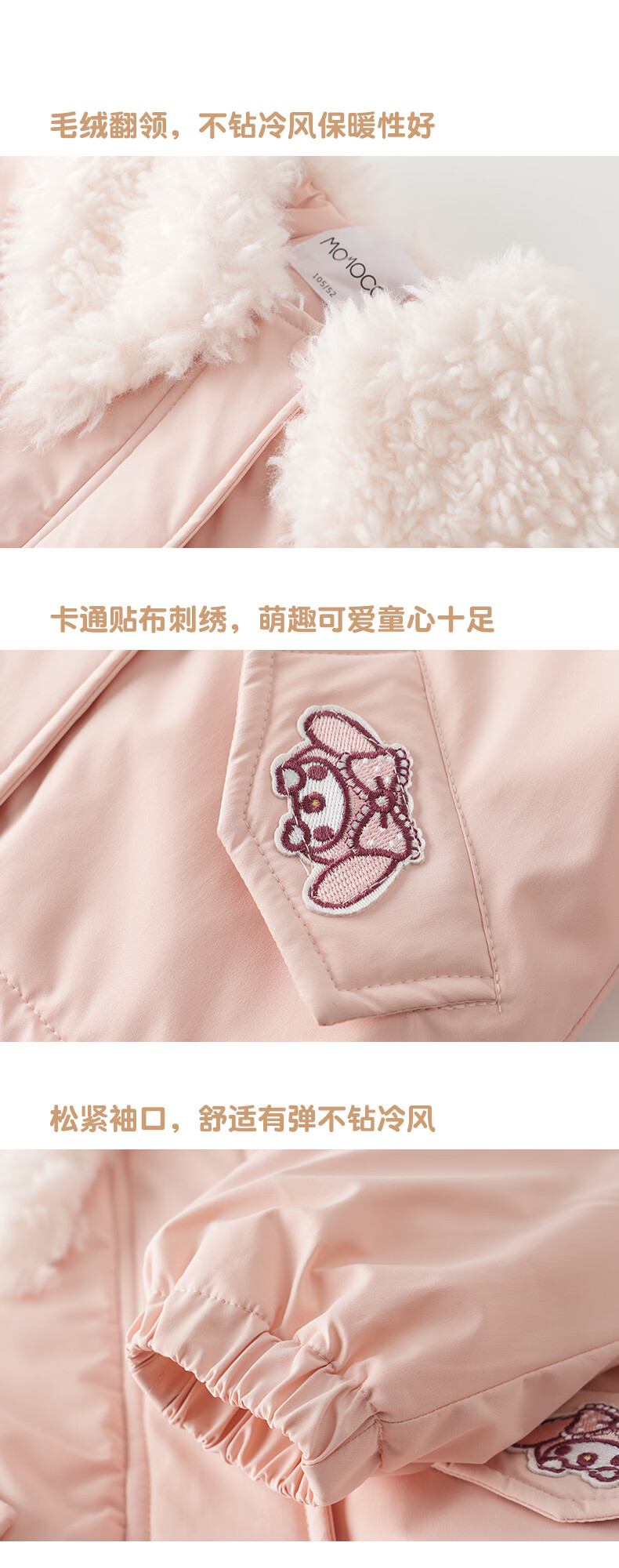 Mamie Maka (MOMOCO) children's clothing girls' jacket 2025 winter style medium and large children's fashionable fur collar jacket pink 140