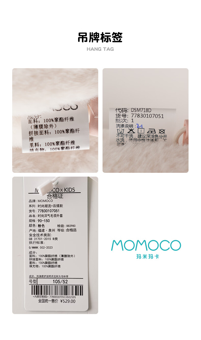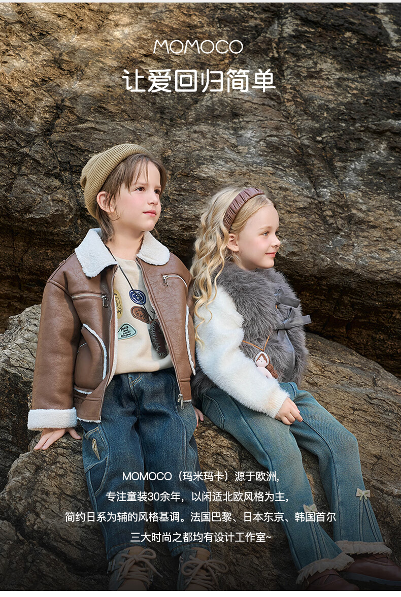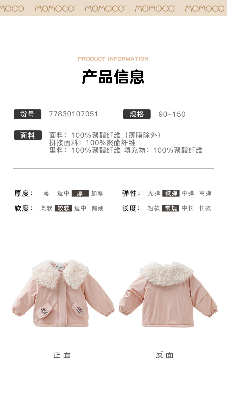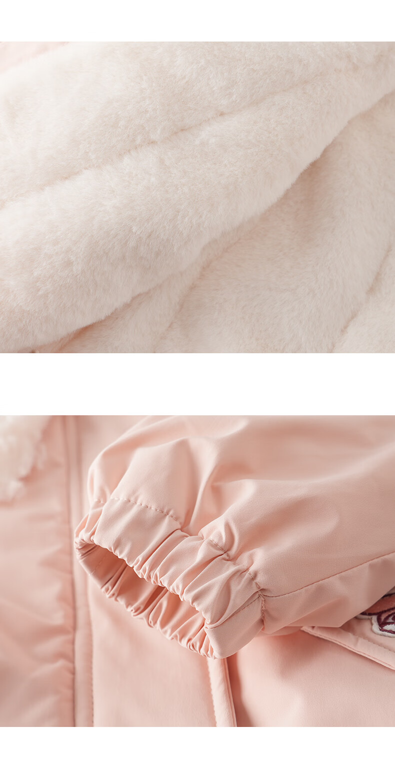 Mamie Maka (MOMOCO) children's clothing girls' jacket 2025 winter style medium and large children's fashionable fur collar jacket pink 140