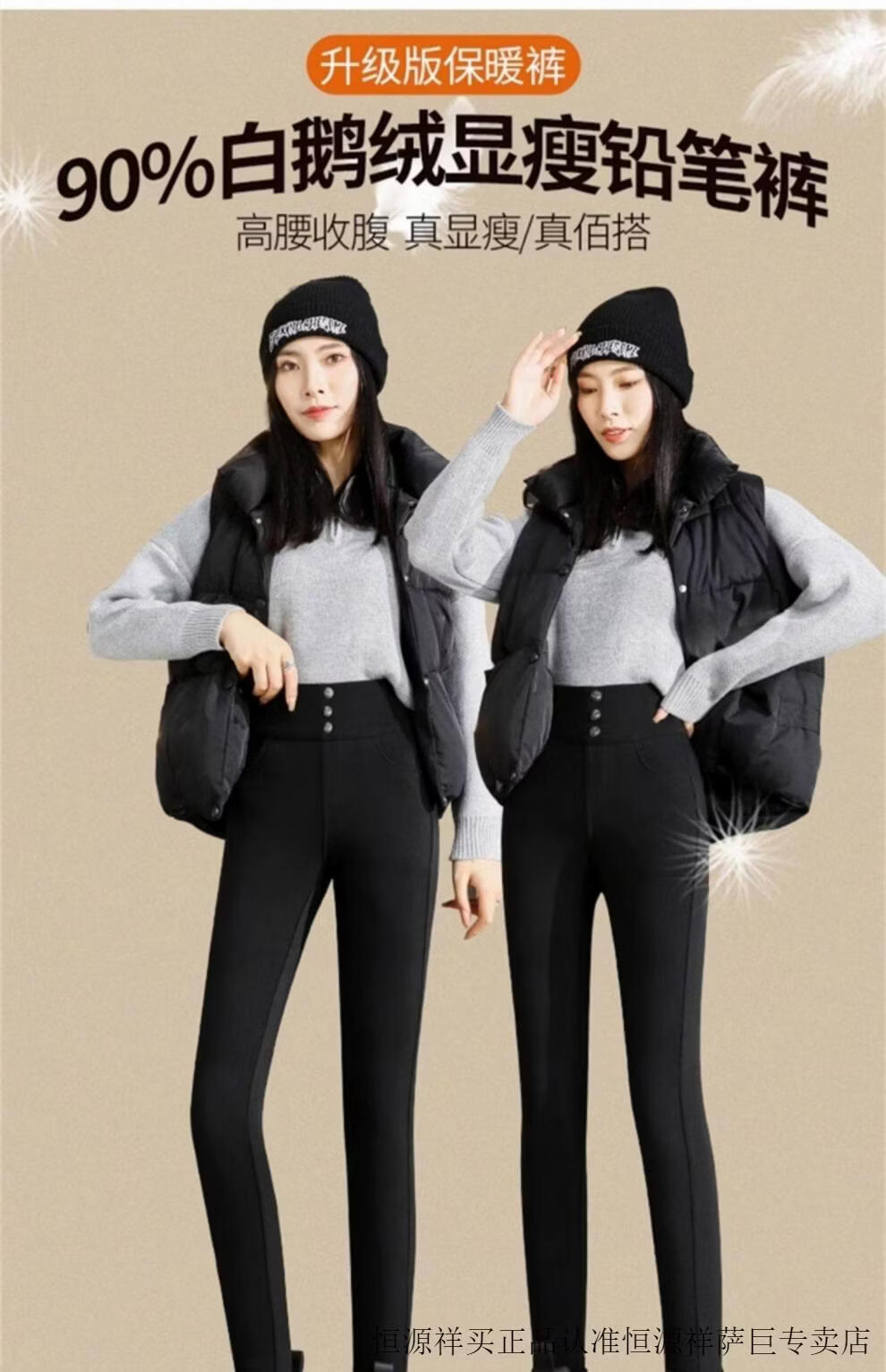 Hengyuanxiang Goose Down Down Pants Women's Outerwear Extra Long Pants Tall 2025 New Winter Northeast Warm Super Thickened Cotton Pants Black Regular (White Goose Down) 27 96-105Jin Jin is equal to 0.5 kg