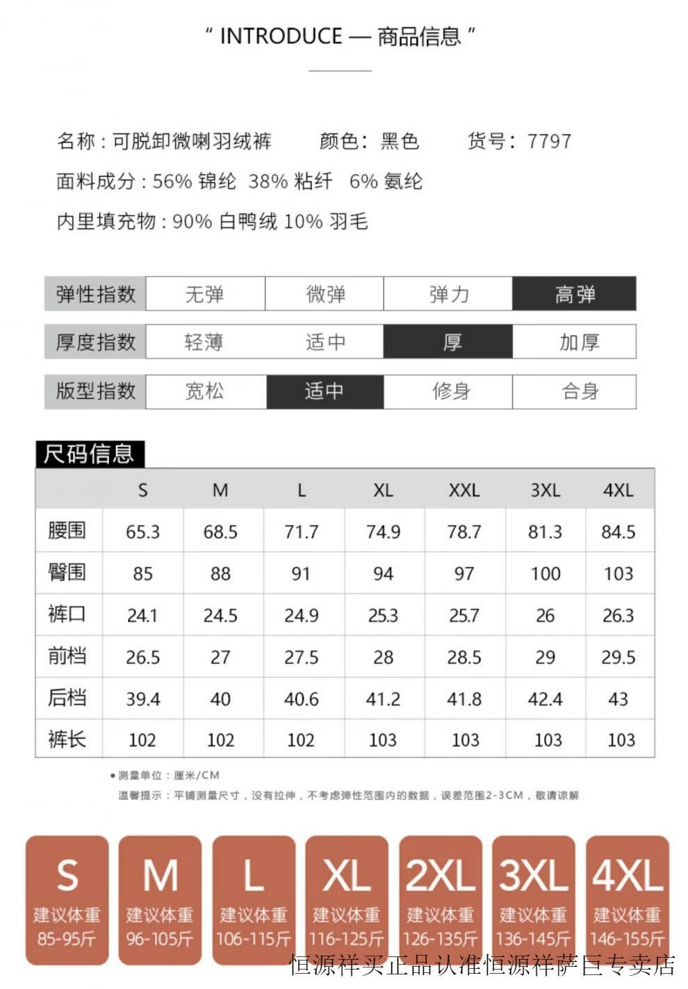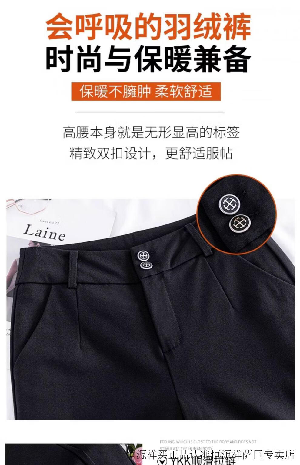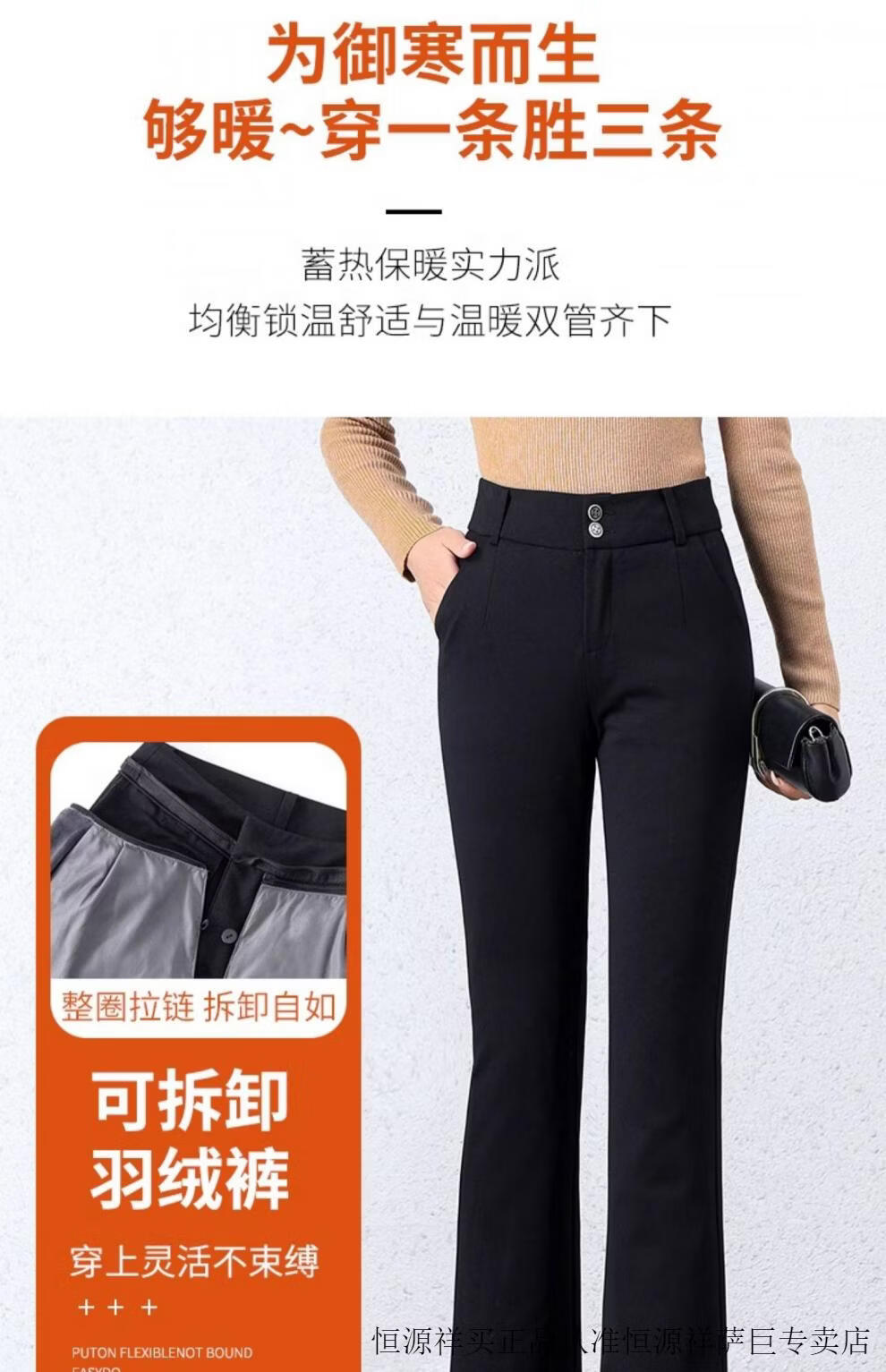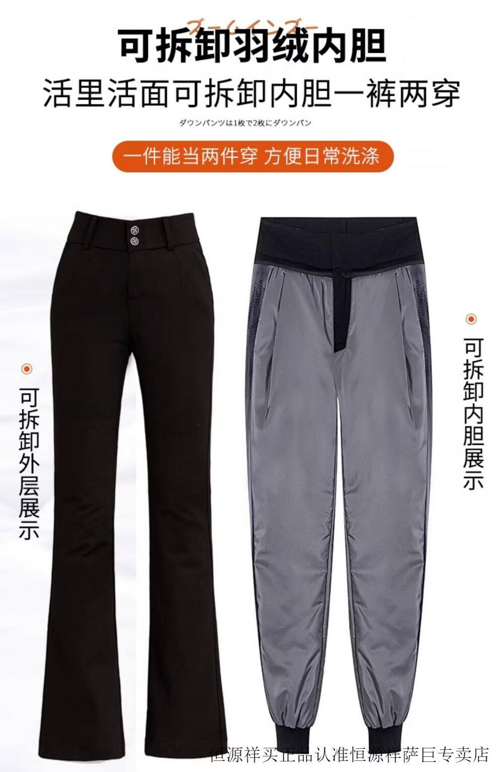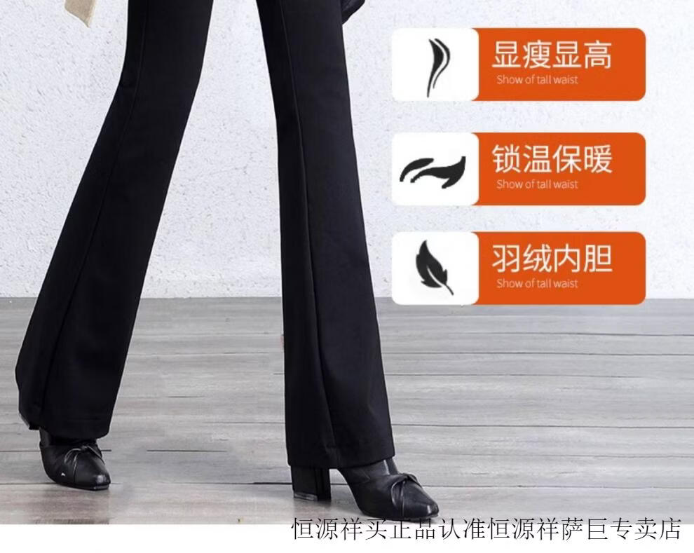 Hengyuanxiang micro-flared down pants women's outer wear removable 2025 winter new slimming thickened middle-aged and elderly warm cotton pants 7797 black micro-flared pants XL 29 (2 feet 2)