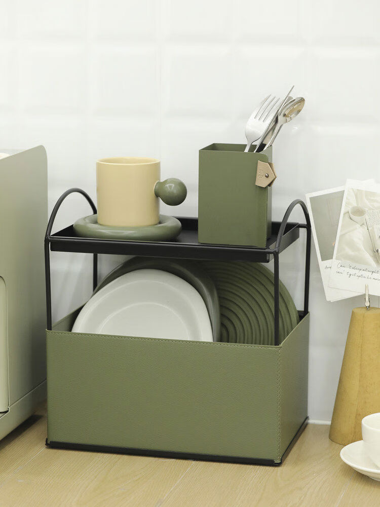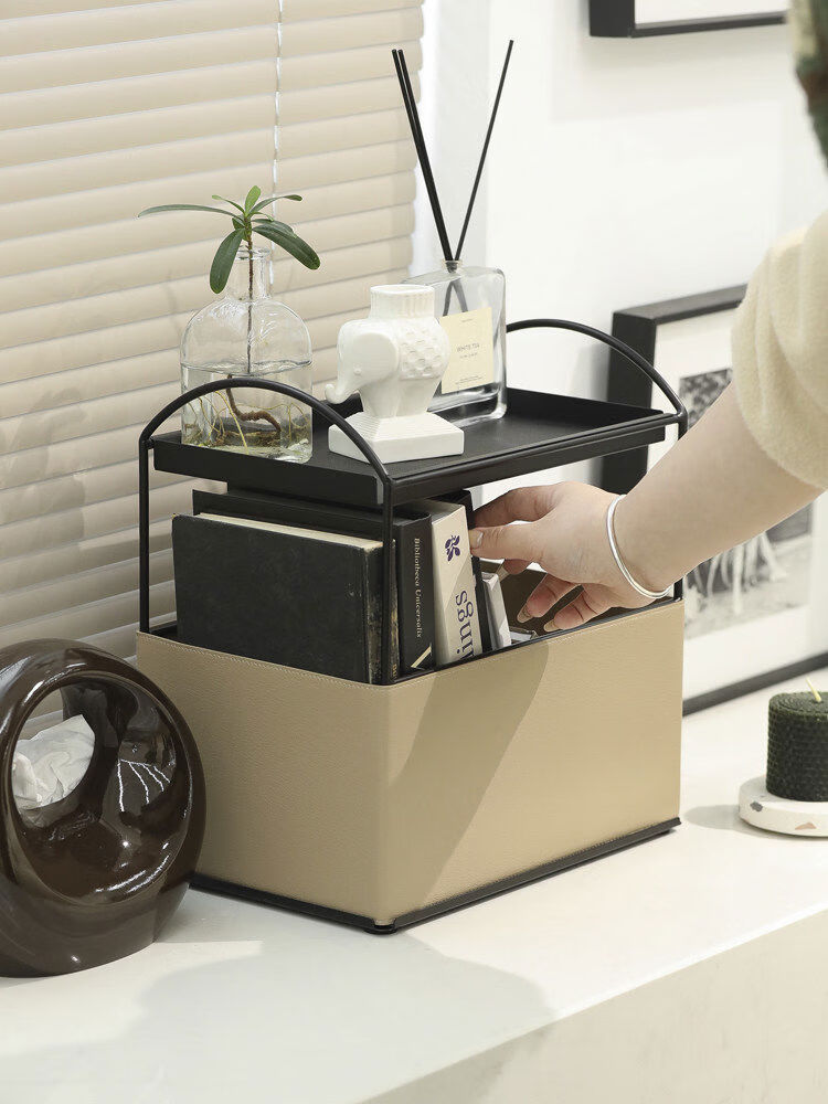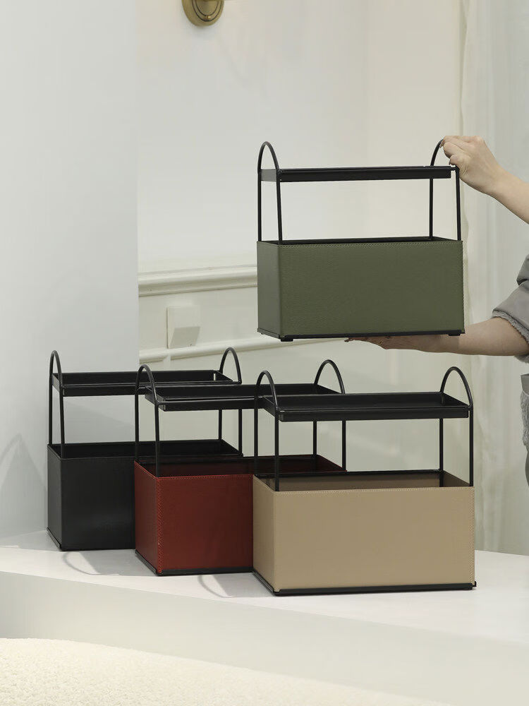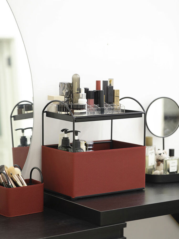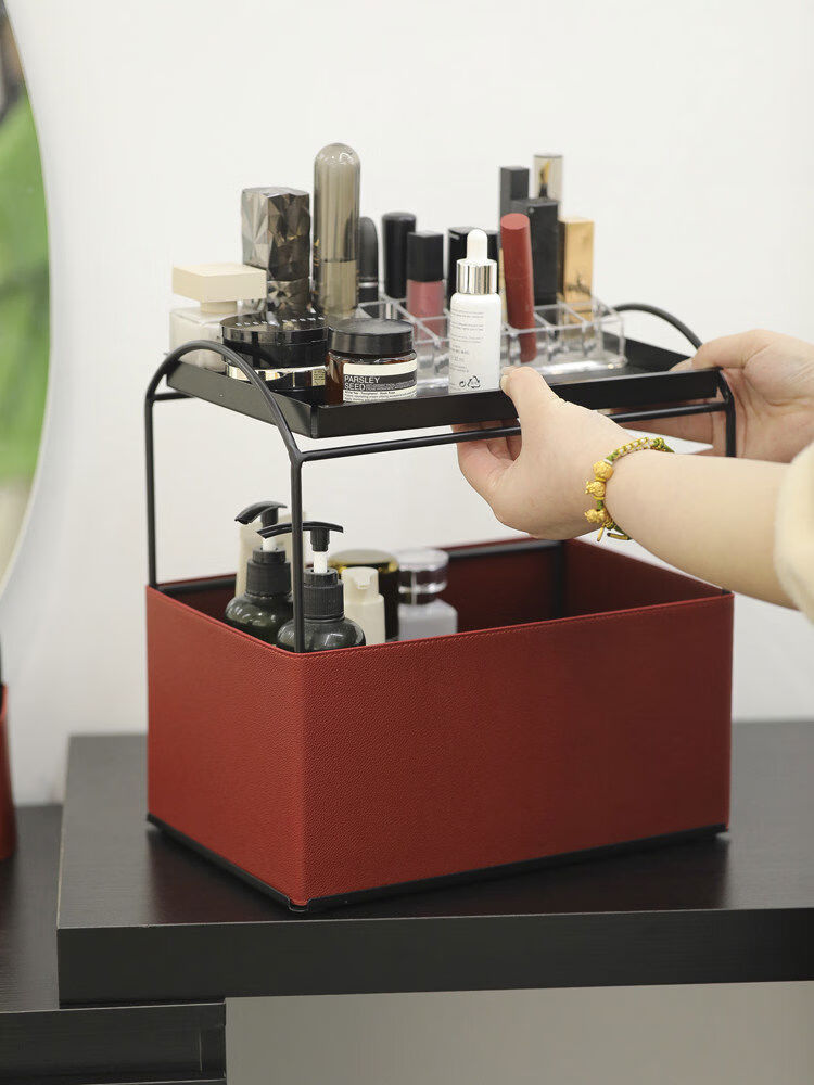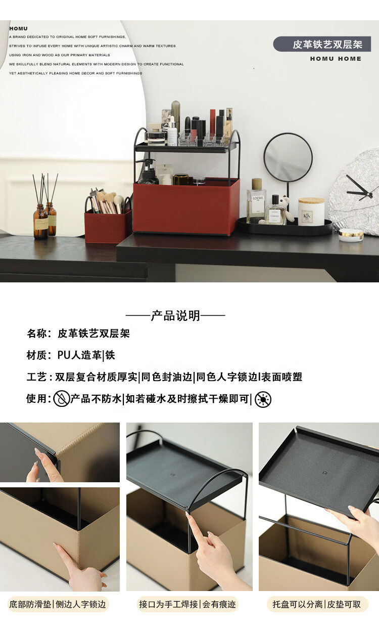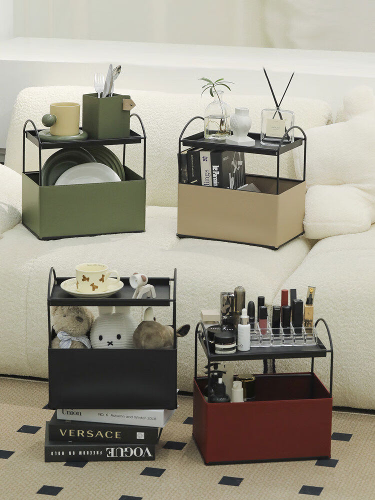 Fantasy Iron Storage Box Cosmetics Storage Rack Light Luxurious Style Storage Rack Office Desktop Organizing Rack Khaki HM2318