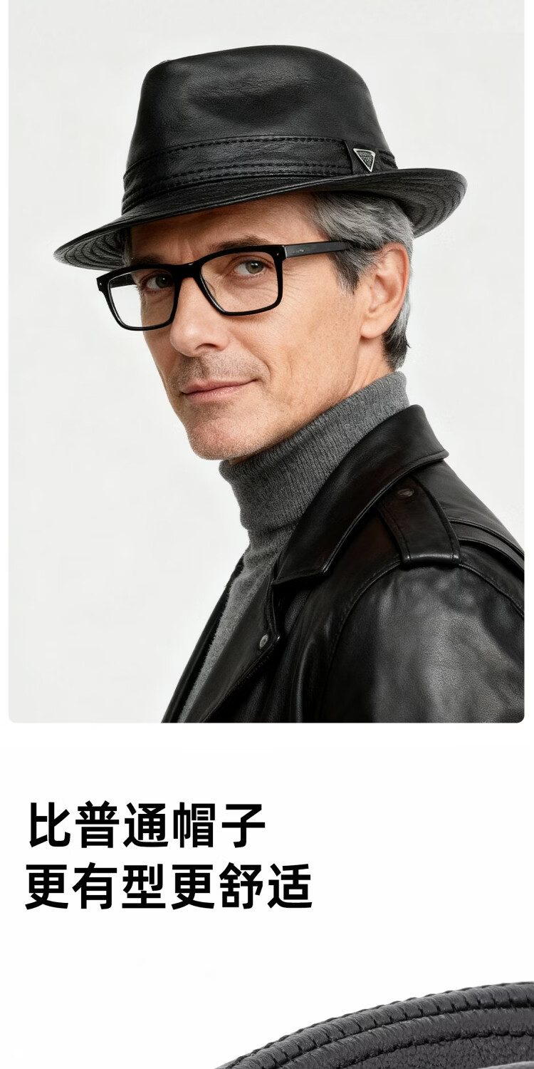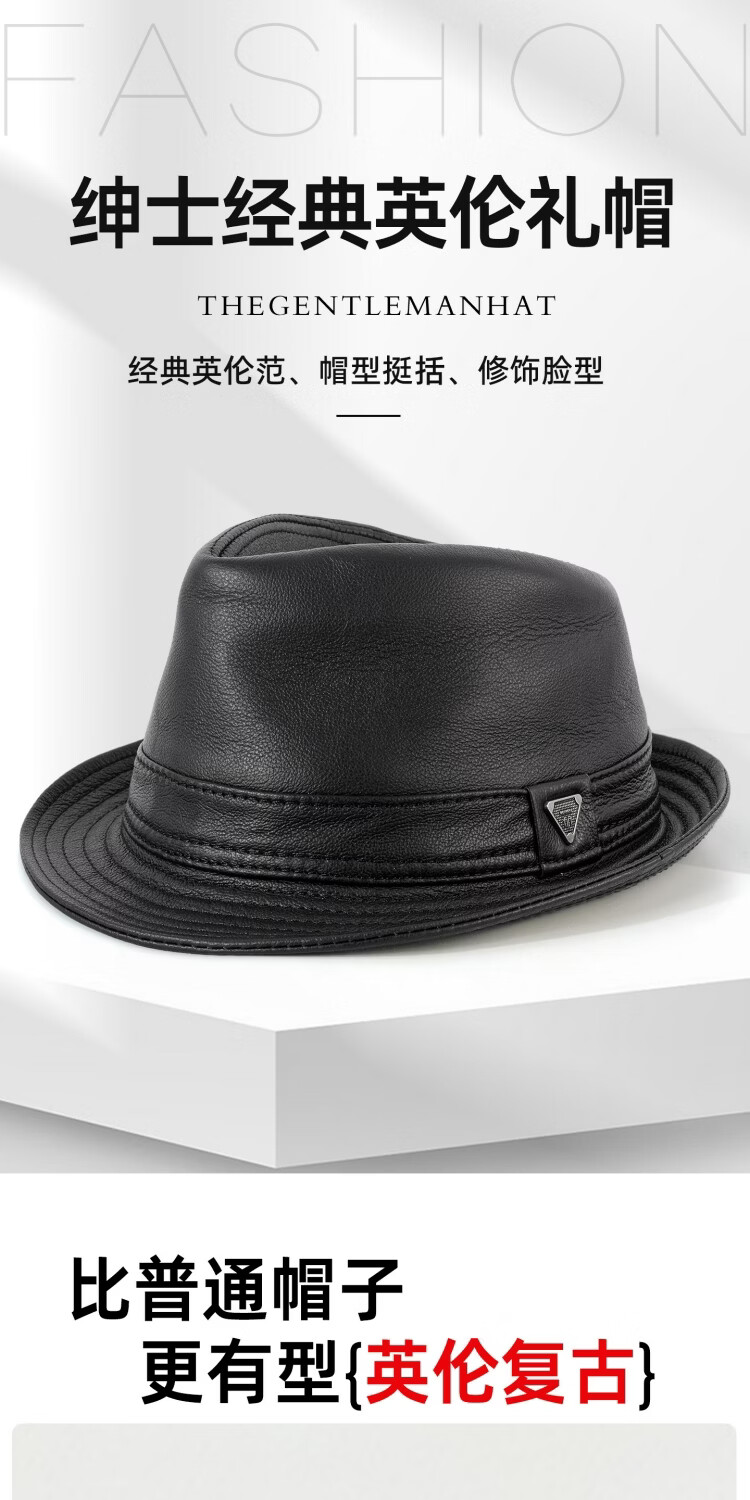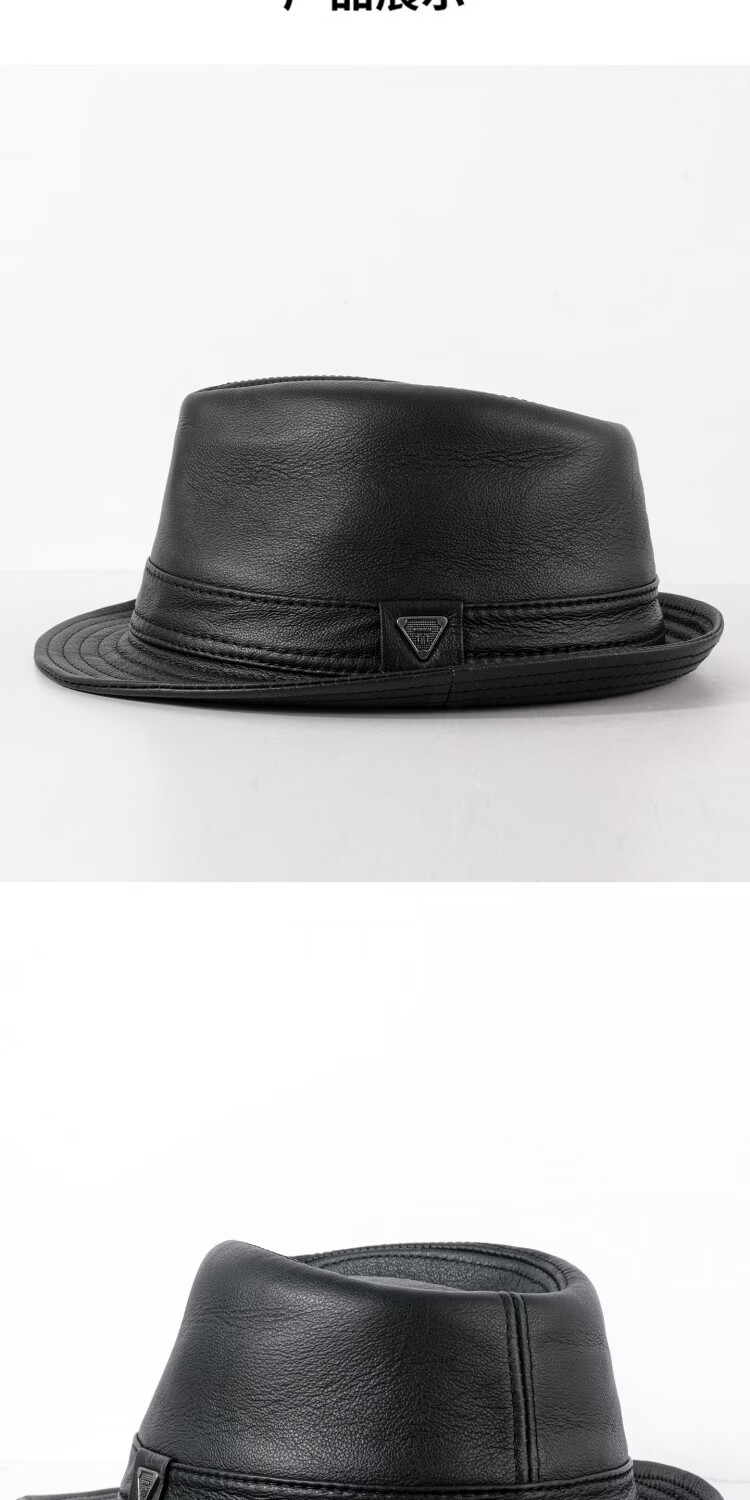 SOOKI Retro Genuine Leather Men's Autumn and Winter British Style Middle-aged and Old Dad Warm Shanghai Beach Hat Gentleman Hat Grandpa and Elderly Hat Black XL (57-58cm)