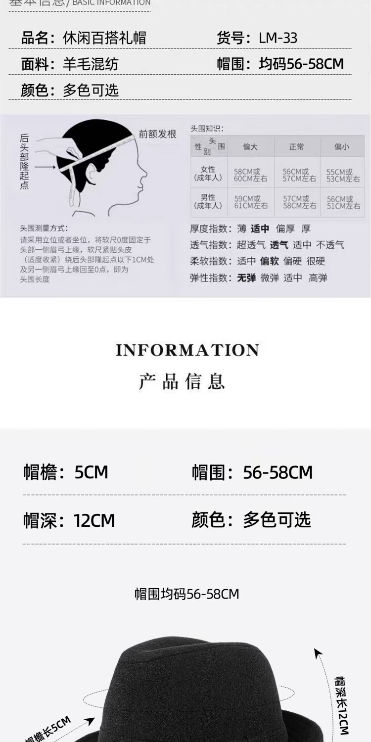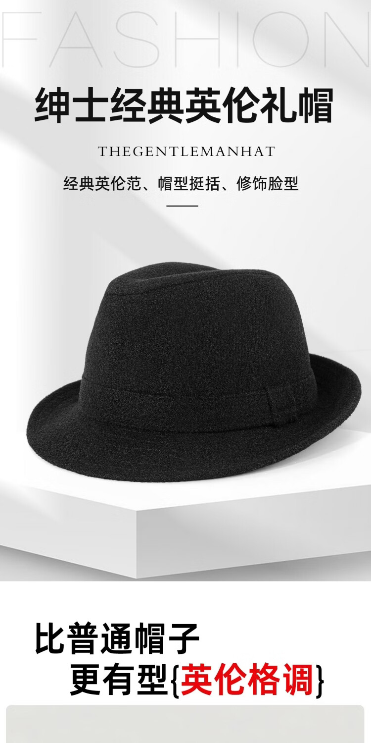 SOOKI Men's Top Hat Autumn and Winter British High-end Retro Jazz Hat Middle-aged and Old Dad Warm Gentleman Shanghai Beach Old Man Hat Black One Size (56-58cm)