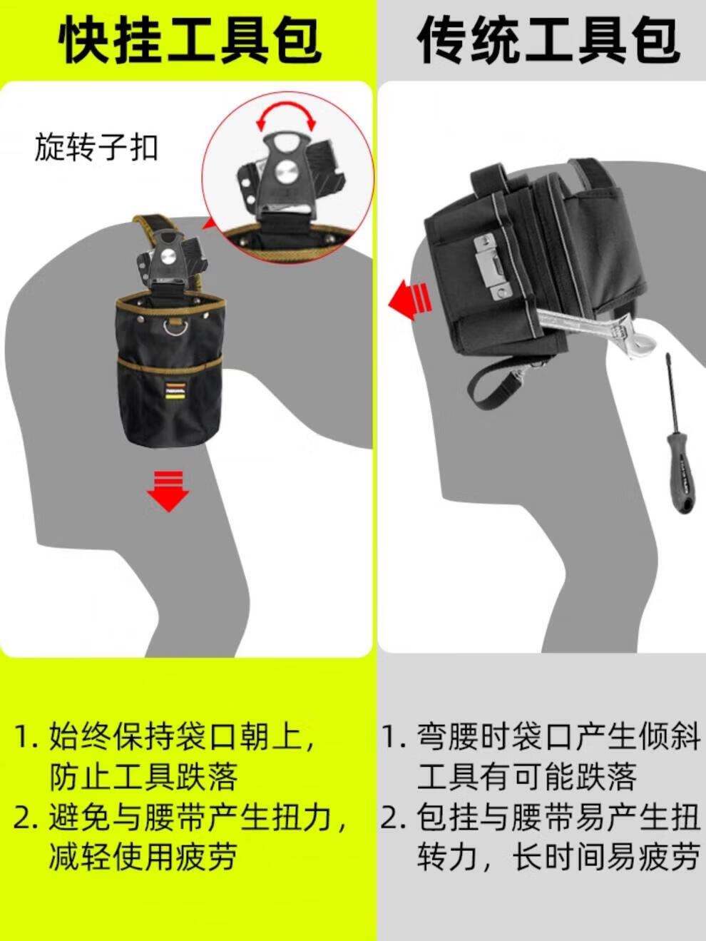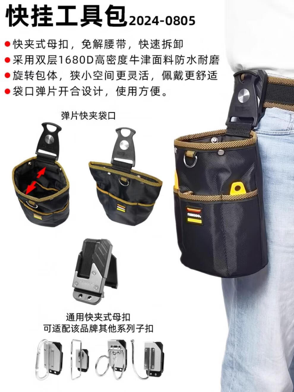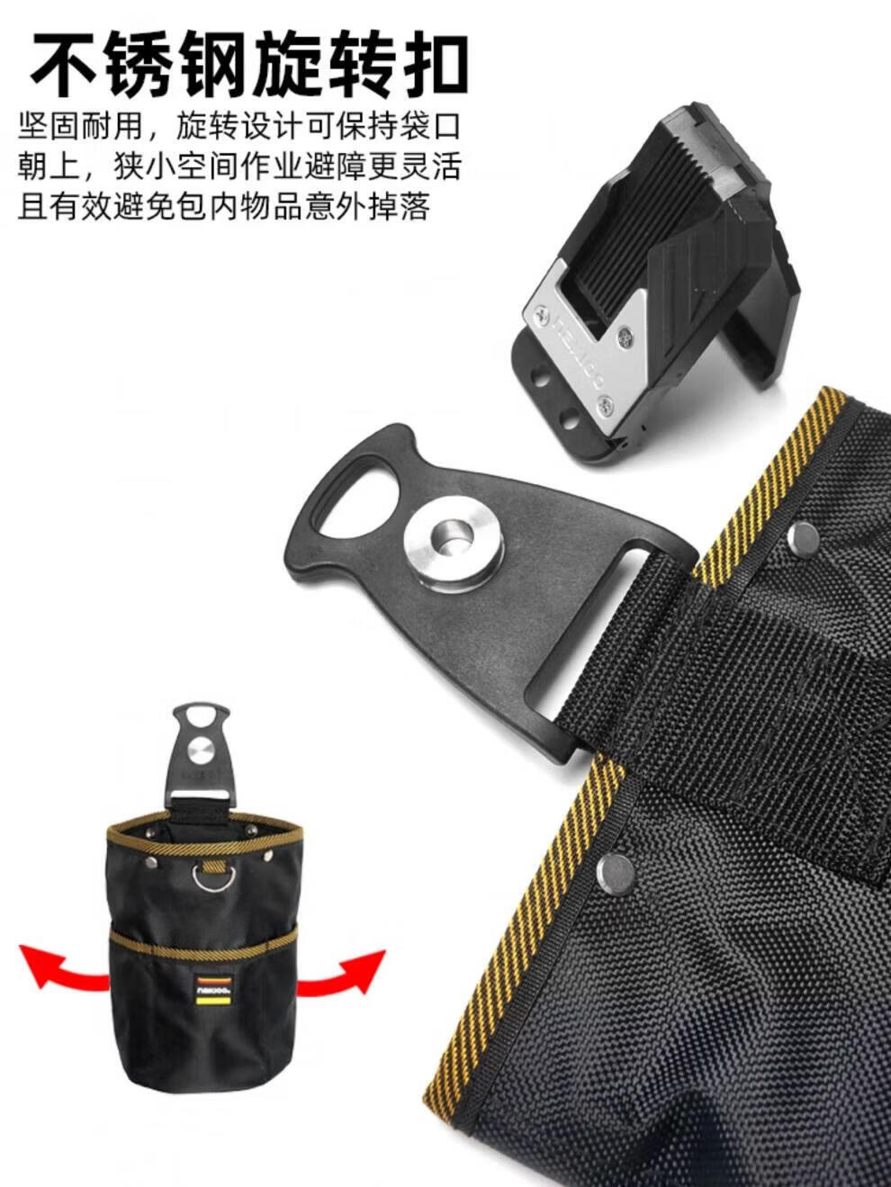 NakIoo rotating quick-release tool bag carpenter electrician waist bag tool waist bag weak current repair parts bag tube bag 2024-0805 quick-release tool bag_including female buckle