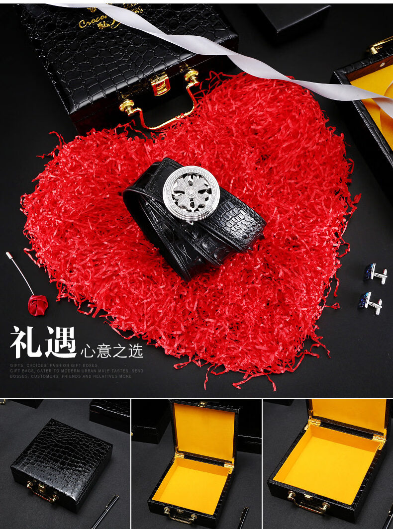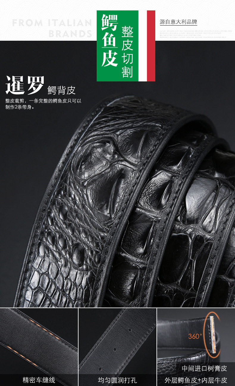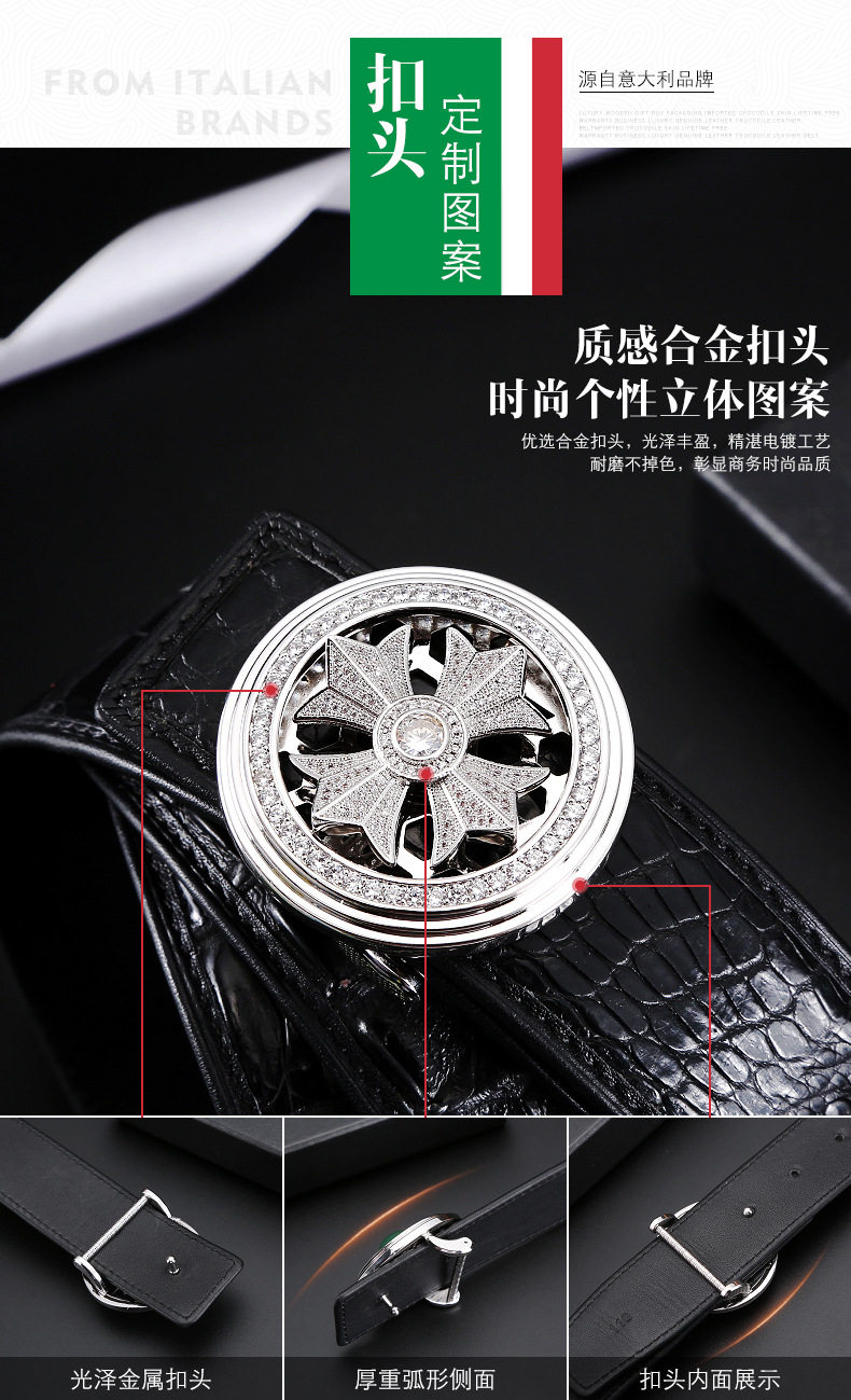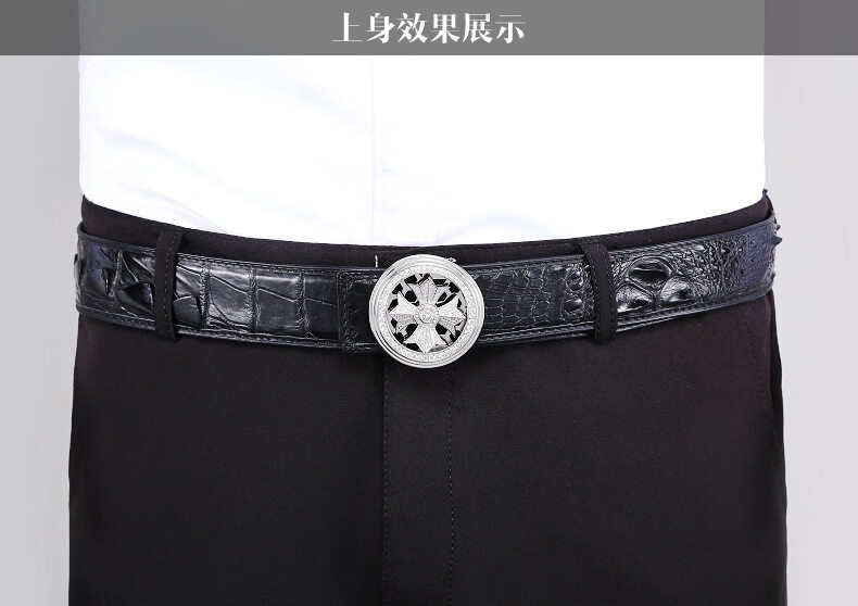 LISM Light Luxury High-end Men's Belt Genuine Leather Products Shi Lai Run Crocodile Leather Smooth Buckle Belt Men's Silver Buckle Black Belt 125cm
