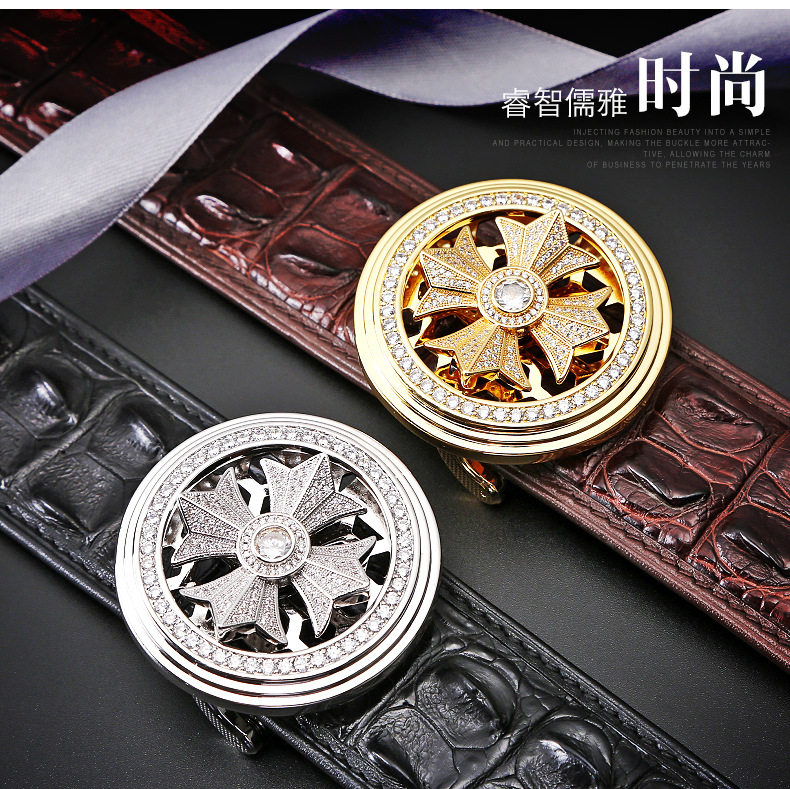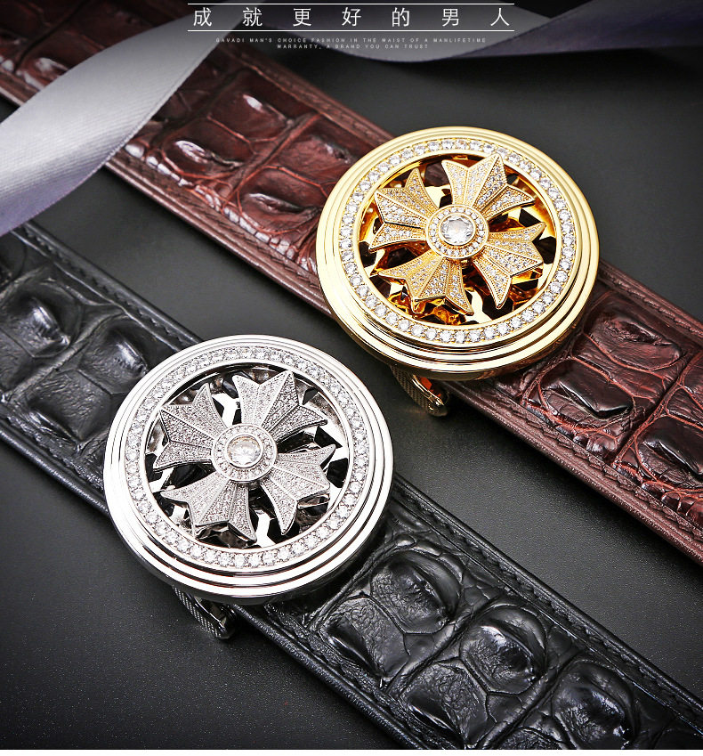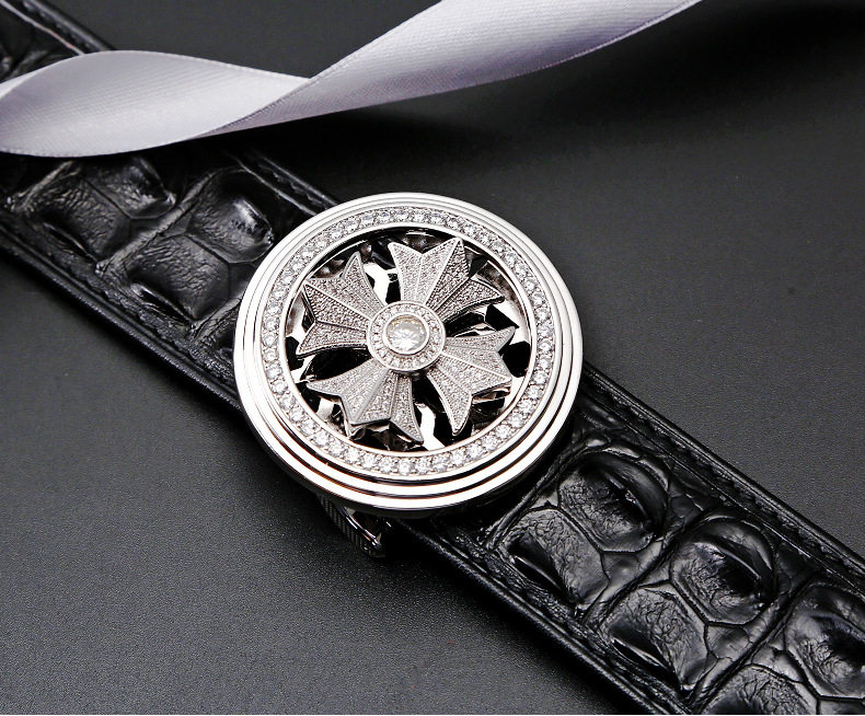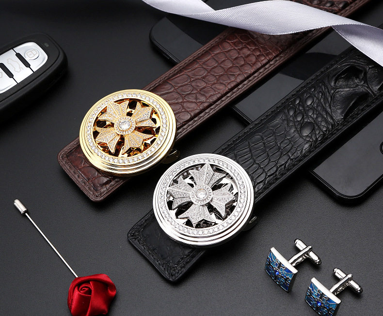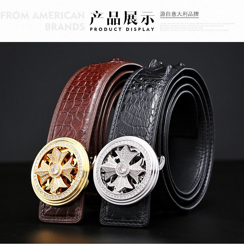 LISM Light Luxury High-end Men's Belt Genuine Leather Products Shi Lai Run Crocodile Leather Smooth Buckle Belt Men's Silver Buckle Black Belt 125cm
