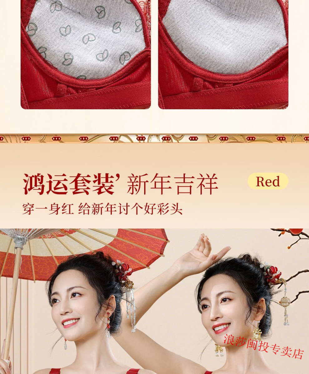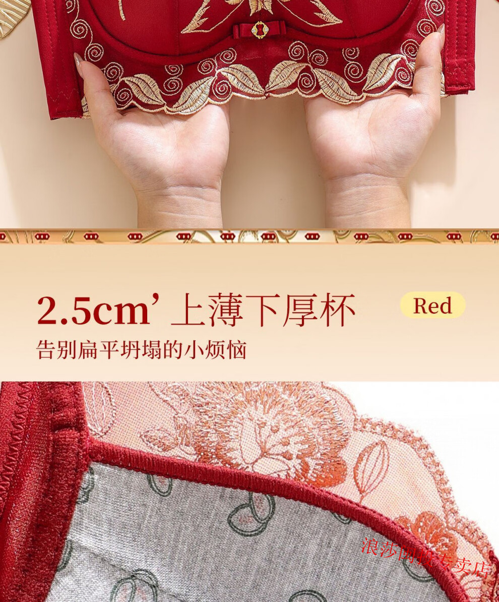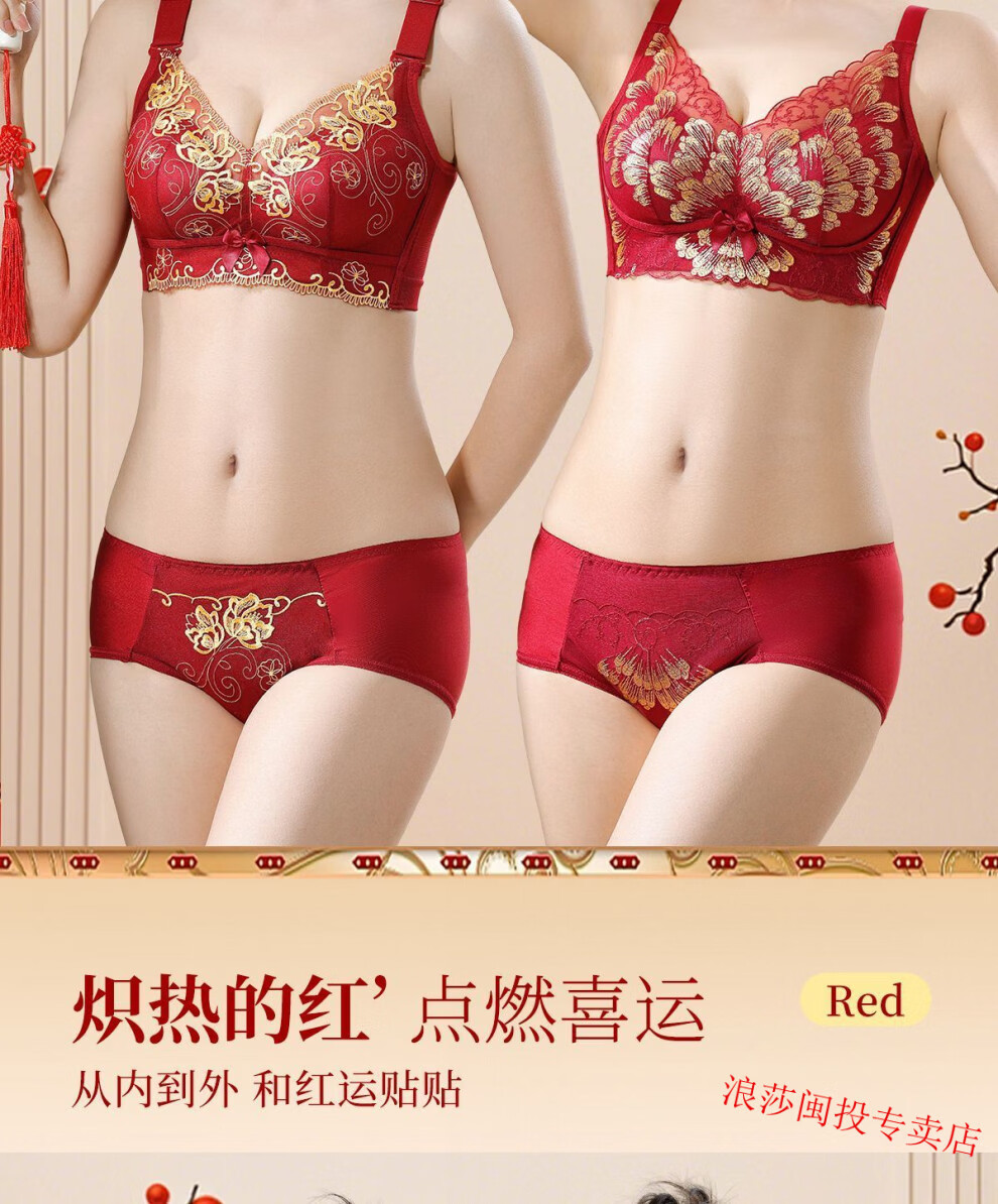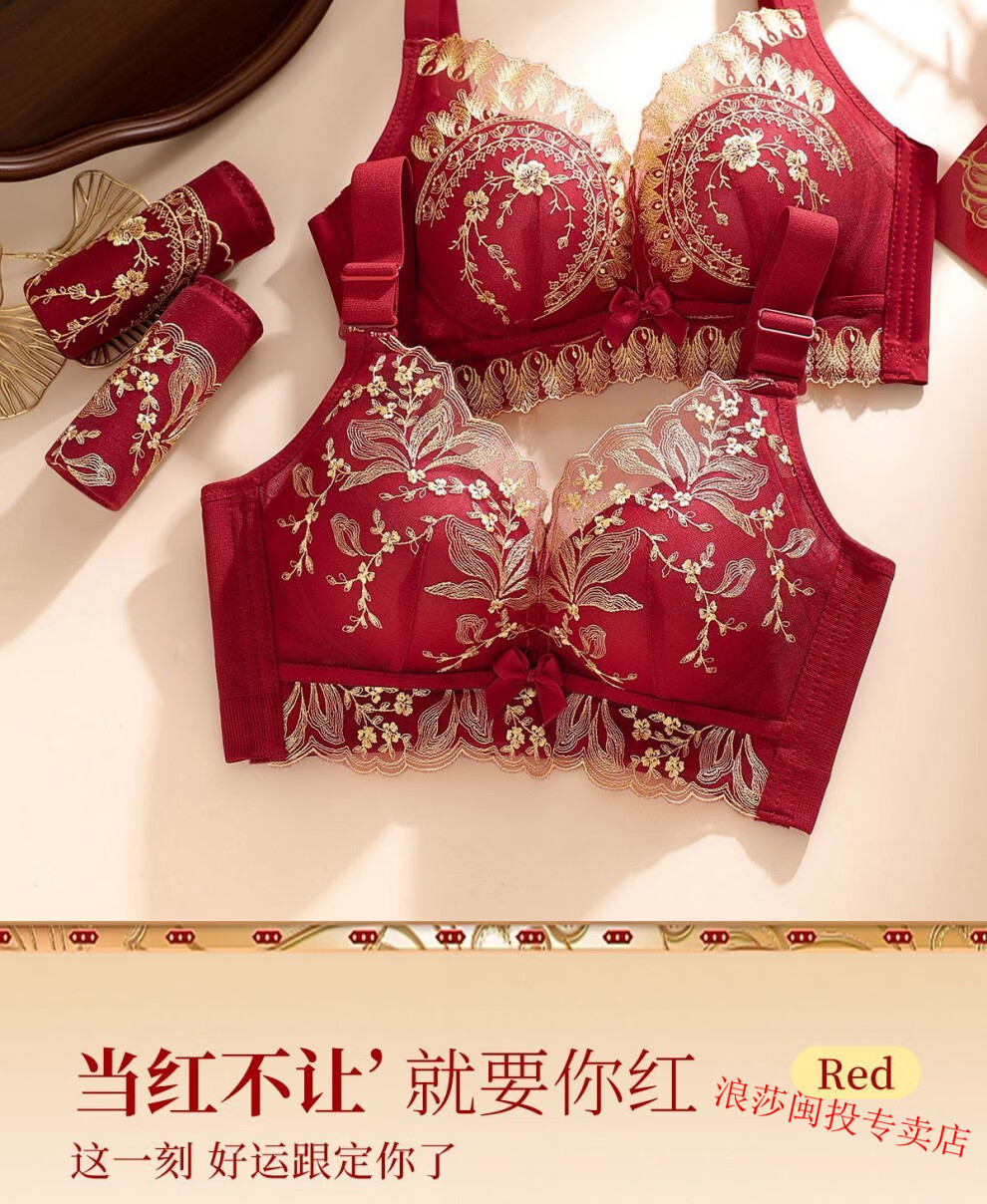 LangSha (LangSha) Red Underwear Women's Suit for Wedding Year of the Year for Bride, Small Breast Push-up Bra, Secondary Breast Adjustment Bra, Getting Better and Better (Set) 90A 40B Medium Thick Cup