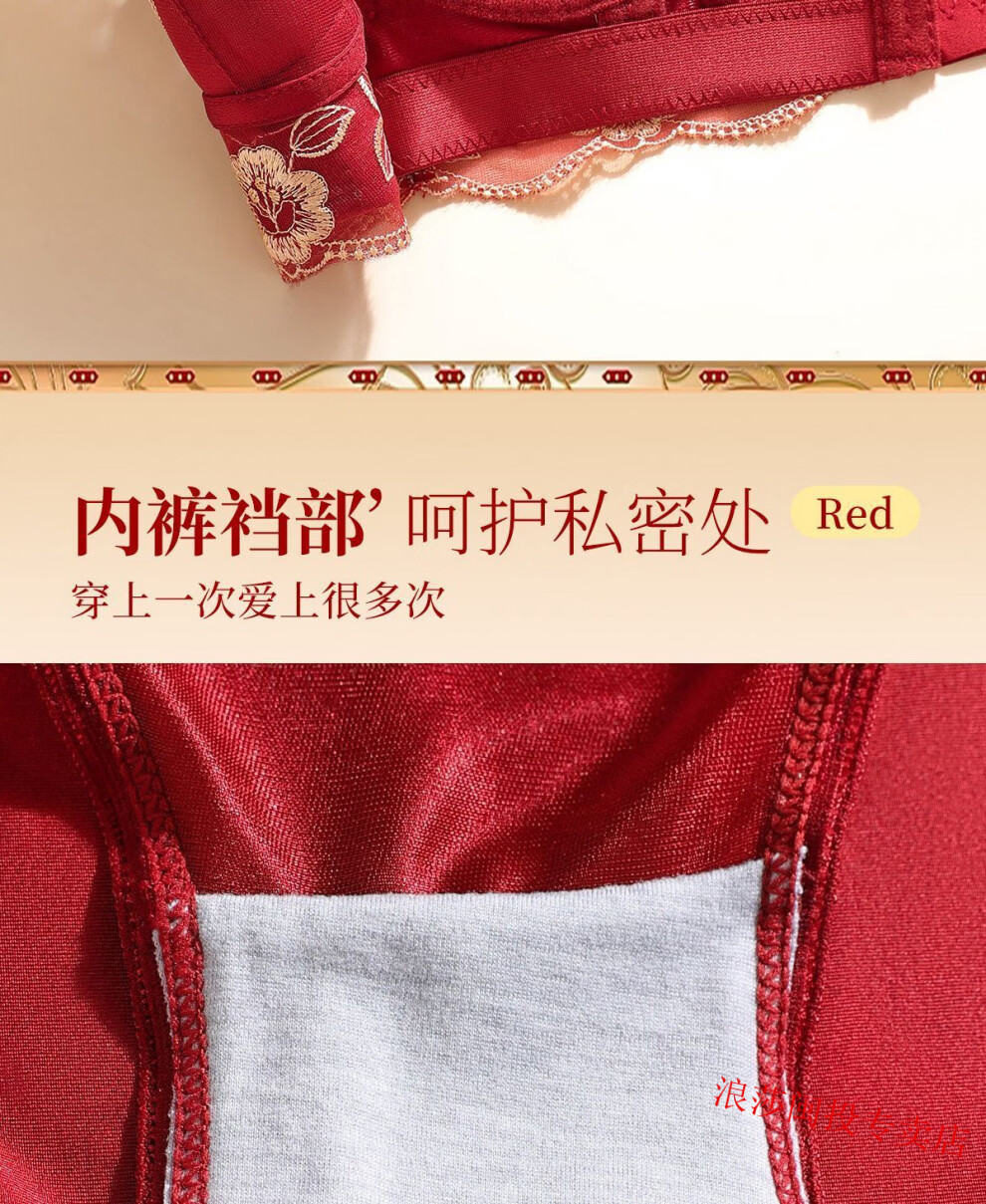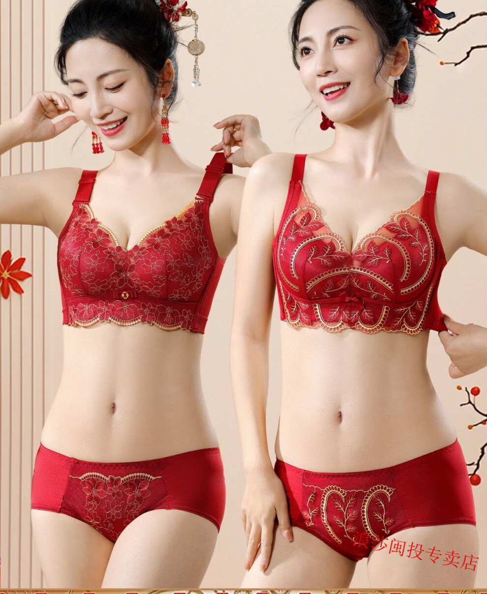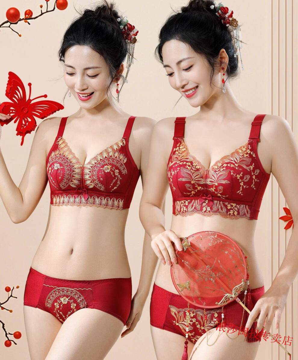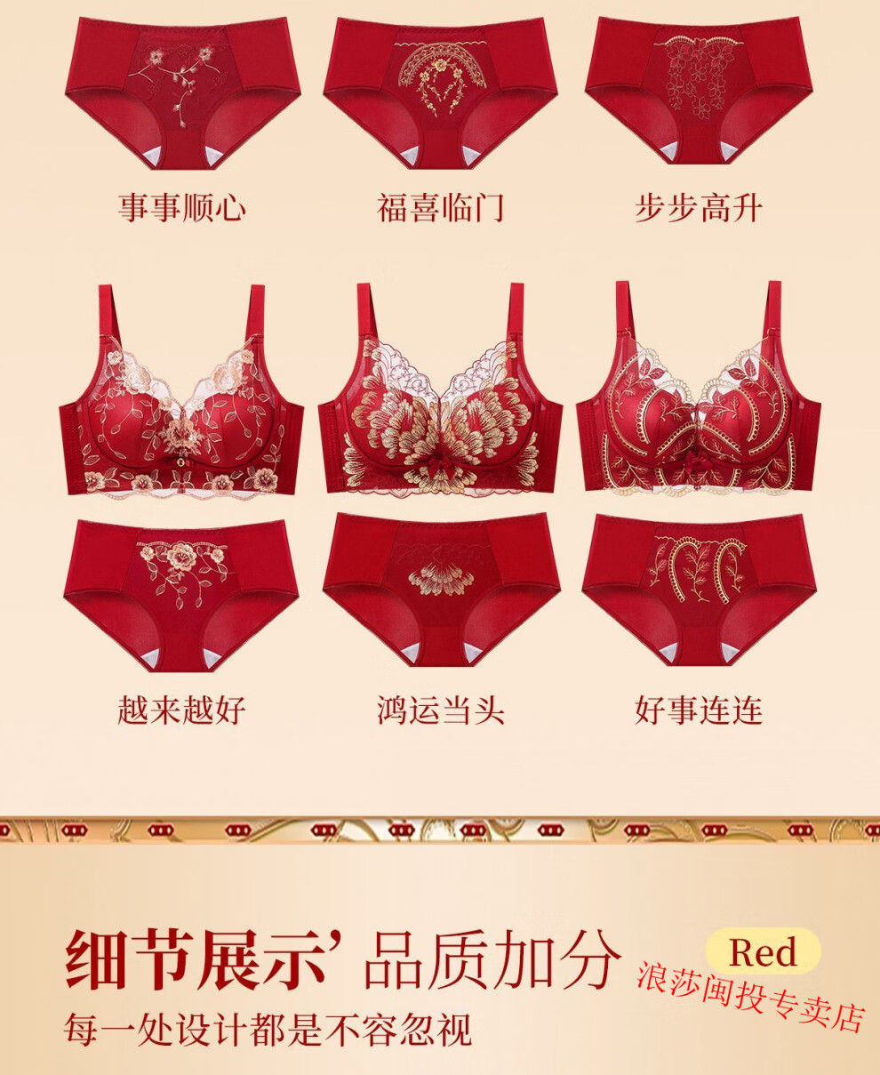 LangSha (LangSha) Red Underwear Women's Suit for Wedding Year of the Year for Bride, Small Breast Push-up Bra, Secondary Breast Adjustment Bra, Getting Better and Better (Set) 90A 40B Medium Thick Cup