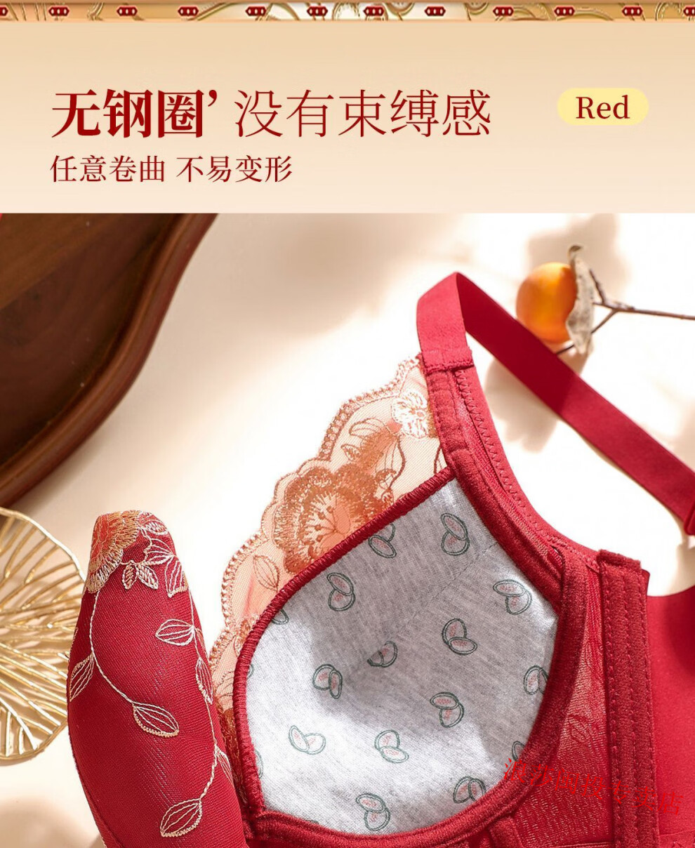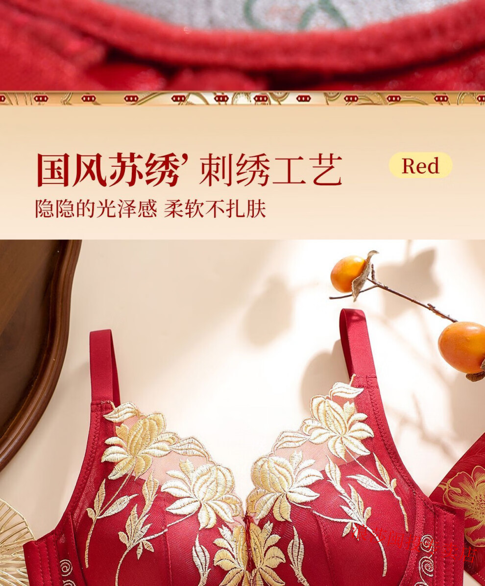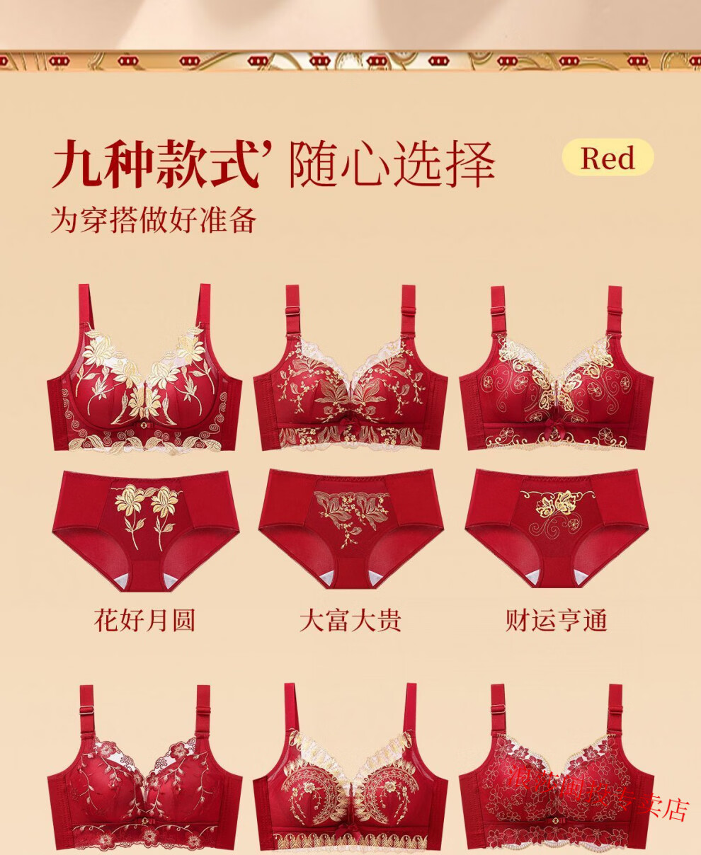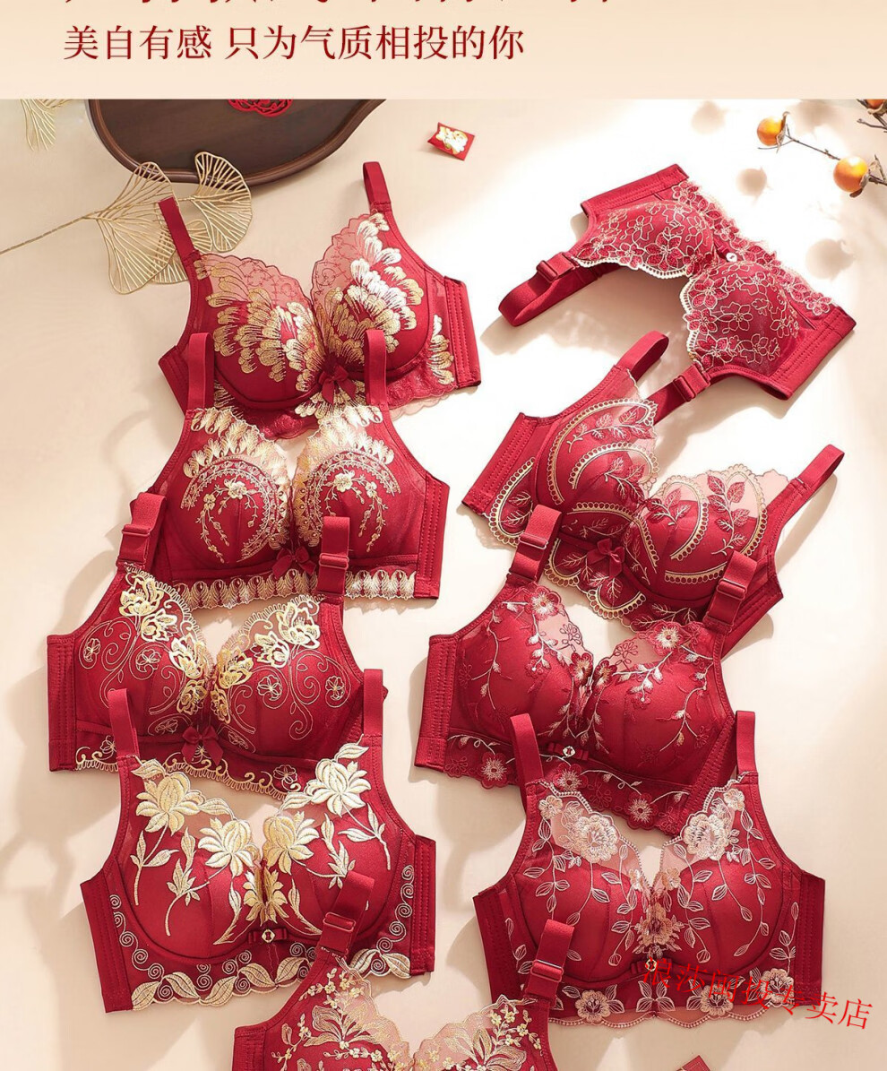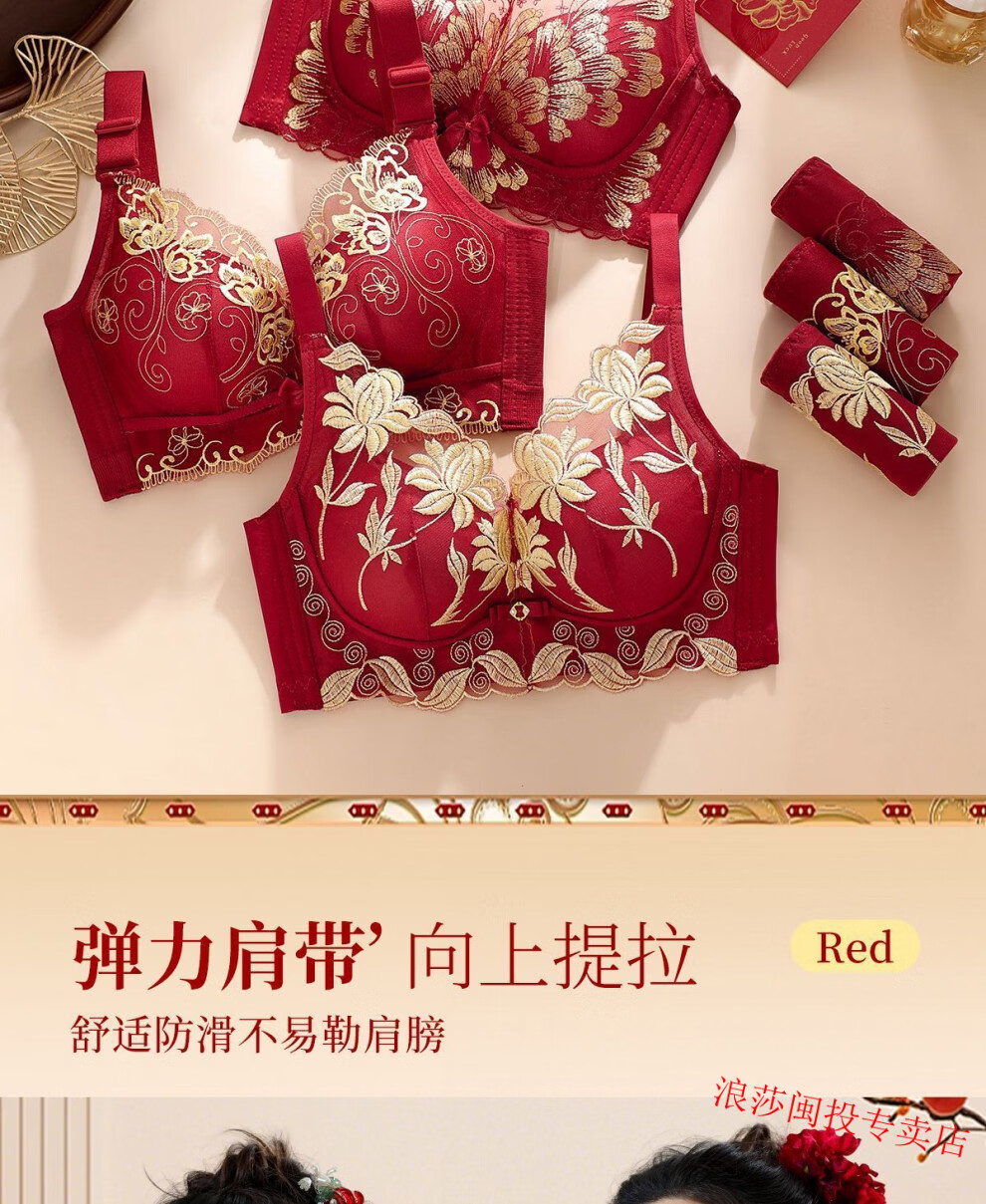 LangSha (LangSha) Red Underwear Women's Suit for Wedding Year of the Year for Bride, Small Breast Push-up Bra, Secondary Breast Adjustment Bra, Getting Better and Better (Set) 90A 40B Medium Thick Cup