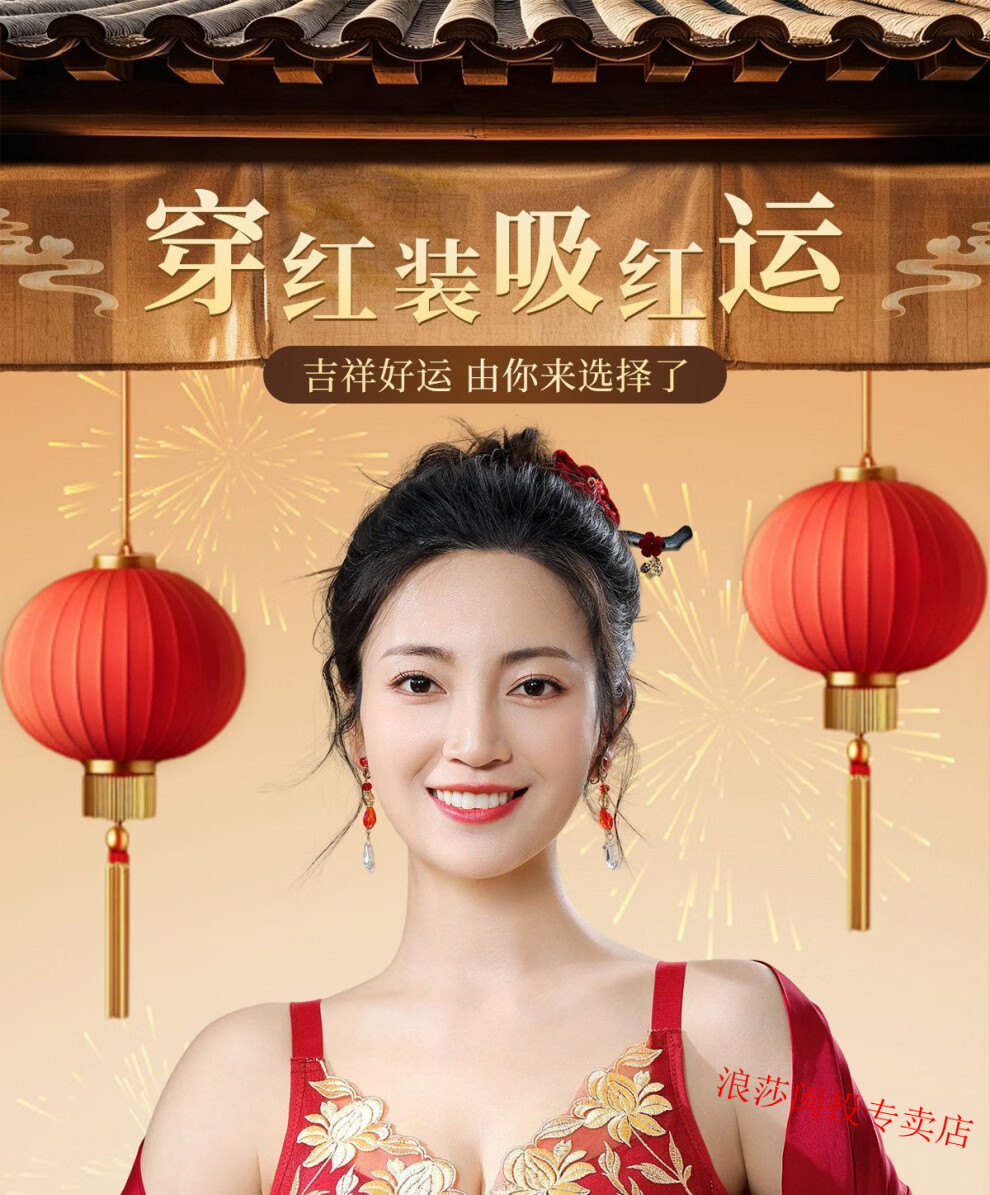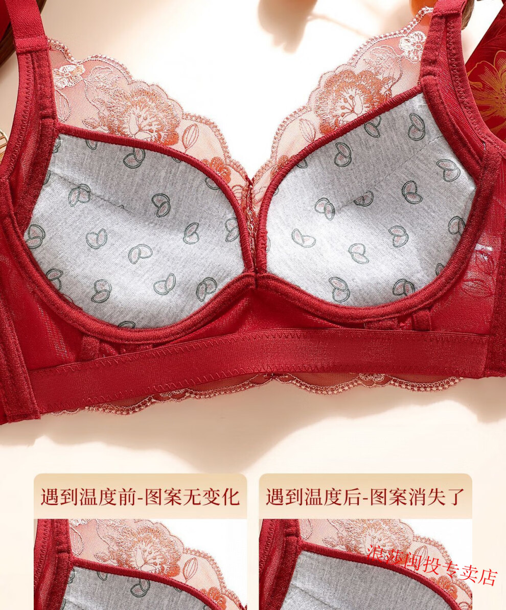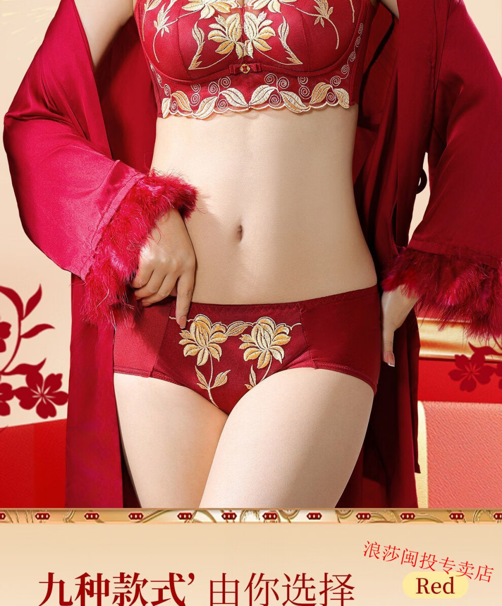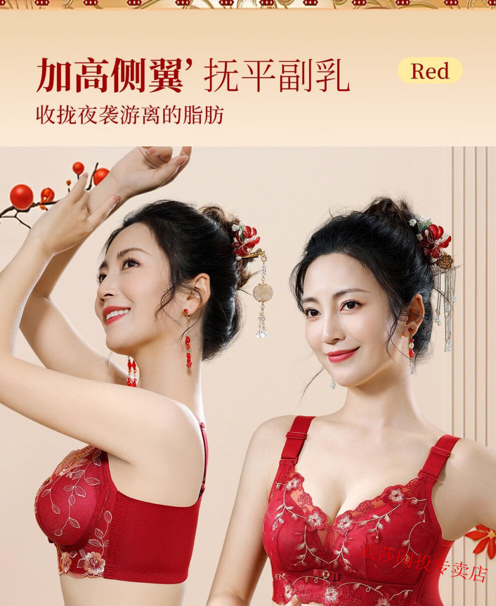 LangSha (LangSha) Red Underwear Women's Suit for Wedding Year of the Year for Bride, Small Breast Push-up Bra, Secondary Breast Adjustment Bra, Getting Better and Better (Set) 90A 40B Medium Thick Cup