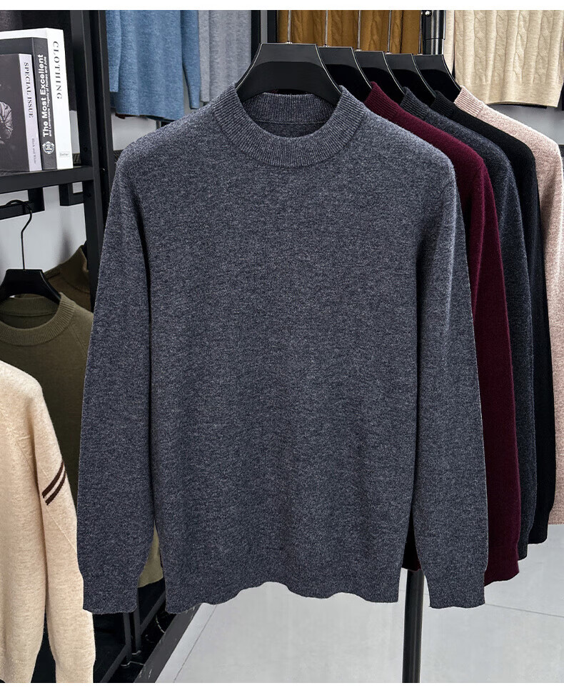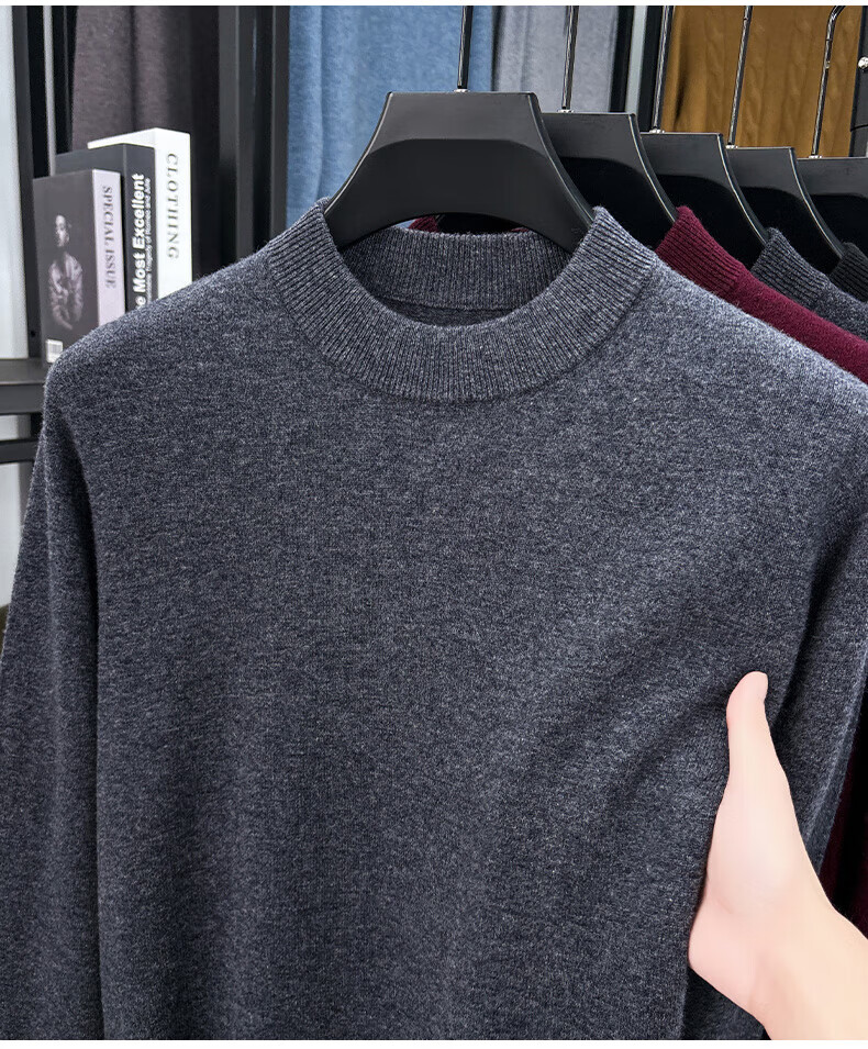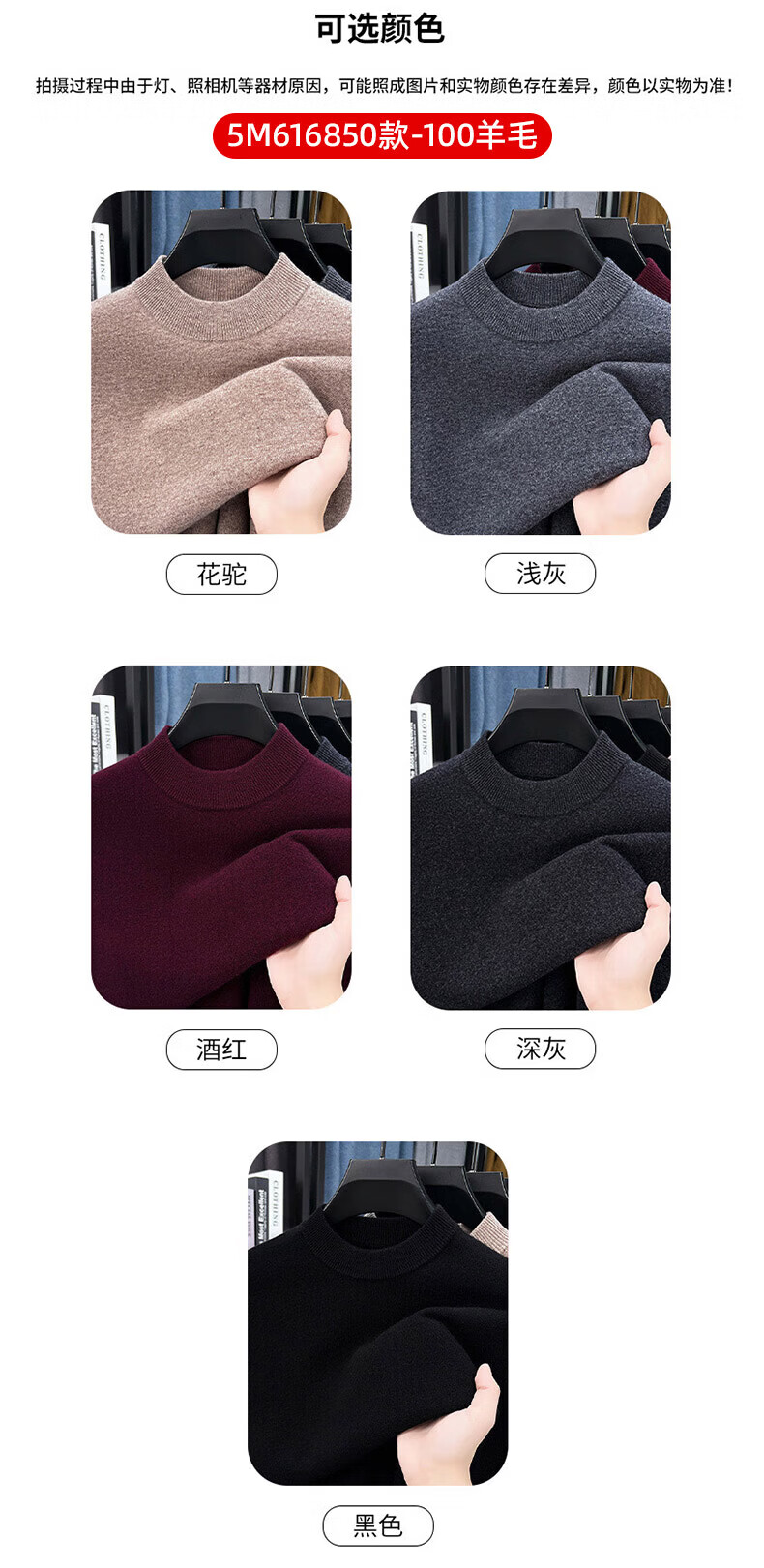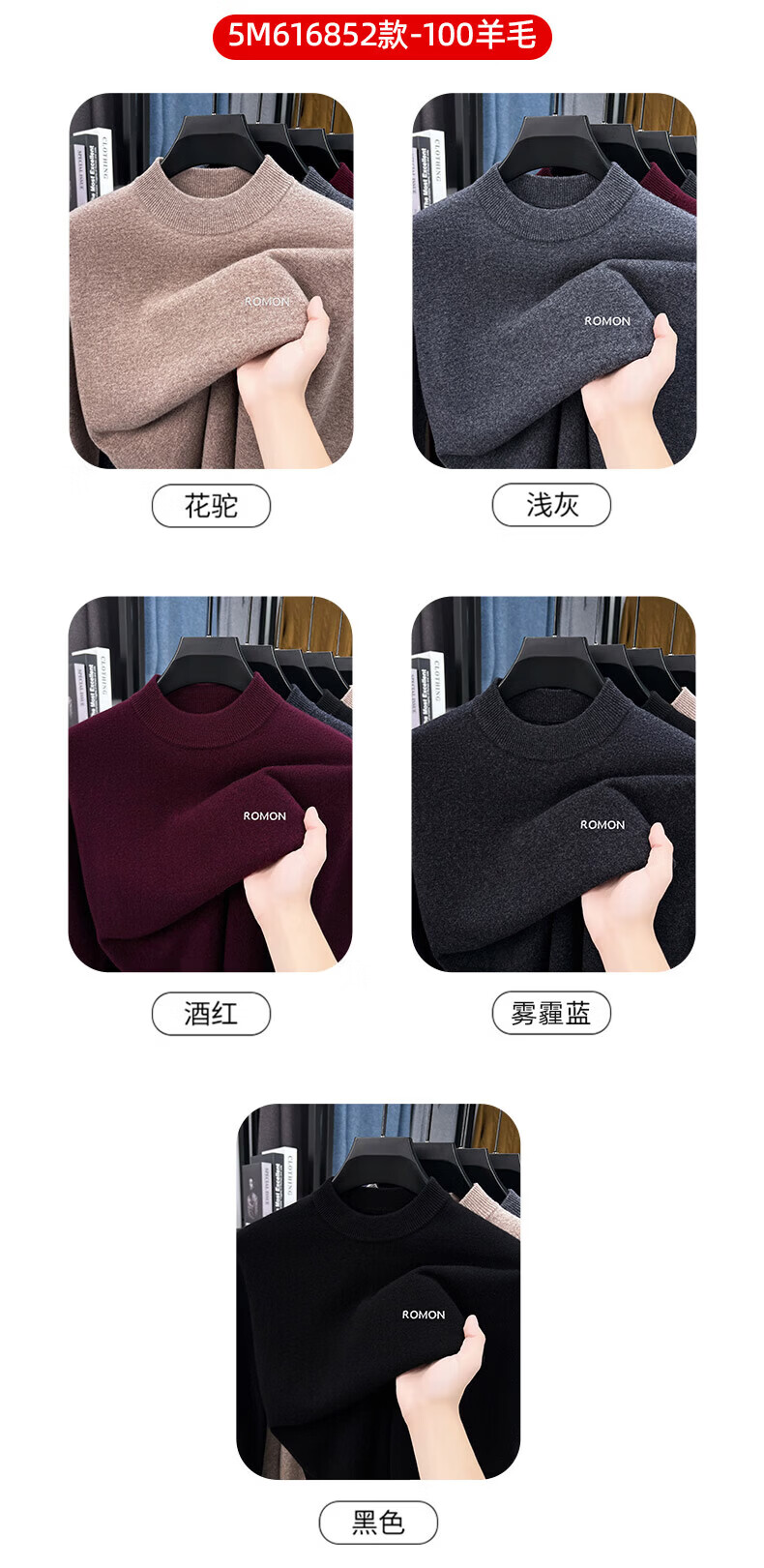 Romon 100% pure wool sweater for men, autumn and winter, young and middle-aged casual solid color bottoming shirt, warm sweater sweater top 5M616850 light gray pure wool L 175 (suitable for 140-155Jin Jin equals 0.5 kg)